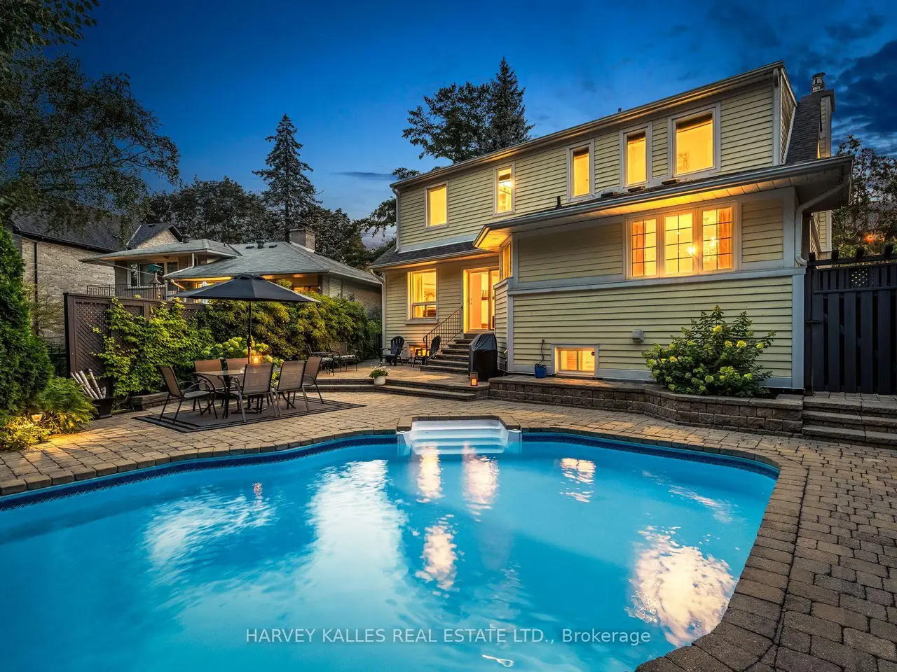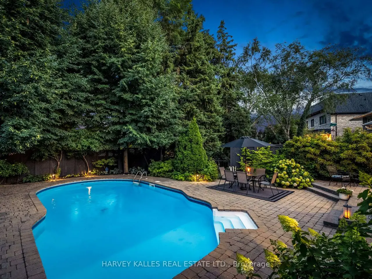Welcome to 17 Elstree Rd, a stunning home set on one of the most coveted & tranquil tree-lined streets in Humber Valley Village. With over 81 ft of frontage on a lush,mature lot, this residence combines timeless elegance w/modern comfort in a truly unbeatable location.Step onto the covered front porch & into a sun-filled foyer featuring custom closets & gleaming hrdwd flrs. The L/R offers a wall of windows overlooking the front gardens & a custom Rumford fireplace w/stone surround - perfect for both entertaining & quiet evenings. The formal D/R impresses w/hrdwd flrs, bespoke millwork, & a statement chandelier,all overlooking the priv backyard.The kit features hrwd flrs,stone counters & backsplash, 6 s/s appliances,abundant cabinetry,a breakfast area, & a w/o to the backyard oasis. A main-flr F/R completes the flow,offering a warm space to gather & relax.Upstairs, you'll find 3 spacious bdrms, incl a primary retreat w/a w-in closet, custom b/ins, & a spa-inspired 5pc ens w/garden views.The L/L expands the living space w/a generous rec room,gas fireplace,above-grade windows, & a dedicated guest br or office paired w/a nearby 3pc bath - ideal for a nanny or in-law suite. A bright laundry area,ample storage, & a cold rm add convenience & function.Outside,the inground salt water pool,landscaped gardens, & towering trees create a private sanctuary, complemented by a dbl-car garage & driveway prkg for four. This home represents an exceptional opportunity to live on one of the best streets in Humber Valley Village,surrounded by top-ranked schools,incl Humber Valley Village JMS, Richview Collegiate Institute & All Saints Catholic School.Walk to the newly renovated Humbertown Shopping Centre & James Gardens.Renowned golf clubs, incl St. George's Golf & Country Club,Islington Golf Club & Weston Golf Club,are nearby.W/quick access to the Bloor St Subway line, Pearson Int Airport,and major hwys, 17 Elstree Rd offers the perfect balance of serene family living & city convenience.