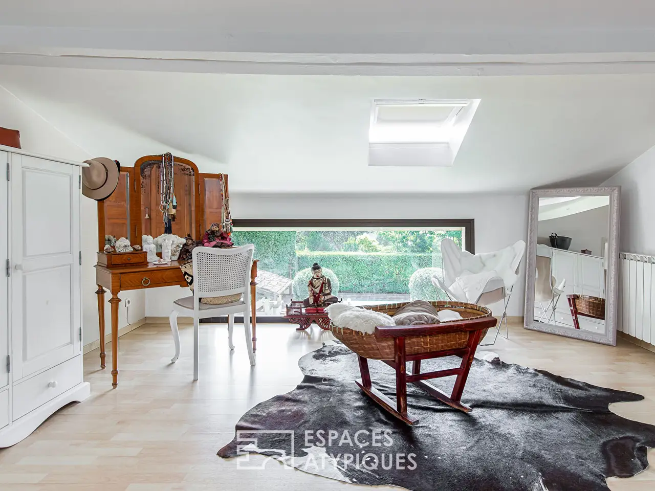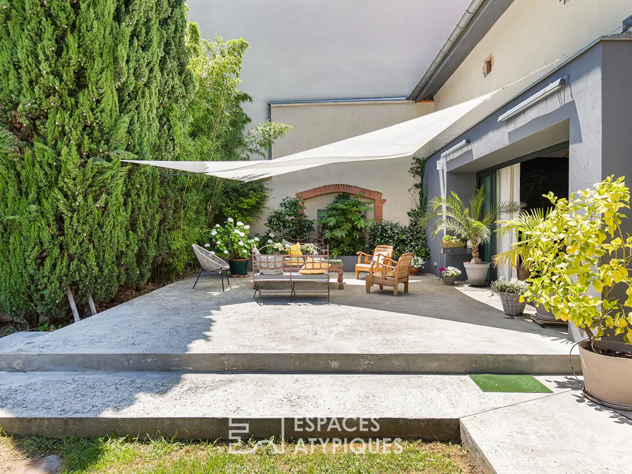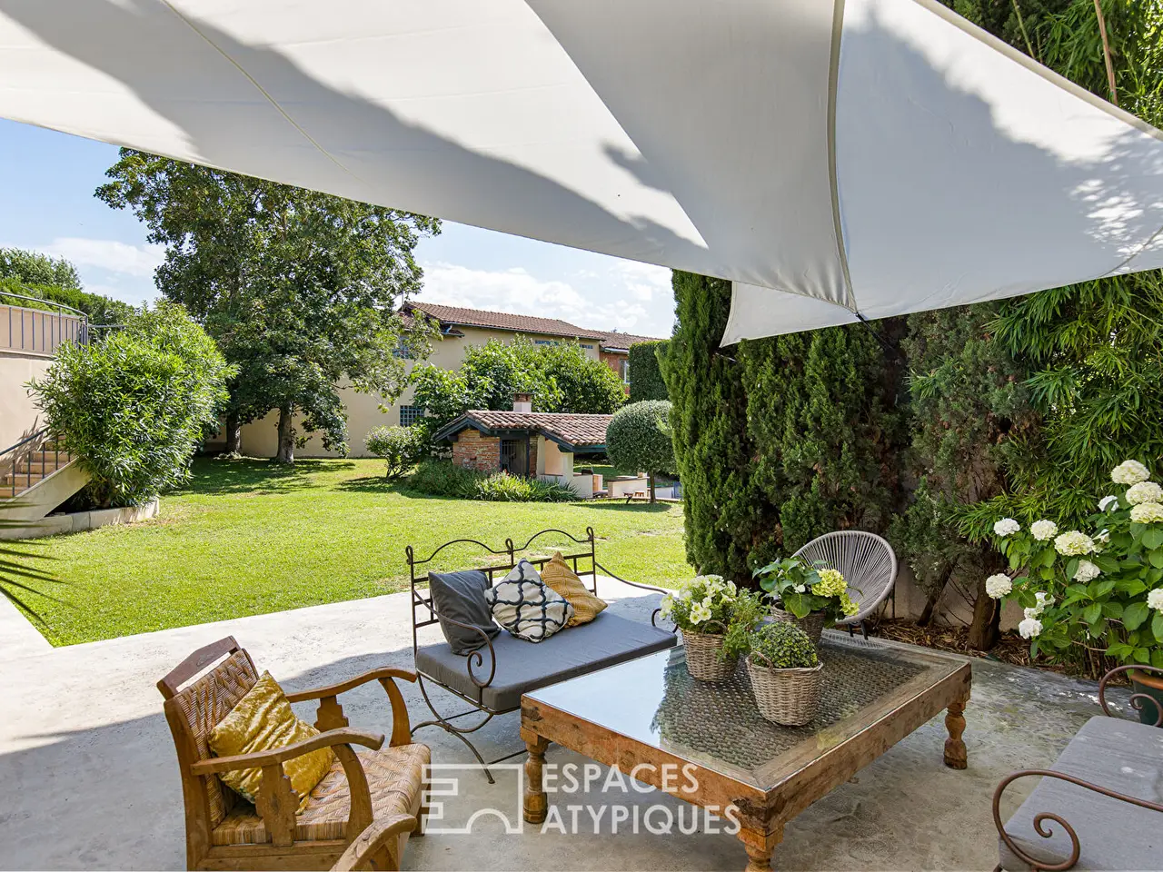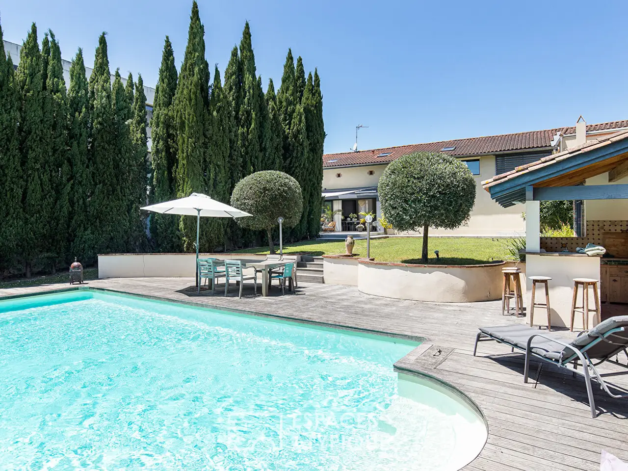 In Toulouse, in the direct vicinity of Place de L'Ormeau, this 19th century Toulouse house has been completely redesigned. Located on a plot of 960sqm, it offers a floor area of approximately 220sqm. The entrance leads to a beautiful kitchen open to a bright living room. The mix of polished concrete, travertine and the high ceilings bring character to this living room. The pocket doors open onto a wooded exterior, where there is an intimate terrace, a garden, a pool house and a swimming pool. On the ground floor, two beautiful bedrooms share a bathroom. A laundry room and a toilet complete this level. Upstairs, an office has exterior access. The sleeping area includes three bedrooms, one of which is 23sqm. They share a large bathroom with shower and bathtub. In the basement, there are two spaces. A garage which can accommodate two vehicles and a storage room of 90sqm. This house is the perfect blend of old-world charm and contemporary comfort. Immediate proximity to schools, shops and transport. Air conditioning Outbuildings. ENERGY class: C / CLIMATE class: C. Estimated average amount of annual energy expenditure for standard use, based on energy for the year 2021: EUR1540 to EUR2140. Additional information * 7 rooms * 5 bedrooms * 2 bathrooms * 1 floor in the building * Outdoor space : 965 SQM * Property tax : 2 500 €