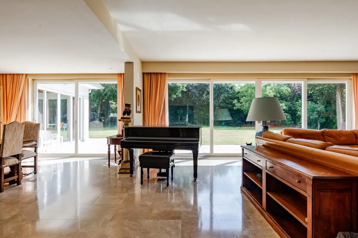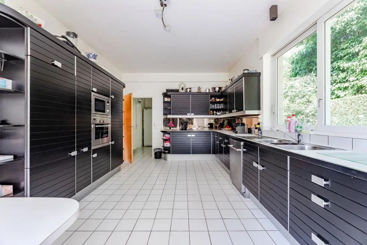 On the edge of Uccle, in a quiet, leafy residential setting, attractive family villa built in 1985, enjoying a magnificent south-west-facing garden (plot of 25.67 ares). With a built area of 600 m², it offers spacious 85 m² reception rooms opening onto the terrace and garden, a fully-equipped kitchen with breakfast area, 5 bedrooms including a large master suite, and 4 bathrooms. A vast converted basement includes a gym with bar and cloakroom. A 3-car garage completes the property. PEB: B A bright, well-designed villa in a peaceful setting, within easy reach of Uccle's amenities and ideal for a luxury family life.