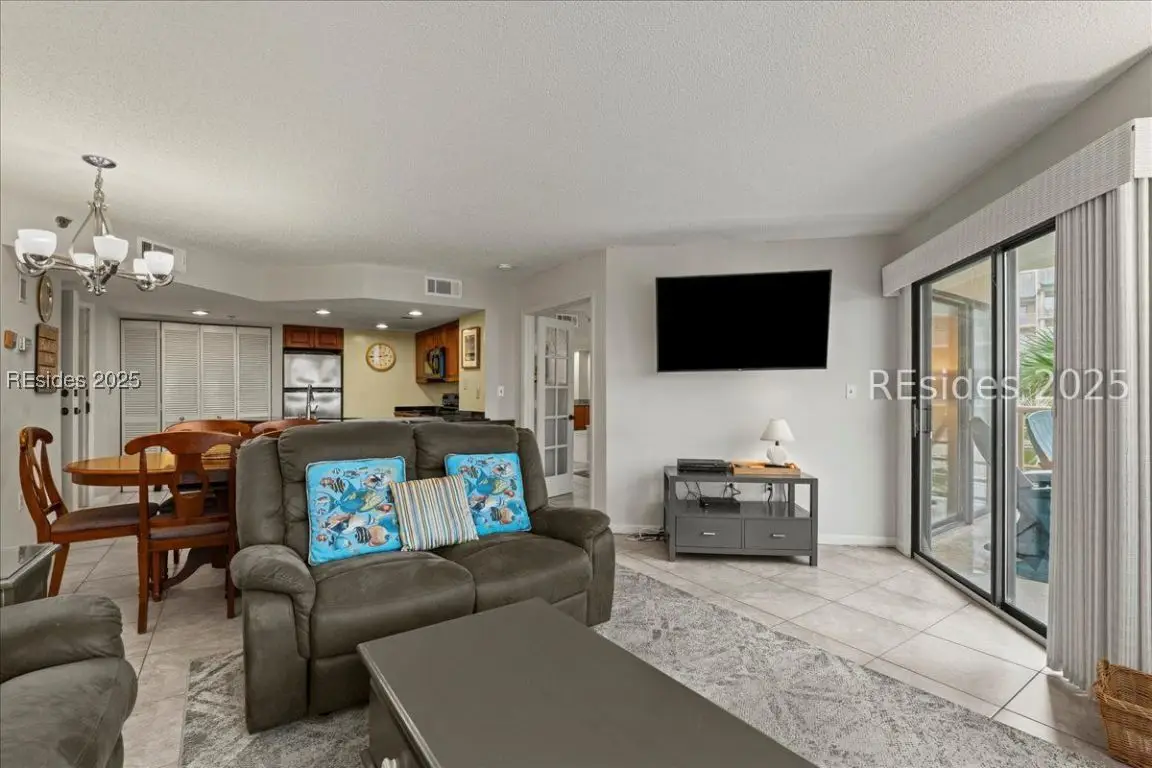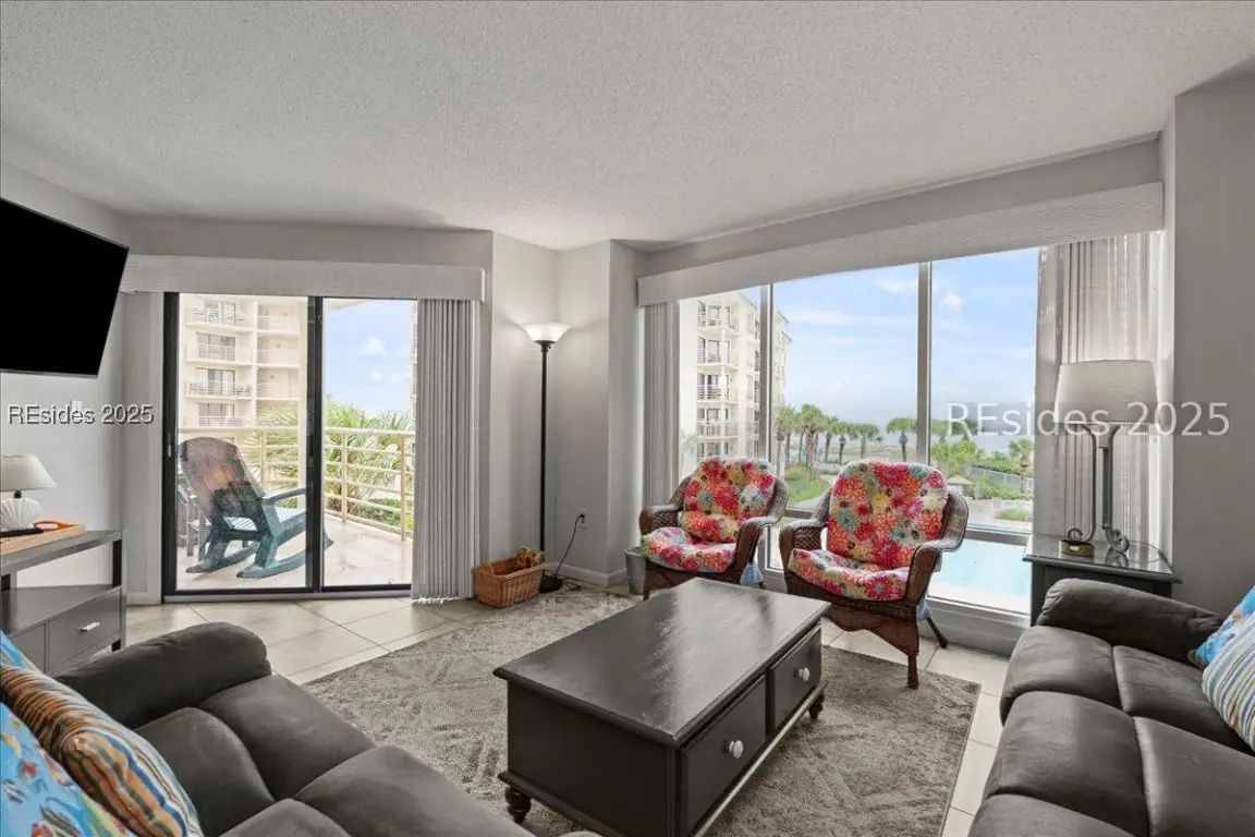 One of the best views in all of Villamare. Look across the main pool to huge views of the Atlantic and the beautiful dunes. Upgraded unit with granite kitchen and baths. New separate tile shower in the primary bath. Tile floors throughout. 2 Balconies to enjoy the view of the ocean and listen to the waves. Tons of natural light. Newer HVAC and hot water heater. Villamare has two new outdoor pools (one adults only) plus an indoor pool which is part of the fitness center. Patio area with grills and a firepit. Villamare has everything you want in a resort complex plus all that Palmetto Dunes has to offer golf, tennis, pickleball, restaurants, bike and kayak rental and the General Store. Do not miss this once in a lifetime view unit.