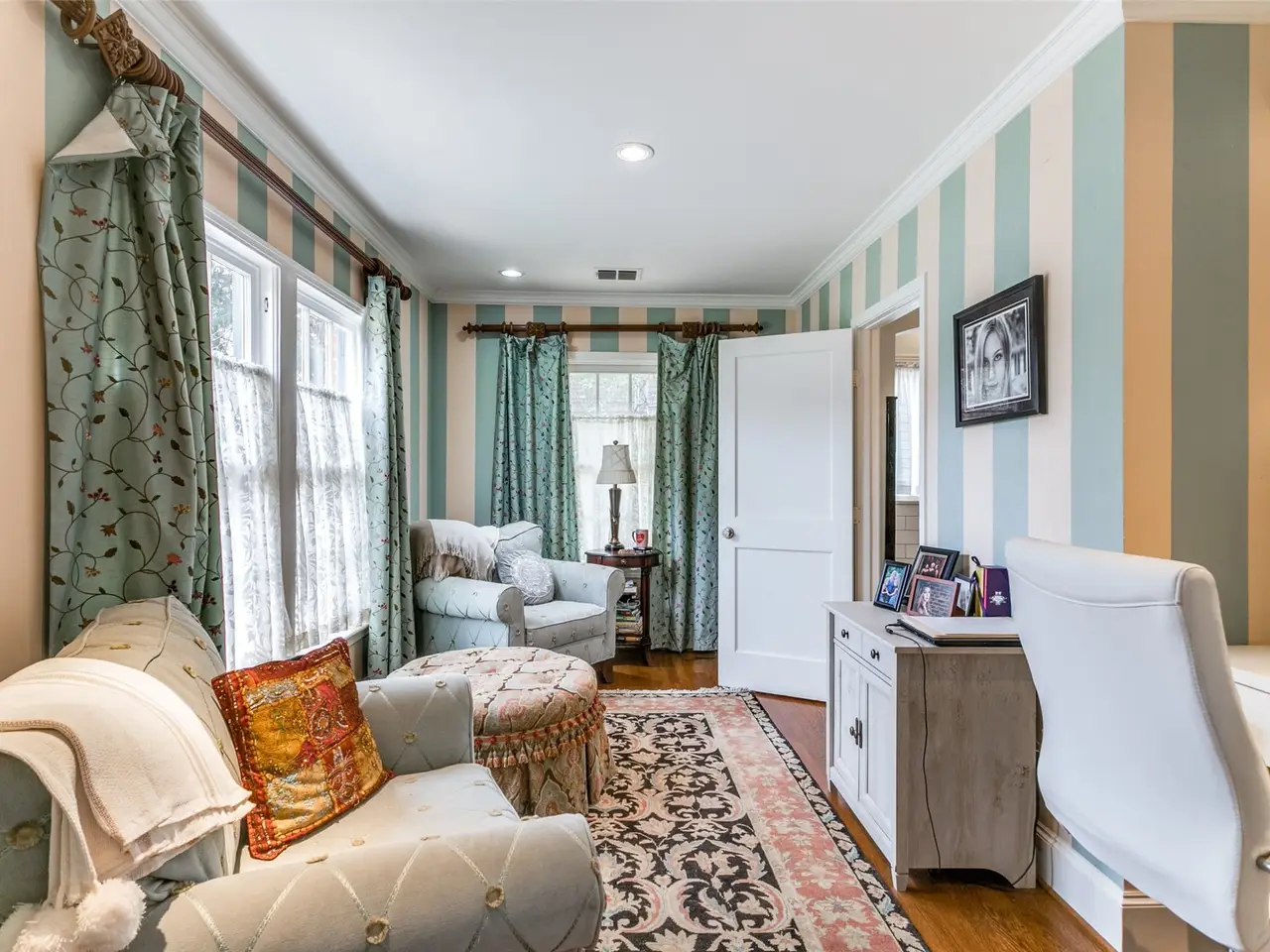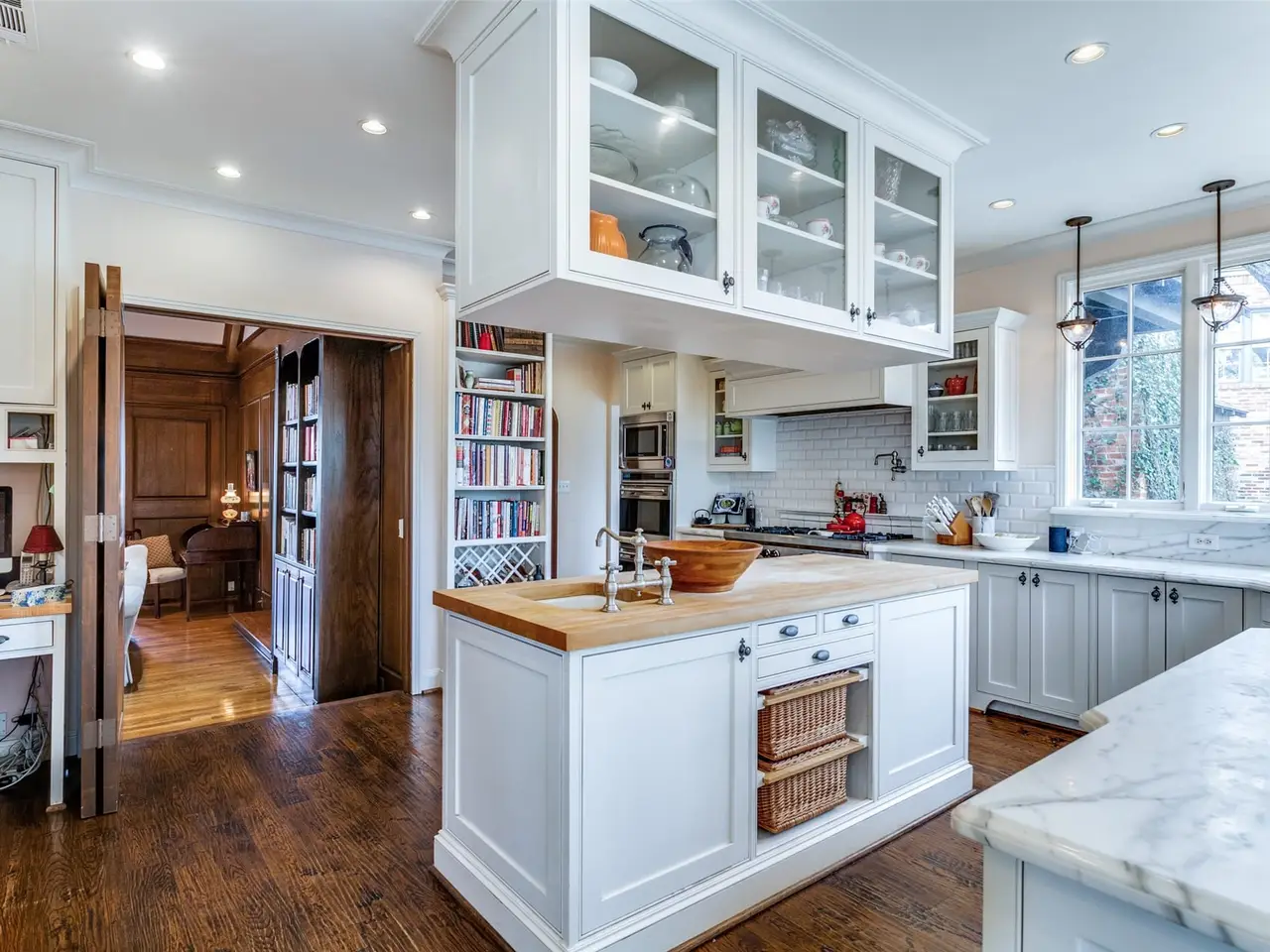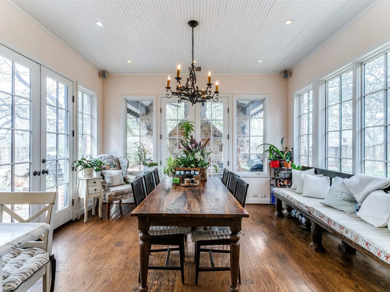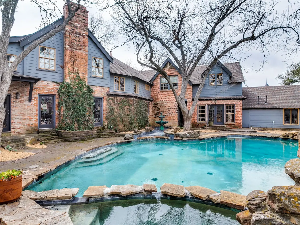 Set on a sprawling.69 acre lot, this home was originally built in 1940. Expanded and updated over the years, the home now encompasses over 6000 ft. (per DCAD) of rambling, fun space. Along with large open areas, there are nooks and crannies that children will marvel at. Traditional formals lead to a sensational great room and adjacent bar area that beg for entertaining. A large kitchen with island leads to a dreamy breakfast room with a high ceiling and walls of windows overlooking the pool, backyard, and covered patio with fireplace. The primary suite and separate sitting room are located on the first level, as is a multi-use space ideal for a game room or fitness area. Upstairs are four secondary bedrooms, one of which is unusually large, with a generous sitting area. The back yard is expansive, ideal for children and pets, and the pool is just plain fun. Brand new roof April 2024. Please see Transaction Desk for Offer Instructions, SDN, etc.