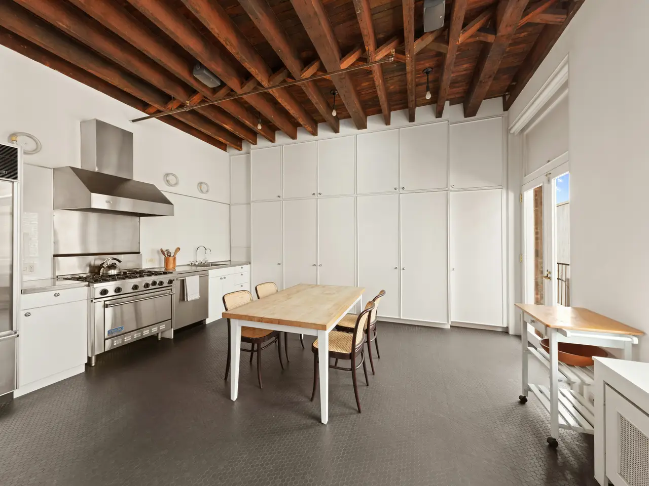 • Exposed beamed ceilings