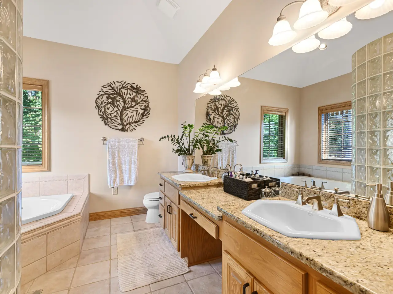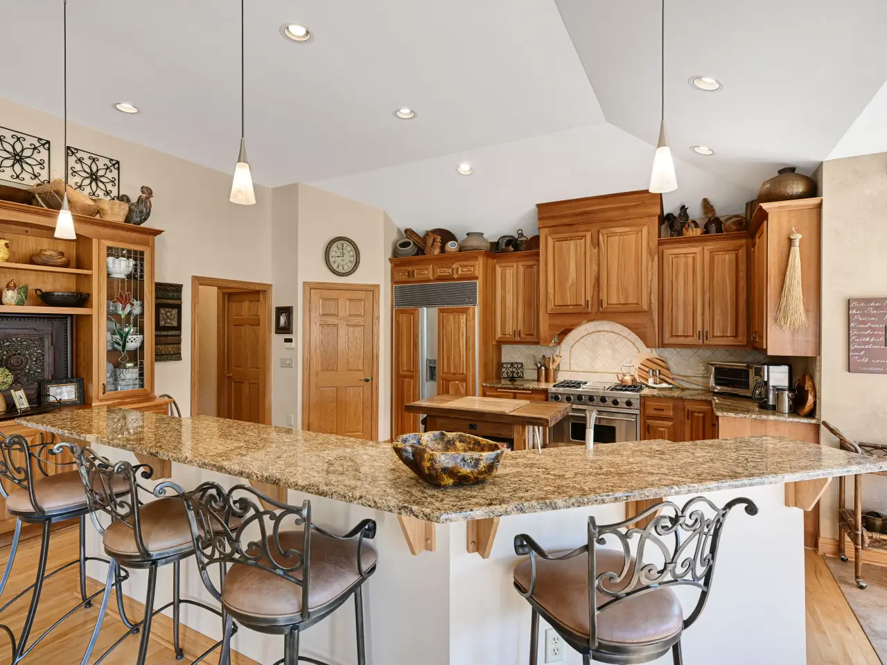 Secluded Executive Walk-Out Ranch. Tucked away on a quiet cul-de-sac, this stunning 3-bedroom, 3.5-bath executive walk-out ranch offers luxurious living space on a serene, park-like 1.9-acre wooded and fenced lot. Designed with quality in mind, this home combines privacy, elegance, and functionality. The open-concept great room features a wall of windows that flood the space with natural light and seamlessly connects to the formal dining area, sunroom, and chef's kitchen. The gourmet kitchen is a dream, complete with a large breakfast bar, cherry wood cabinetry, granite countertops, a professional-grade Viking stove, and a Sub-Zero refrigerator - perfect for entertaining or everyday living. 3.5-car heated garage includes a built-in dog wash and direct stair access to the lower level. The fully finished walk-out lower level is ideal for multigenerational living or in-law accommodations, featuring a bedroom, full tiled bath, large family room, and rec room - all finished with the same high-quality craftsmanship as the main level.