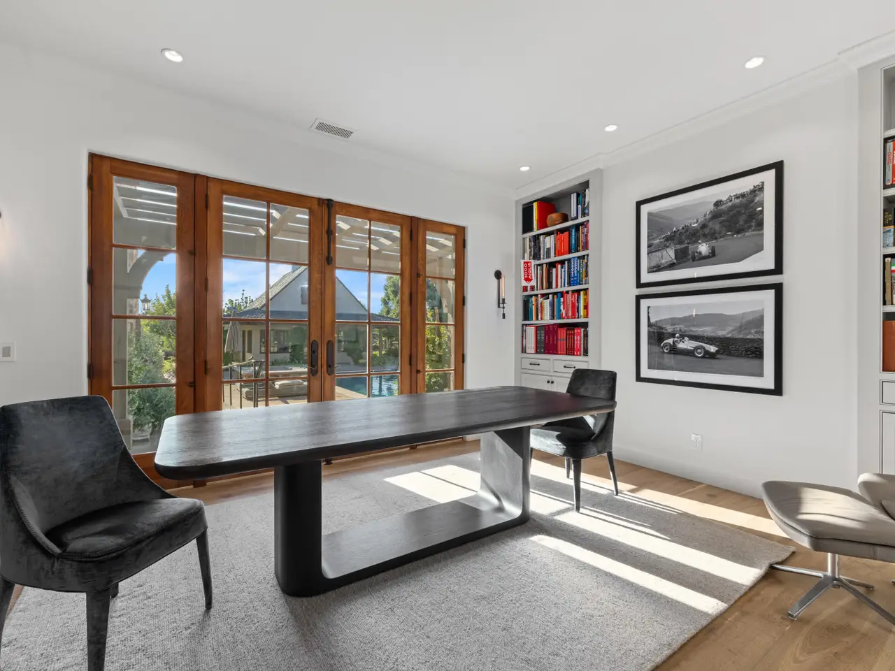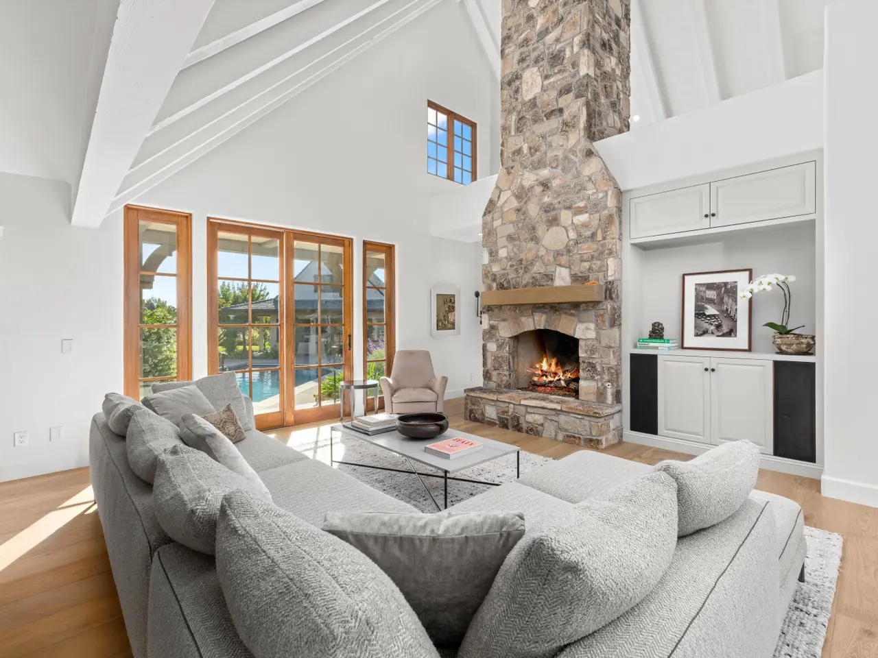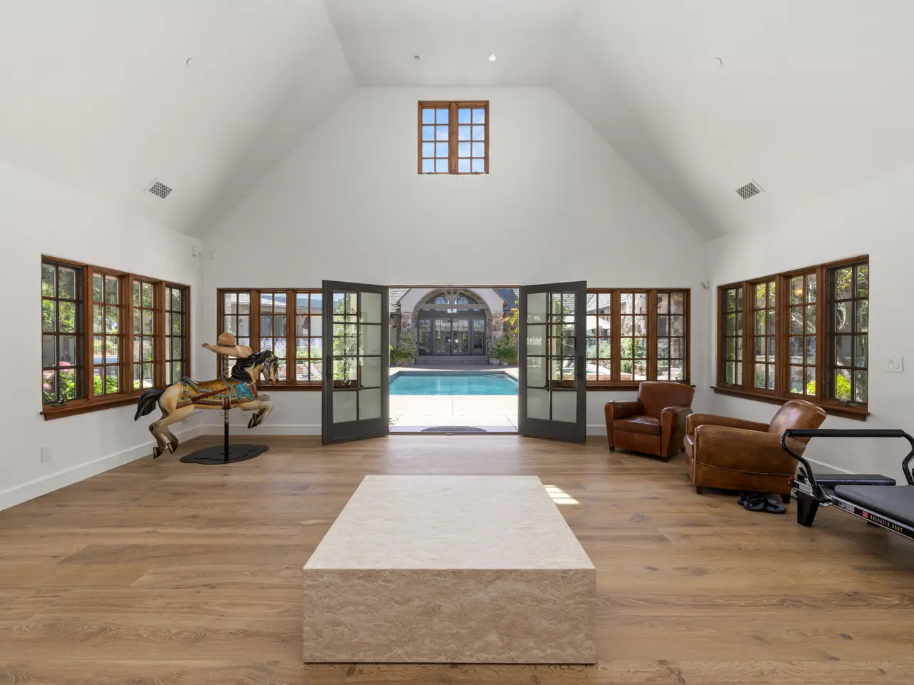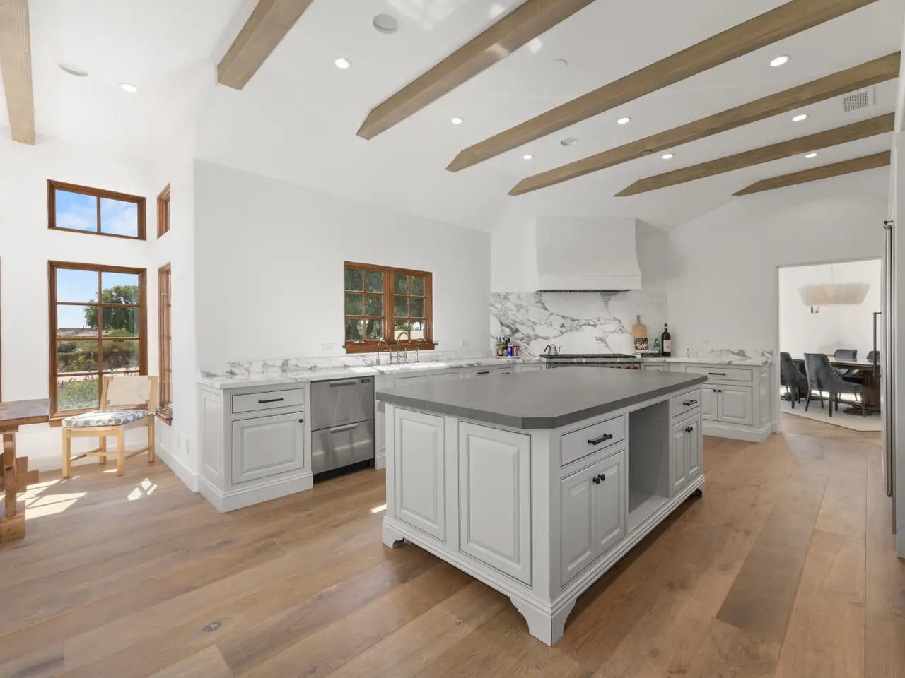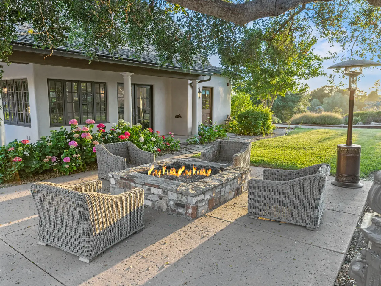 Discover the ultimate in refined Santa Ynez Valley living at 1325 Ladan Drive, an estate set on 4.33+/- gently rolling acres in prestigious Regency Hills Estates and the coveted Ballard School District. This exquisite property offers a blend of timeless elegance and modern luxury complete with an exquisitely reimagined Belgian Farmhouse, guest house, design/workshop studio, ample garage space, pool, spa, pool house, boutique vineyard, bocce ball court, and pasture space. Completely transformed in 2022-2023, the 5,300+/- sf main residence was remodeled to perfection with French oak floors, Calacatta Viola countertops, custom cabinetry, and curated lighting by Kelly Wearstler, Punch London, Noguchi, and RH. The chef's kitchen is a dream, featuring a Wolf range, dual Sub-Zero refrigerators, and an open layout designed for effortless entertaining. Warm fireplaces anchor both the living and family rooms, and a private office with library-style bookcases provides a quiet retreat. The primary suite is a haven with its romantic fireplace, private patio, and spa-inspired bath with steam shower, soaking tub, and bespoke dressing room closet. Two additional spacious guest bedrooms and a billiards room add to the home's inviting layout, while a home theatre elevates everyday living. Outside, the estate unfolds into a series of thoughtfully designed amenities: a pool with new plaster, tile, coping, and automated cover; a pool house with a bar, full bath, and open space for a gym, game tables, or relaxing lounge area; and a charming guest house featuring a kitchen, sitting room, bedroom, and bath. Additionally, the workshop/studio is equipped with three 40-amp circuits, ideal for wine refrigeration or artistic pursuits, and 2 roll-up doors for flexible use. The five-car collector's garage offers custom cabinetry, dedicated laundry, and attic storage with a lift for ease of access. Meandering pathways lead through romantic gardens, specimen olive trees, fruit orchards, grapevines, organic cedar planter beds, and tranquil patios with sweeping valley views. A bocce ball court and open pasture await your horses or even a future pickleball court! Enhanced with smart home integration for lighting, sound, and security, this remarkable estate is both an entertainer's paradise and a peaceful retreat. Welcome to your forever home - a place of pure bliss and timeless sophistication in the heart of the Santa Ynez Valley.