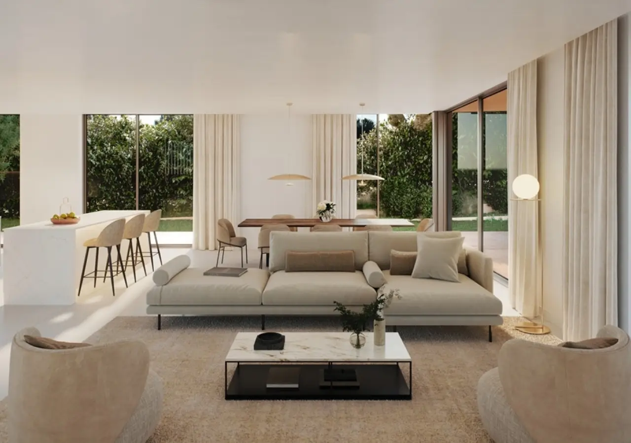 Recently launched in the prestigious Vale do Lobo Resort, The Residences presents this 4-bedroom linked villa — a unique opportunity for those who value a sophisticated lifestyle with comfort, security, and exclusivity, right in the heart of the Algarve’s acclaimed Golden Triangle. With four bedrooms, this residence was designed with attention to detail, so as to guarantee privacy without sacrificing a cozy atmosphere with a sense of community. Spread over two floors, it stands out for its contemporary design , clean lines and large windows that allow a fluid connection between the interior spaces and the surrounding outdoor gardens. Outside, it has a private pool and garden terraces, providing an ideal space for leisure time, socializing or simply relaxing at the end of the day. The villa also includes a covered carport and a versatile basement, with multipurpose rooms adaptable to each family's needs - whether as a games room, office or private gym. This exclusive development consists of 10 villas, all with four bedrooms, with interior areas between 212m² and 298m² and plots ranging from 534m² to 787m², guaranteeing a peaceful and private environment. The units have been strategically positioned to maximize comfort, natural light and integration with the surrounding landscape. The location is one of the property's greatest assets: just a few minutes from the golden beaches of the Atlantic, the award-winning golf courses of Vale do Lobo, and a wide range of renowned restaurants, bars, spas and exclusive services that define the lifestyle of this prestigious area. Access the brochure here. Contact us. CHARACTERISTICS: Plot Area: 534 m2 | 5 748 sq ft Area: 212 m2 | 2 282 sq ft Bedrooms: 4 Garage: 2 Energy efficiency: NA FEATURES: 4 bedroom villa 2 floors Private condominium Luxurious Private swimming pool Private parking Private terrace