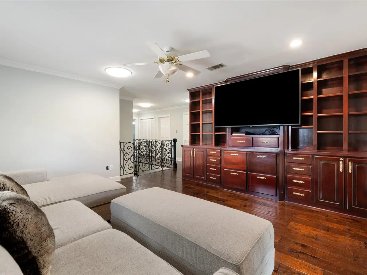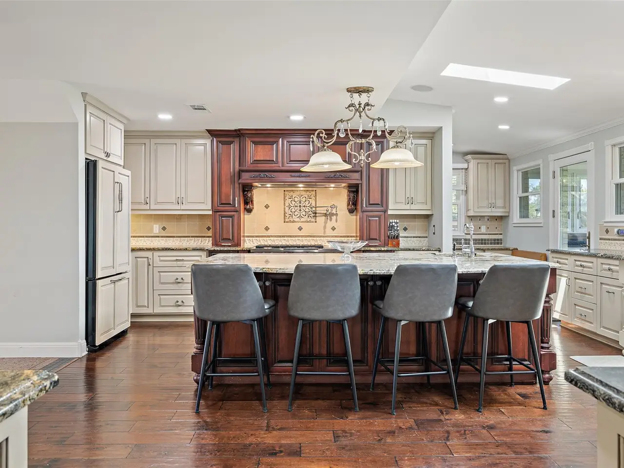 Nestled on a scenic ridge in Leander, this stunning 4-acre Hill Country estate offers sweeping panoramic views and luxurious indoor-outdoor living. Surrounded by mature oaks and native landscaping, the elegant brick and stucco home feels like a private retreat, just minutes from Lake Travis, top-rated schools, and the amenities of Cedar Park and Northwest Austin. Nature lovers will appreciate the nearby Brushy Creek Regional Trail and the Louis Rene Barrera Indiangrass Wildlife Sanctuary. Inside, natural light floods the open-concept layout through expansive windows that frame breathtaking vistas. The gourmet kitchen is a chef's dream with high-end appliances, granite countertops, and custom cabinetry, flowing seamlessly into a spacious living area anchored by a striking brick fireplace. Additional highlights include skylights, surround sound, a formal dining room with its own fireplace, a butler's pantry, and a wine refrigerator. The primary suite is a true sanctuary with a spa-like bathroom, terrace access, and a private spiral staircase. Spacious guest bedrooms offer comfort and privacy, while the outdoor space is built for entertaining: a large covered patio, sparkling pool, outdoor kitchen with built-in grill, fireplace, and integrated sound system. A detached, climate-controlled office offers a quiet workspace, while the two-car garage with epoxy flooring is ideal for a gym, second office, or workshop. The charming guest house includes a full kitchen, bathroom, and its own two-car garage. Rounding out the estate is a full sport court for basketball or pickleball and a versatile barn with stables and enclosed storage. This estate is a rare blend of Hill Country charm and modern luxury--just moments from Austin.