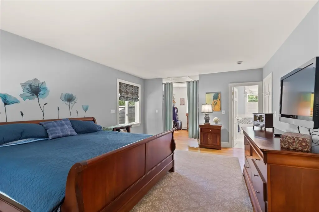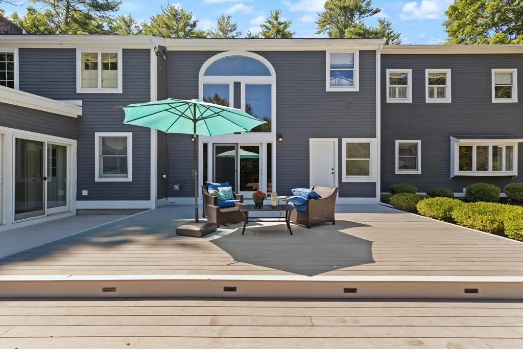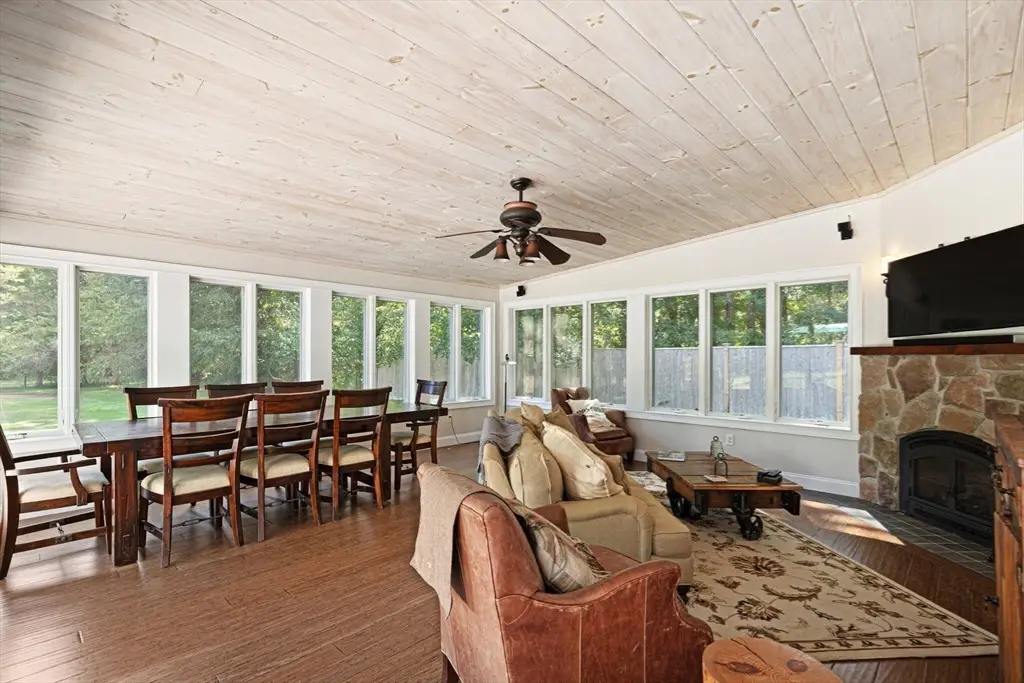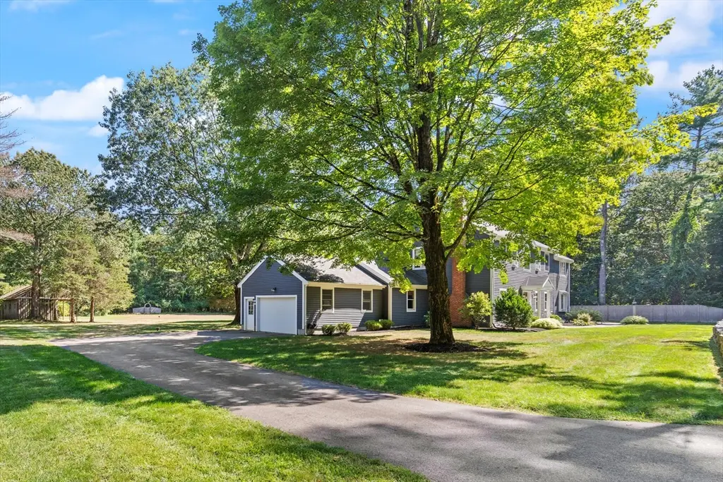 Highly desirable East Boxford beautiful 4-bed 3.5-bath Colonial with a 3 garage spaces in the Historic District surrounded by nature on a level lot with an expansive 1.6-acre yard. Majestic bright two-story entry foyer. First floor formal dining room. Open living/kitchen area the heart of this home loaded with natural light. Enormous windows. Half bath. Laundry. Direct access to 2-car garage. Heated year-round enclosed porch w/gas fireplace. Relax, entertain and watch nature on the beautiful deck/patio. Second floor Primary Suite w/walk in closet, renovated bath w/soaking tub. Two additional bedrooms, a home office with French doors. Full bath and an amazing bonus gathering area with fireplace, pool table (a gift from the seller) and bar area. First floor In-law suite w/fireplaced living area, kitchen, den, bedroom with a 3/4 bath. Direct access to private farmers porch overlooking the yard. Short distance to route 95,the Town Center, Senior Center, schools, Boxford Community Kitchen.