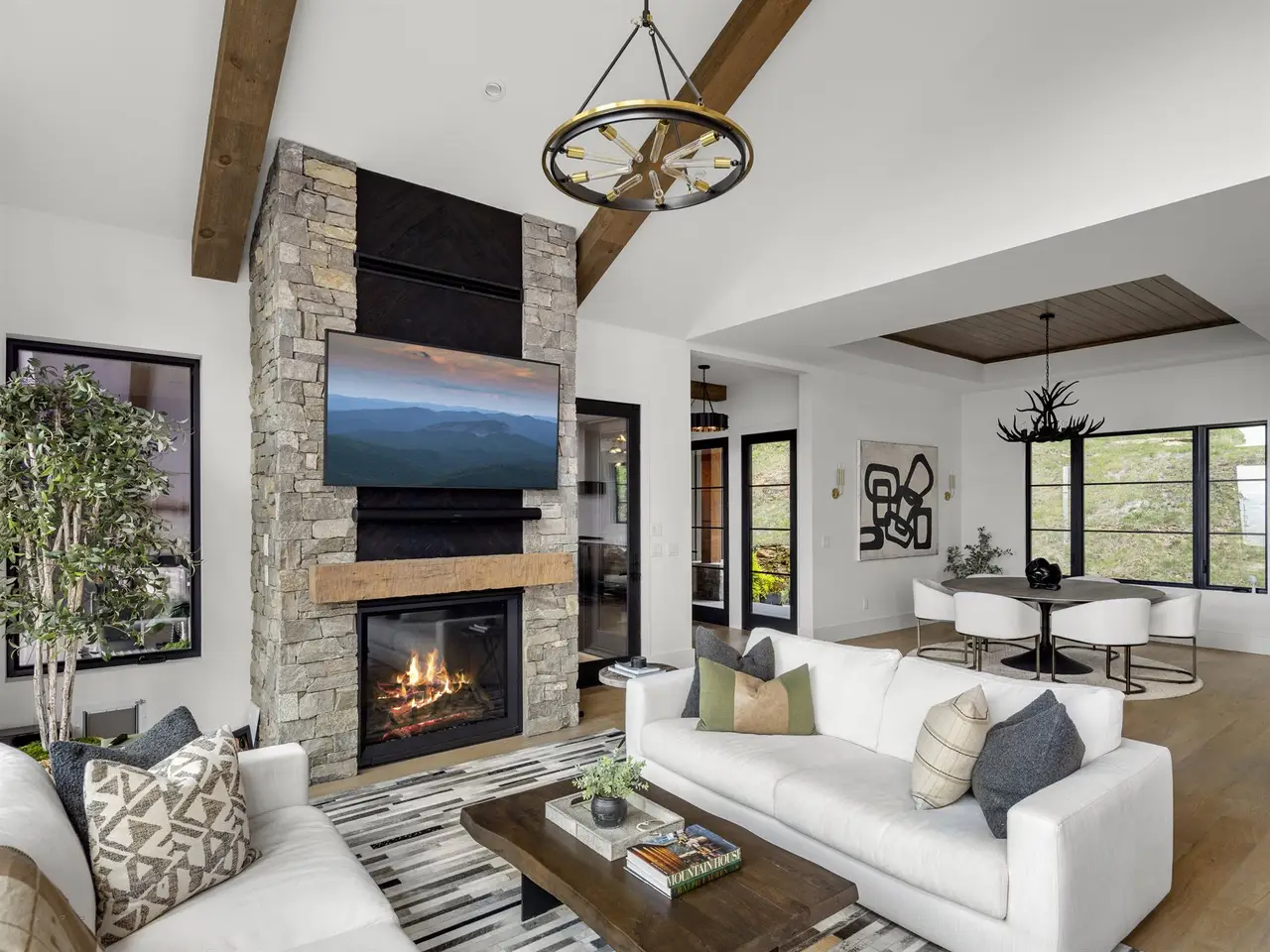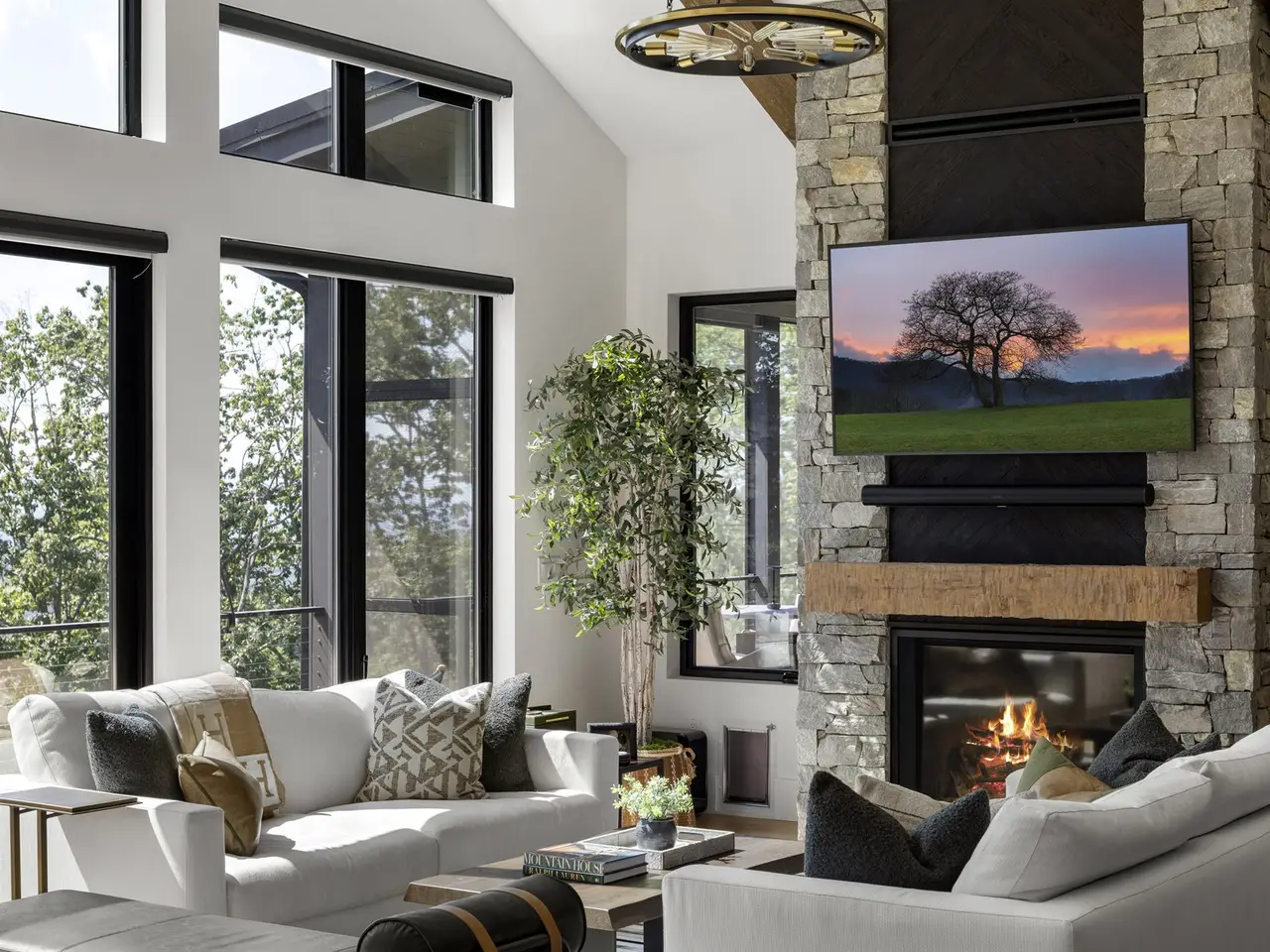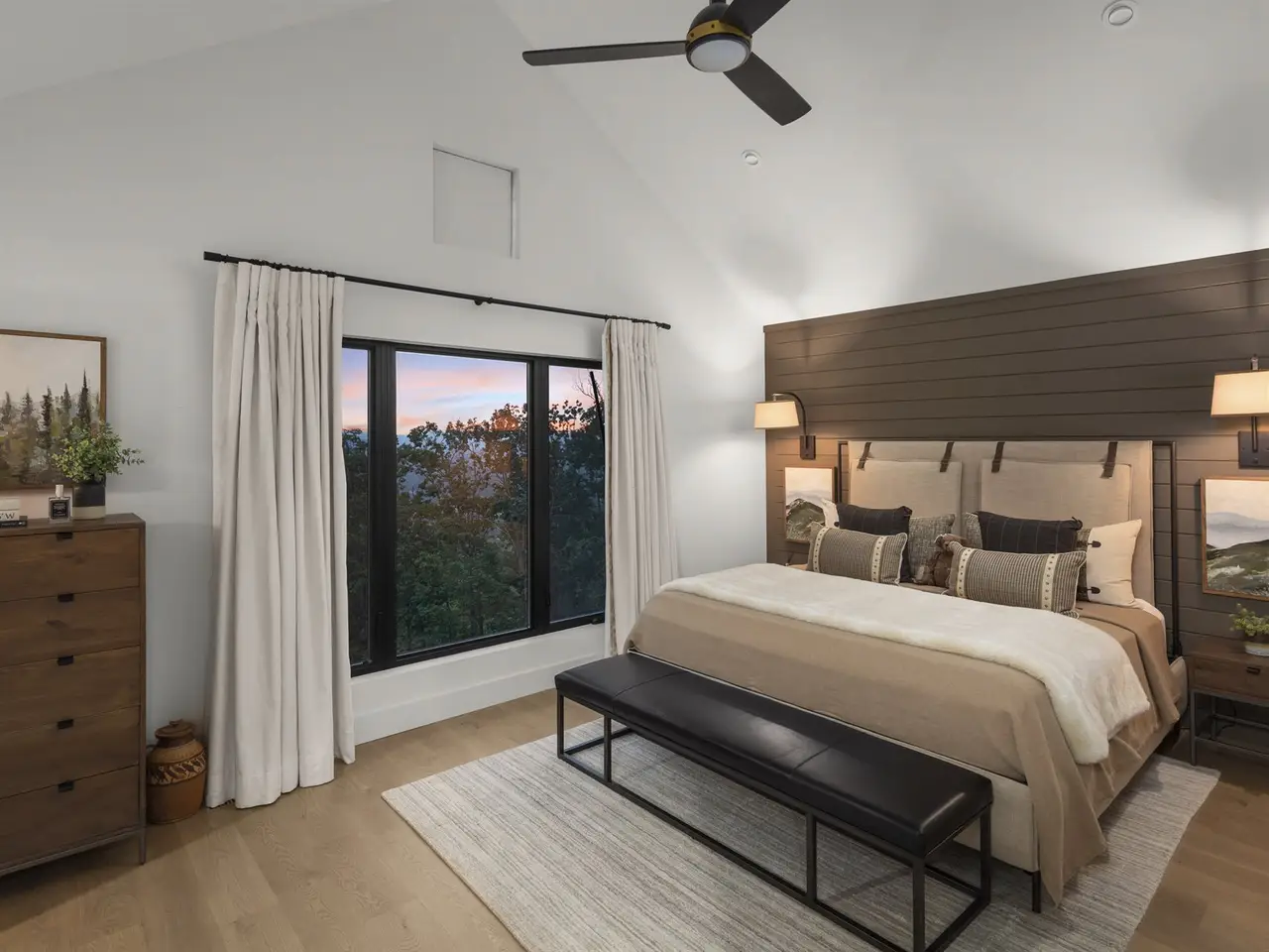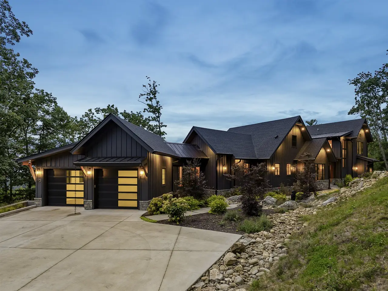 Set on over two private and gated acres, this mountain modern residence defines refined luxury. Built by an award-winning Parade of Homes builder and perfectly sited to capture long-range views of South Asheville and the Blue Ridge Mountains, the home offers complete privacy while just two miles from groceries, fitness, and conveniences. Featuring main-level living and green-built efficiency, it's an ideal primary residence or effortless second home. Floor-to-ceiling windows fill the interiors with natural light and frame breathtaking mountain views. Open living areas flow seamlessly to outdoor spaces for entertaining or a quiet retreat. With three bedrooms and three-and-a-half baths, this home blends craftsmanship, comfort, and style while creating a private, sustainable, and elegant mountain sanctuary.