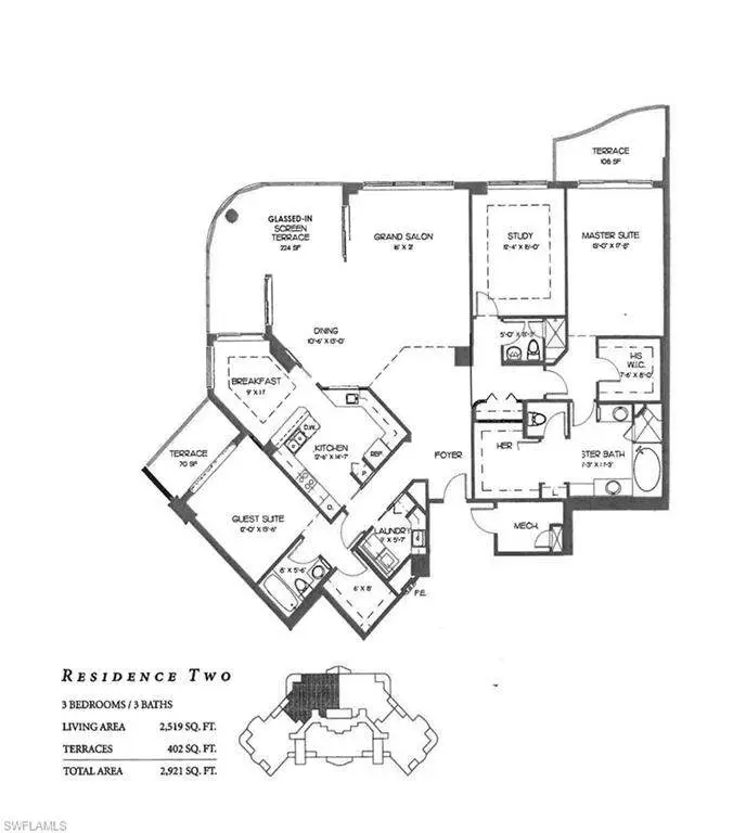 Two bedroom PLUS DEN - Wake up to breathtaking, panoramic views of the Gulf of Mexico from nearly every room in this luxury condo at The Vistas at Bonita Bay. With over 2,500 square feet of living space, this residence offers the comfort and size of a single-family home without the upkeep. Designed to maximize its coveted Southwest exposure, the thoughtfully crafted floor plan brings the stunning scenery indoors, complemented by soaring 9-foot ceilings and expansive windows throughout. This elegant home features a glassed-in lanai that can be enjoyed year-round, providing a perfect retreat for relaxing or entertaining regardless of the season. Two private open-air balconies-one off the primary bedroom and another off the guest suite-offer tranquil spaces to savor the warm Gulf breezes and stunning sunsets. The spacious living areas include a versatile study with custom built-ins overlooking the Gulf, a large kitchen ideal for entertaining, and multiple dining spaces, including a formal dining room and a breakfast nook, both surrounded by spectacular vistas. The private guest suite is thoughtfully positioned away from the primary bedroom to ensure optimal privacy for everyone. Situated in the prestigious Bonita Bay community, The Vistas offers the best of resort-style living, with access to pristine beaches, championship golf courses, and exceptional amenities. This high-rise condo includes two secured garage parking spaces and delivers a low-maintenance lifestyle without compromising space or luxury. Immerse yourself in the unparalleled beauty of Gulf-front living, where every moment feels like a luxurious retreat.
