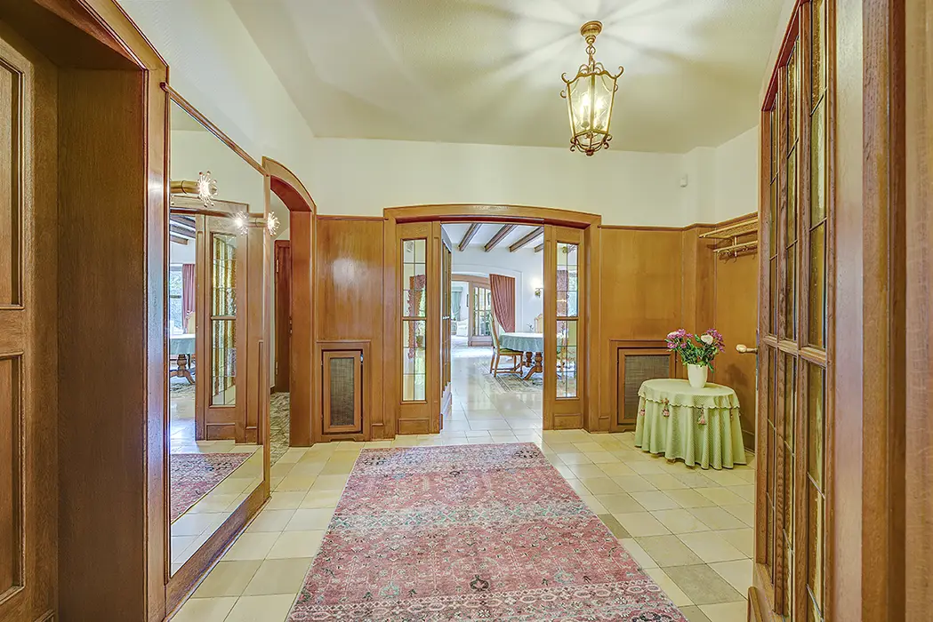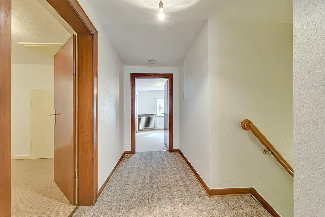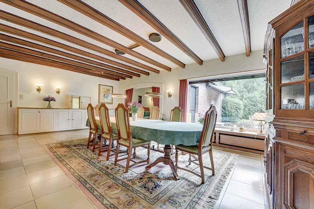 This spacious single-family home, built in 1954, sits on an impressive plot of approximately 5,860 m² and, with approximately 630 m² of living and usable space, offers ample space for individual lifestyles. The property is ideal for families who prefer living close to nature and value spatial diversity and privacy. The total area is divided into a total of 10 rooms, which, thanks to their attractive architecture and well-thought-out floor plan, offer flexible usage options. You will be warmly welcomed in the inviting entrance area, which offers ample space for a cloakroom and reception area. From here, you will access the various living areas, designed for spaciousness and offering numerous options for individual living ideas. The living space on the ground floor is approximately 241 m² and impresses with three spacious bedrooms, an extra-large living room with an adjoining piano room, a representative, spacious dining room, and a separate kitchen. In addition, there is a master bathroom with two showers and a sauna, as well as two separate guest toilets, which together offer first-class living comfort for the whole family. The oversized sun terrace is accessible from the hallway via the dining room. From the terrace, you can enjoy a magnificent view of the expansive garden and the adjacent forest. The garden boasts mature trees, numerous shrubs, and plants – ideal for creative landscaping. A pond at the rear of the property provides an additional, tranquil atmosphere. Adjacent to the property is a spacious garage with a basement, perfect for tradespeople and hobby gardeners. A toilet and another room offer additional comfort for every user. The attic is comfortably converted and offers approximately 165 m² of usable space. Here, you'll find ample space for your hobbies, or you can use it as a combined living and working area under one roof. Connections for a kitchen are available, and a modern bathroom completes the offering. The spacious garden offers a wide range of possibilities for individual design. It offers space for both play areas for children and quiet areas for relaxing hours in the fresh air. The size of the property also offers potential for ambitious garden projects. A spacious parking area in front of the garage is available for your vehicles. The property is located in a quiet residential area with good transport links. Shopping facilities, schools, and public amenities are easily accessible. The property is well-maintained, in keeping with its age, and offers scope for individual modernization options. The furnishings are also appropriate for its age, allowing for flexibility in design according to your wishes.Thanks to its size and versatility, this single-family home is ideal both as a long-term family residence and as a home for both living and working under one roof. Get a personal impression of the design options and see for yourself the exceptional space available during a viewing. We would be happy to provide you with further information and arrange a viewing appointment. Read more Location Description This property is located amidst picturesque nature, right on the edge of the forest. From here, beautiful walks and bike rides beckon. Grafenmühle, the Haniel spoil heap, the Gasometer, and Oberhausen Castle are all within easy reach by bike or car. The nearby town center of Königshardt offers numerous shops for daily needs. Schools and kindergartens are also nearby. Various restaurants and an ice cream parlor complement the dining options. A nearby bus line provides easy access to surrounding towns, while short journeys to the A3, A516, and A2 motorways offer additional convenience.
