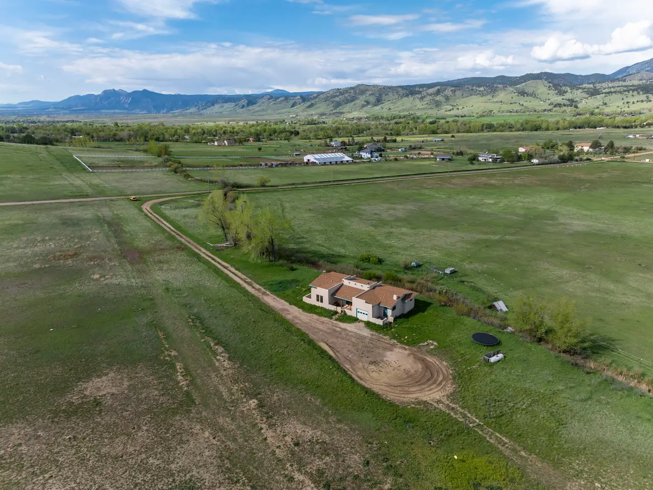 39 peaceful acres! Fabulous mountain views, and plenty of Colorado sunshine. Purchase price includes 20 shares of Lefthand Ditch Water. Small southwestern style home with multiple patios, and many windows to enjoy the views. District water to the house, and radiant floor heat inside of the home. The power lines to the house have been buried, so as not to impede the views. The house does need some work, and primary value is in the land. Home to be sold in "as is" condition. Exceptionally tranquil property!