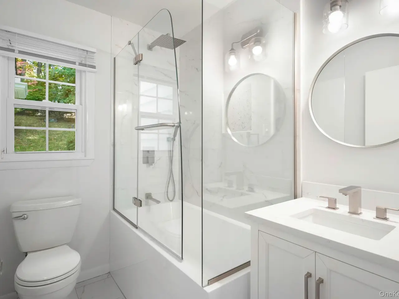 Welcome to this sparkling sun-filled ranch, this beautifully updated 4 bedroom/2.1 bath home offers an easy living floorplan, lovely landscaped property and easy access to top rated schools, shops and commuter train. Over 2000 sq ft, on an acre, offering privacy amidst a neighborhood feel. Newly renovated bathrooms, updated kitchen, freshly painted interior, and gleaming newly refinished white oak floors throughout beckon. The many windows allow natural light to flow into an impeccably maintained interior in move-in condition. Enjoy morning coffee on the slate patio overlooking the landscaped backyard. The updated white kitchen features quartzite counters, glass tile backsplash, a peninsula and opens onto an appealing breakfast room. The Formal Living Room features a cozy fireplace, crown molding and wall of windows. The Formal Dining Room is gracious in size and offers a built-in corner cupboard and wall of windows. The King size primary bedroom has a newly renovated en-suite full bath, walk-in closet and door to the backyard. additional bedrooms offer flexibility for den, home office, playroom. There is a newly renovated hall bath and powder room. The main level laundry/mud room provides an easy transition from the 2 car garage into the living space and backyard. The finished basement with high ceilings and door out is ready to be finished as a playroom or additional living space. Many additional improvements such as a new roof, recessed LED lighting, updated electrical, combined with low taxes make this a compelling offering. Won't last, schedule your appointment to view today!