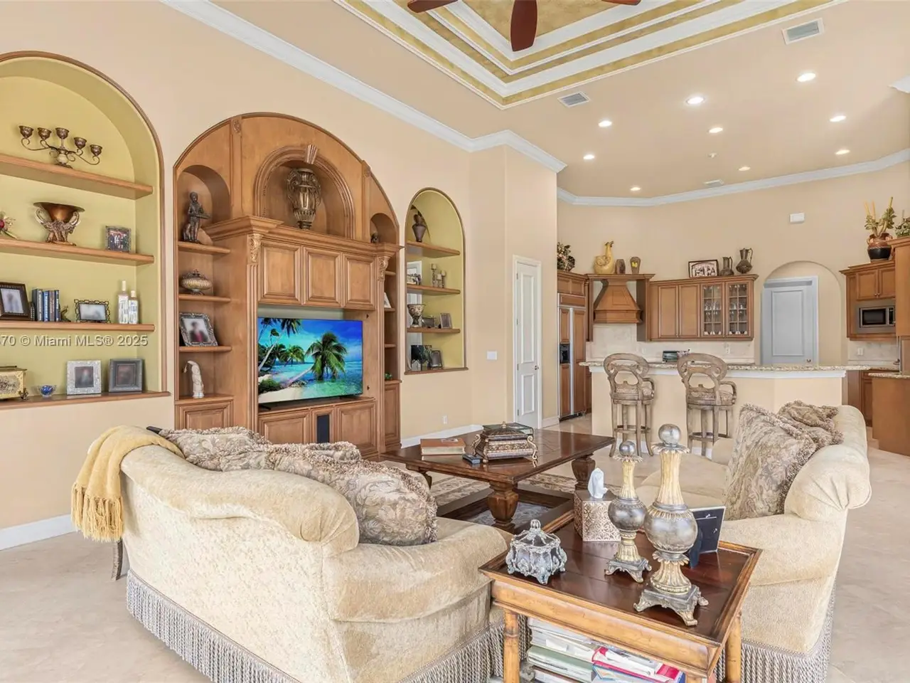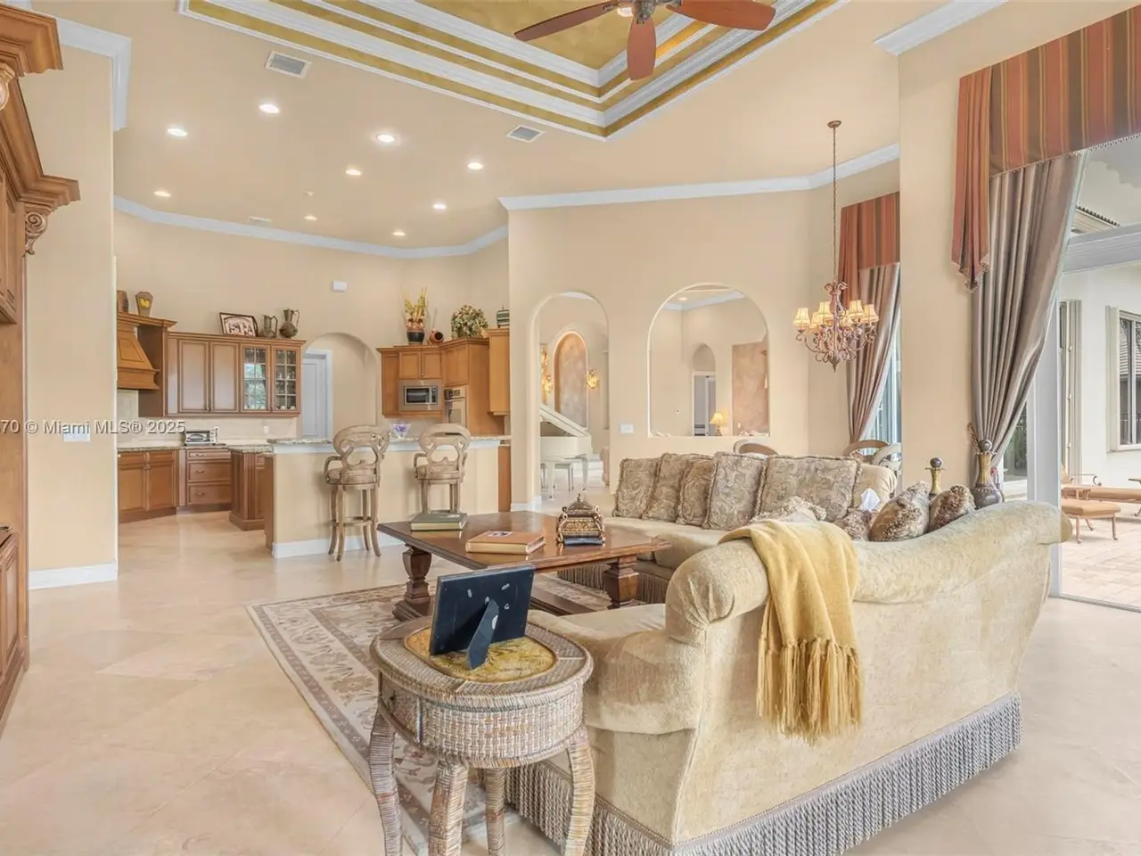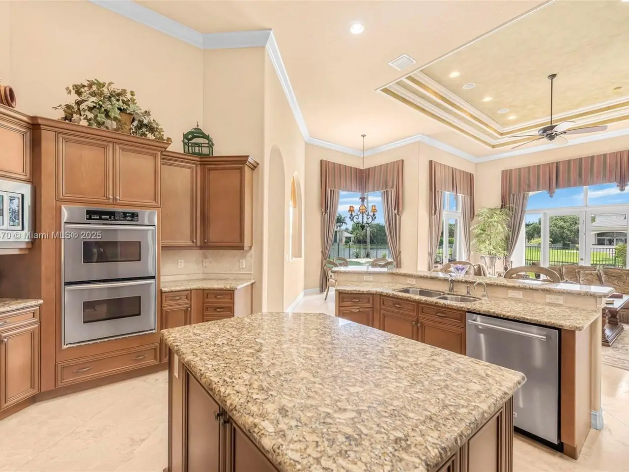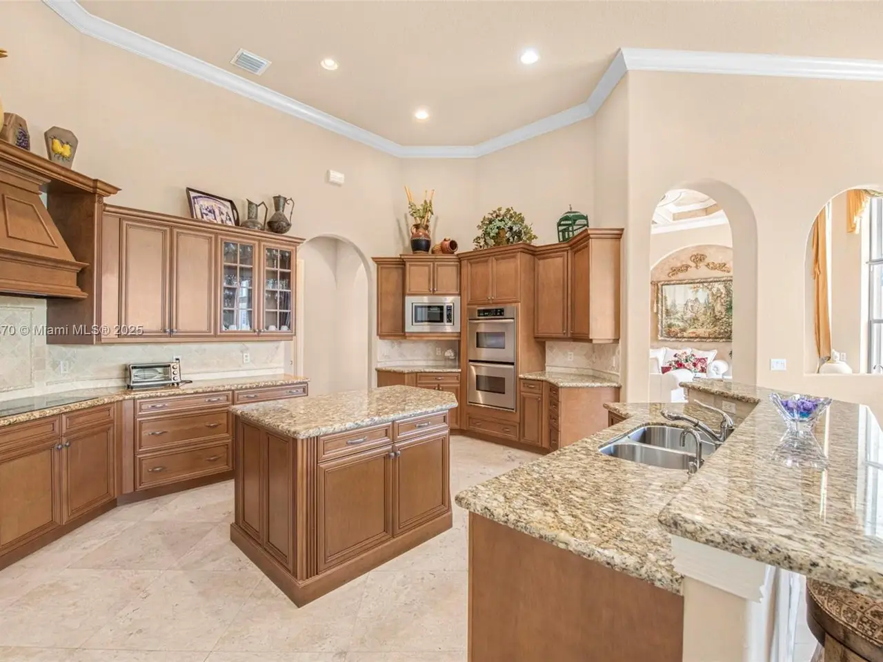 Custom gourmet kitchen opening to light-filled living spaces