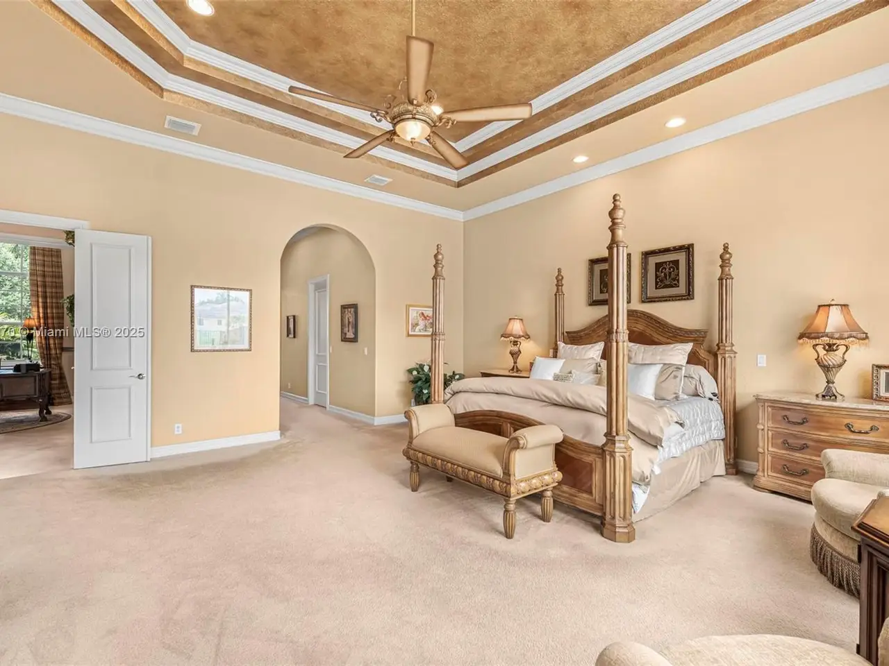 Luxurious primary suite with sitting area and dual walk-in closets