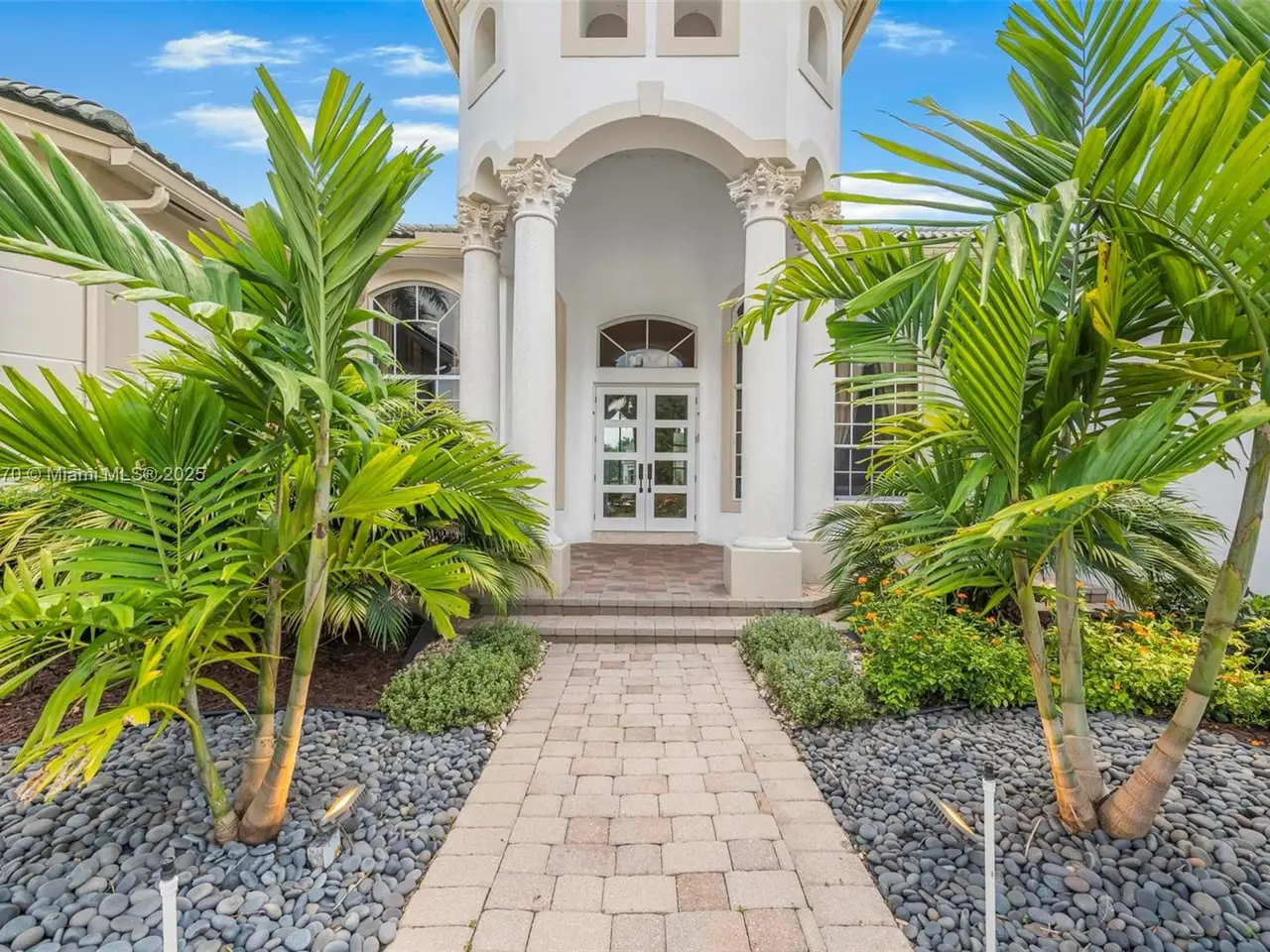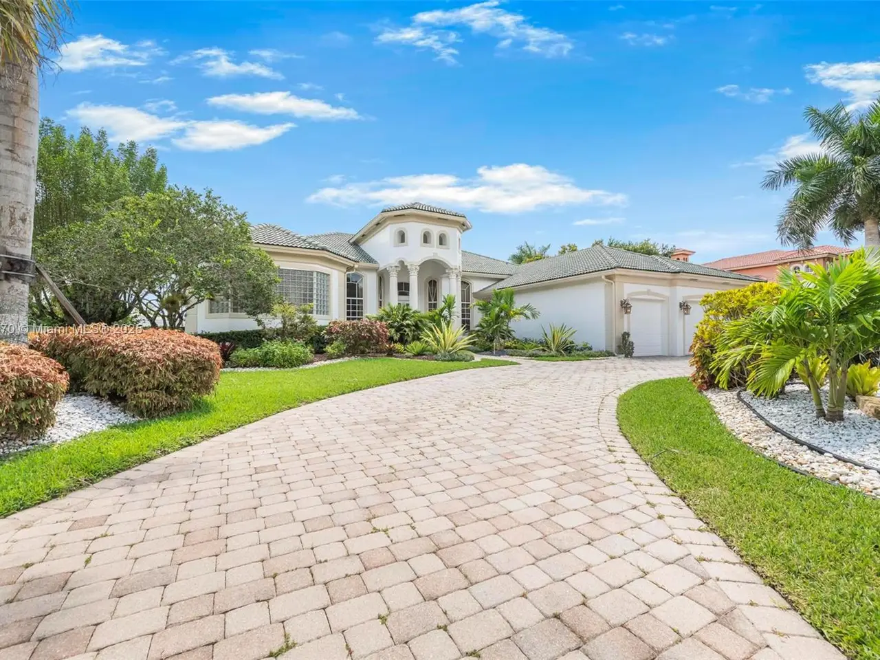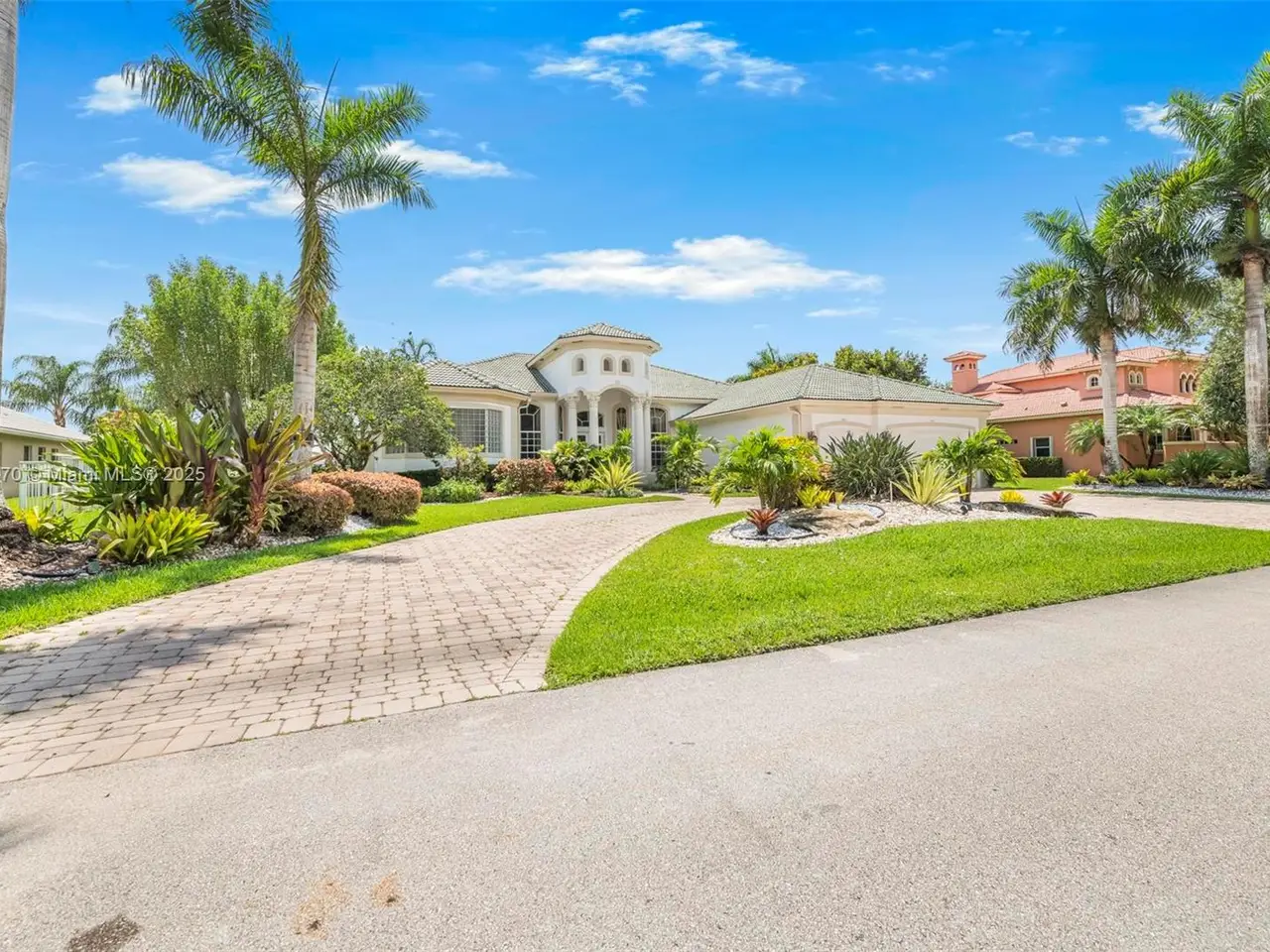 Grand curb appeal with beautifully paved circular driveway