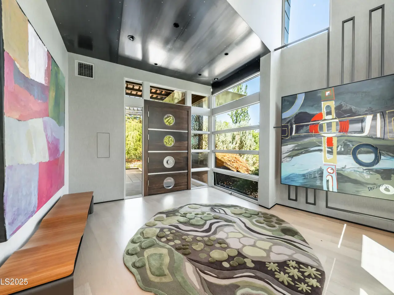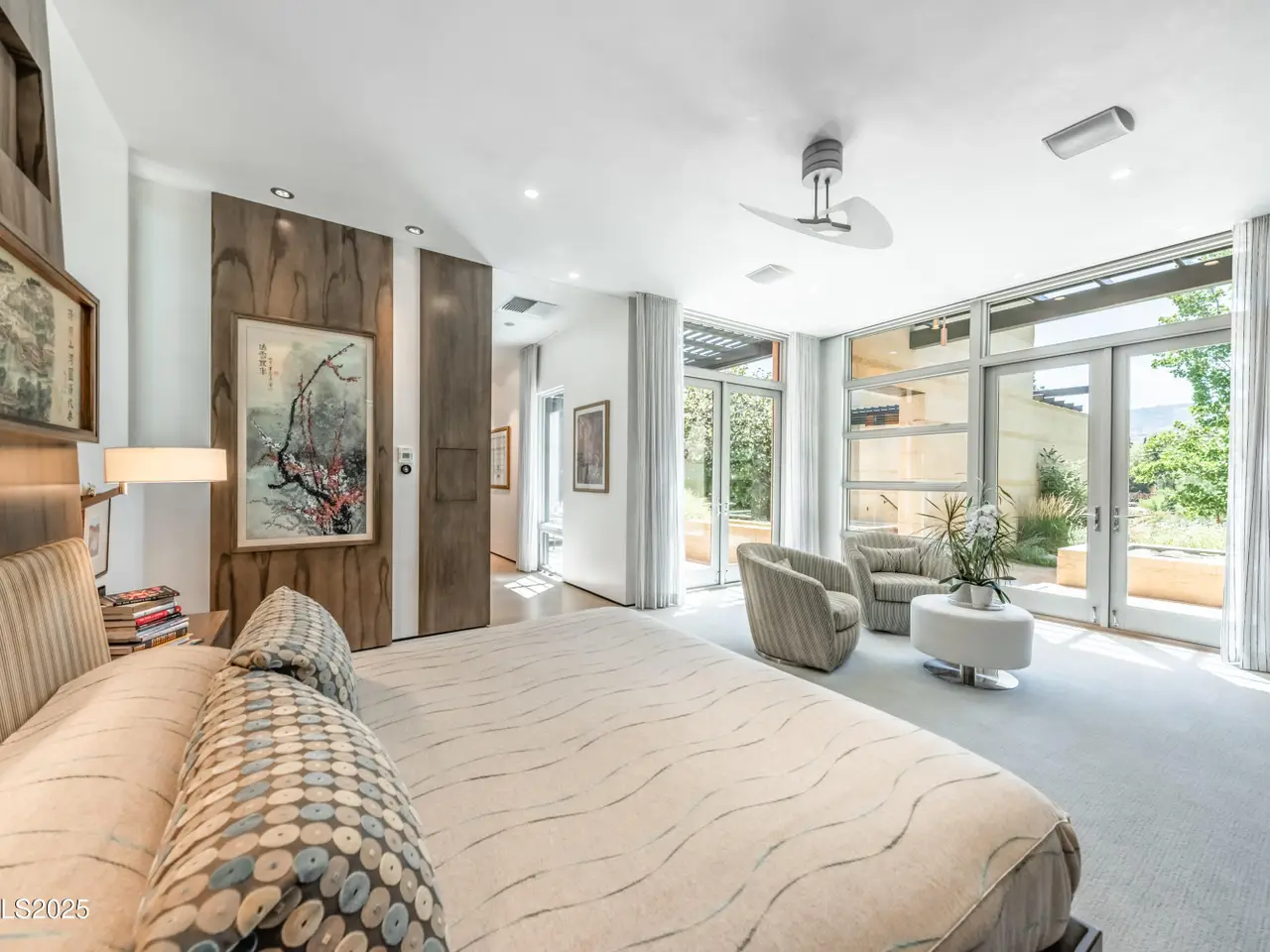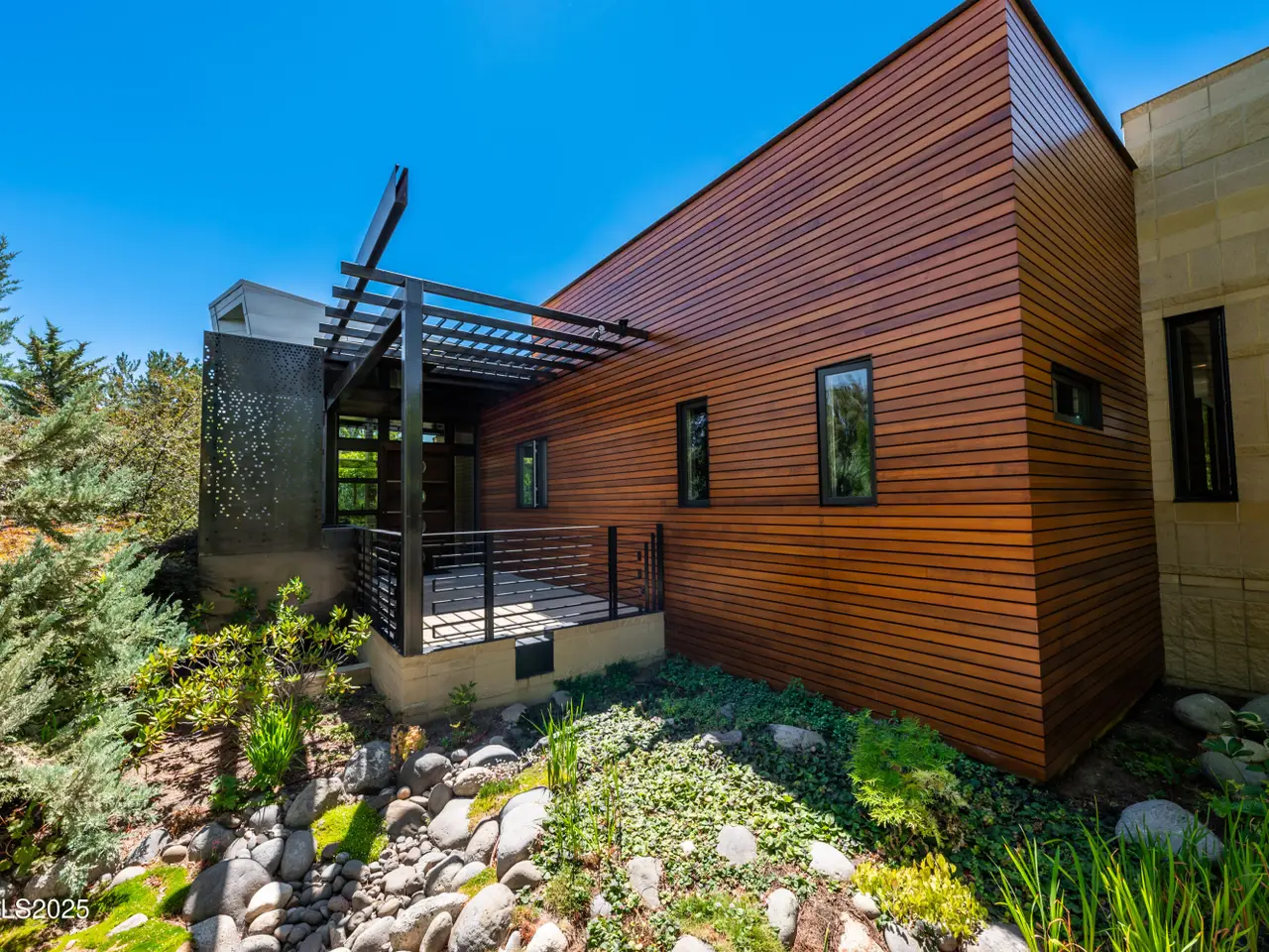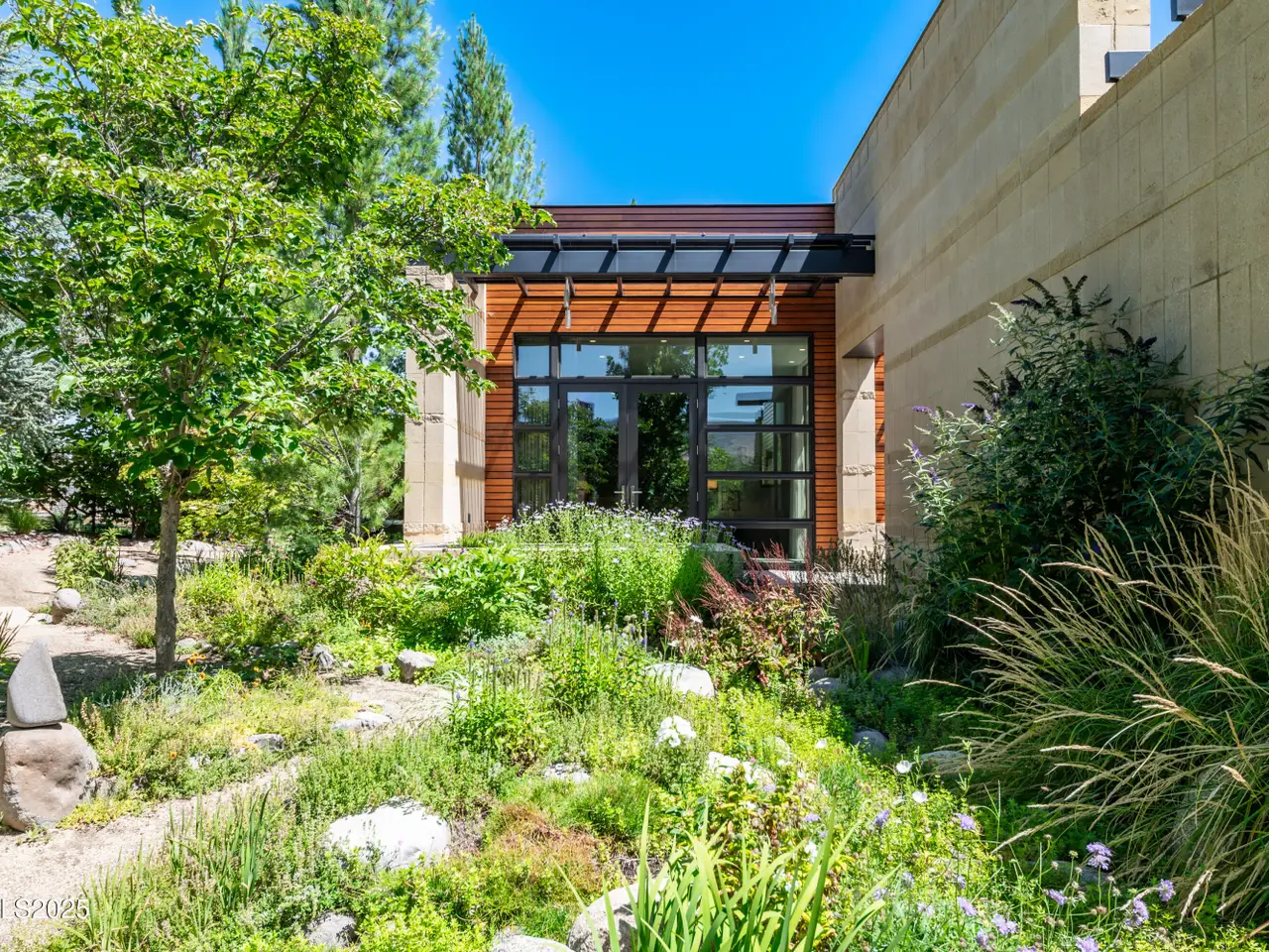 This architecturally significant home, constructed with concrete, metal, and wood siding elements, harmonizes modern design with its natural surroundings. Its state-of-the-art systems include hydronic heating powered by solar energy and evaporative cooling, offering both comfort and sustainability. The seamless connection between indoor and outdoor spaces is a defining feature, with the courtyard and pool creating a tranquil retreat. Art lovers and architecture enthusiasts alike will appreciate the home's thoughtful design and integration with the environment. This remarkable home extends its artistry into the landscape with extensive, curated gardens featuring custom metal fencing, sculptures, and a serene lily pond. A dedicated gardening room makes maintaining this outdoor sanctuary a pleasure. Additional features include a mudroom, outdoor shower, and a gym for an active lifestyle. Inside, cutting-edge technology enhances daily living, with high-tech LED lighting perfect for art displays, automated shades, and a full house automation system controlling audio, visual, and security systems seamlessly.
