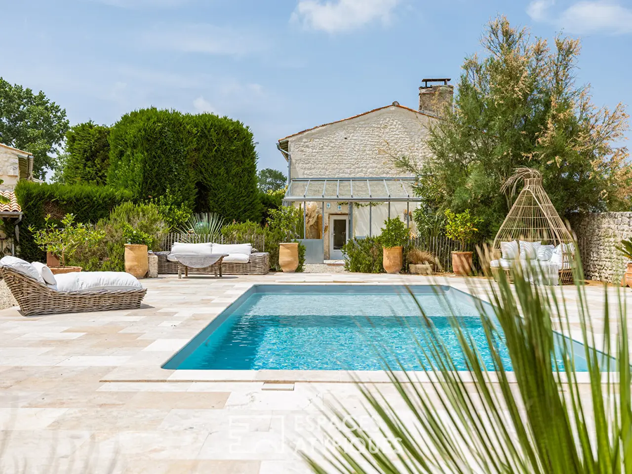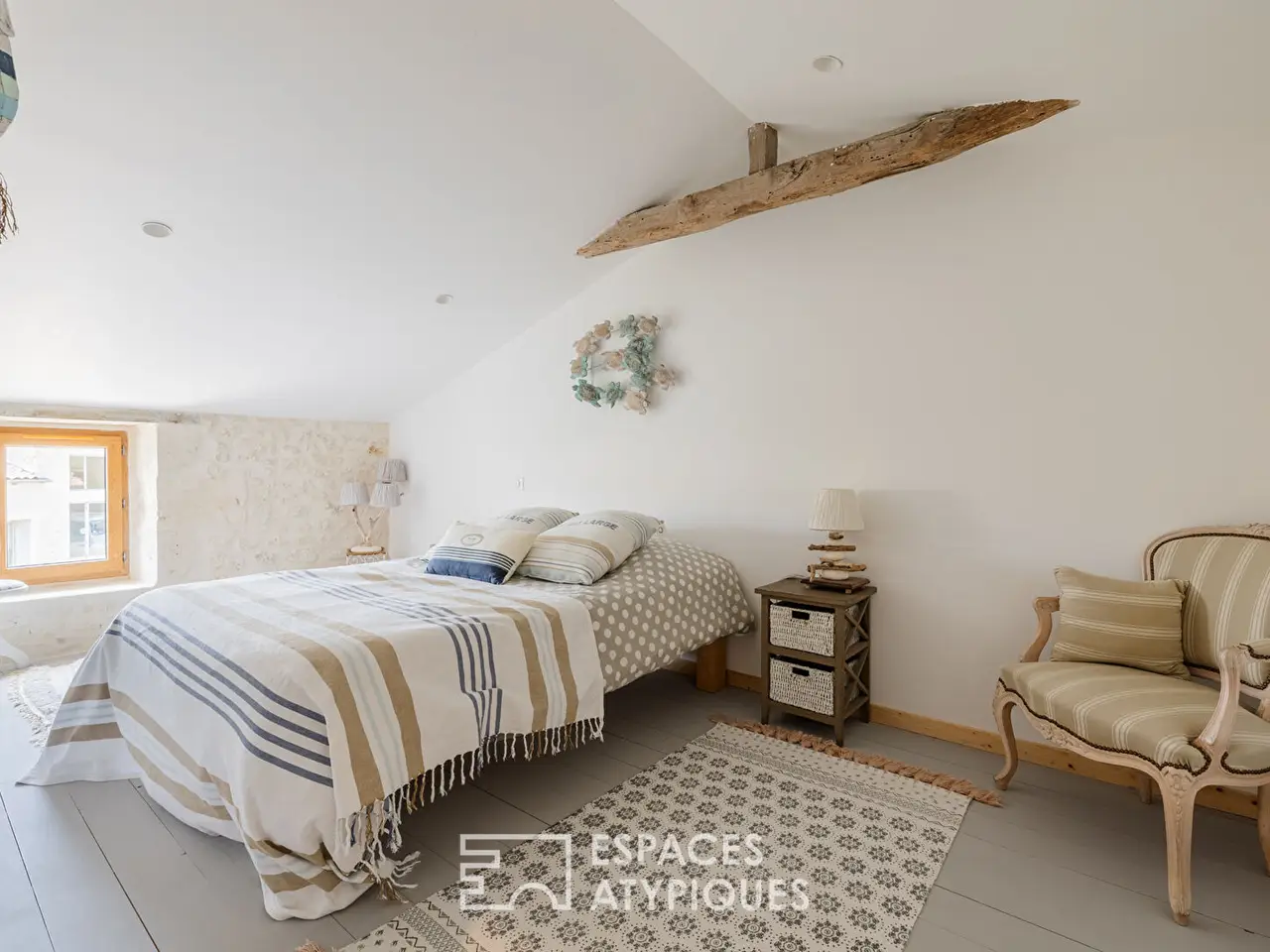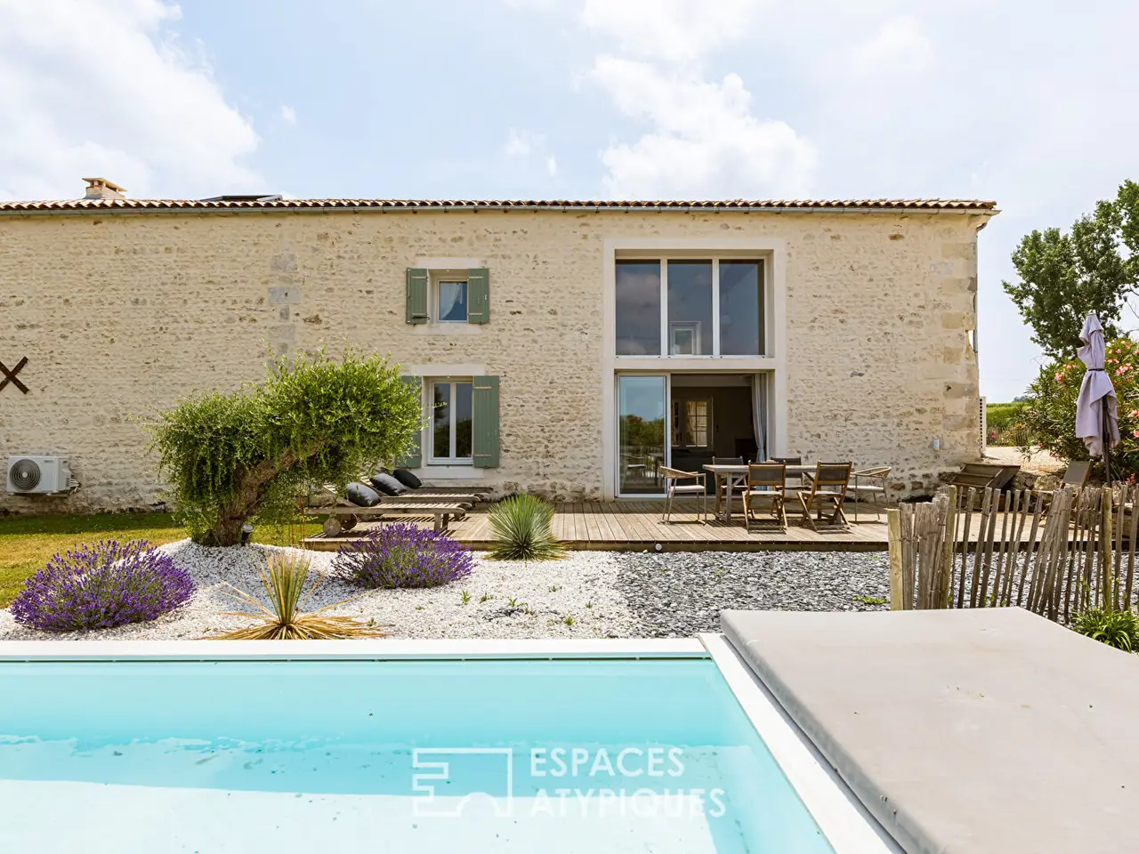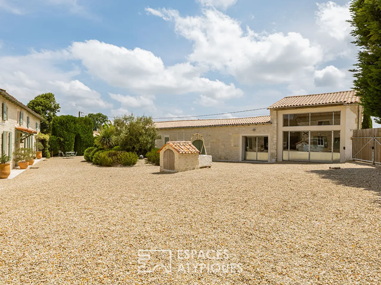 Located a stone's throw from Cozes, a few kilometers from the beaches of the Royan coast, this characterful early 14th-century property offers a unique living environment in an exceptional atmosphere combining calm and tranquility. Benefiting from a renovation made with high-end materials, the property develops a generous living space spread across three distinct spaces on nearly one hectare of landscaped grounds. The main house, the true heart of the estate, seduces with its warm atmosphere and its brightness. The cathedral living room, enhanced by its raw wooden beams, stone walls, and travertine floor, unfolds into a living room where authenticity and contemporary comfort elegantly combine. Three bedrooms complete this main living space, including a single-story suite with a large dressing room and a private bathroom. In addition, there are two other independent entities: a premium gite with four bedrooms, refined decoration and unusual amenities, and a third part converted into a convivial space with a living room, kitchen and an additional bedroom. A large stone wine storehouse offers additional space that remains to be developed according to the projects: reception room, artist's studio, storage space or garage. Outside, the swimming pool blends perfectly into a carefully maintained landscaped environment. It is surrounded by a bar area and rest areas conducive to relaxation near the petanque court. The garden, tastefully planted with trees, also includes a vegetable garden, Mediterranean species and a large parking lot that can accommodate several vehicles and allows independent access to the different occupants of the living quarters. Calm and serenity reign supreme, while remaining in close proximity to the amenities, schools and shops of the village of Cozes. This property harmoniously combines the character of the old, the functionality of the spaces and the quality of the services. Atypical and flexible, it offers strong rental income potential while ensuring a high quality of life. A rare and functional property, ideal for a large family or a luxury tourist accommodation project with no work required. ENERGY CLASS: B / CLIMATE CLASS: A. Estimated average annual energy expenditure for standard use, based on average energy prices for 2021: between EUR1,230 and EUR1,720. REF. EALR2133 Additional information * 13 rooms * 8 bedrooms * 2 bathrooms * 4 shower rooms * Outdoor space : 9995 SQM * Property tax : 1 229 € Energy Performance Certificate Primary energy consumption b : 109 kWh/m2.year High performance housing