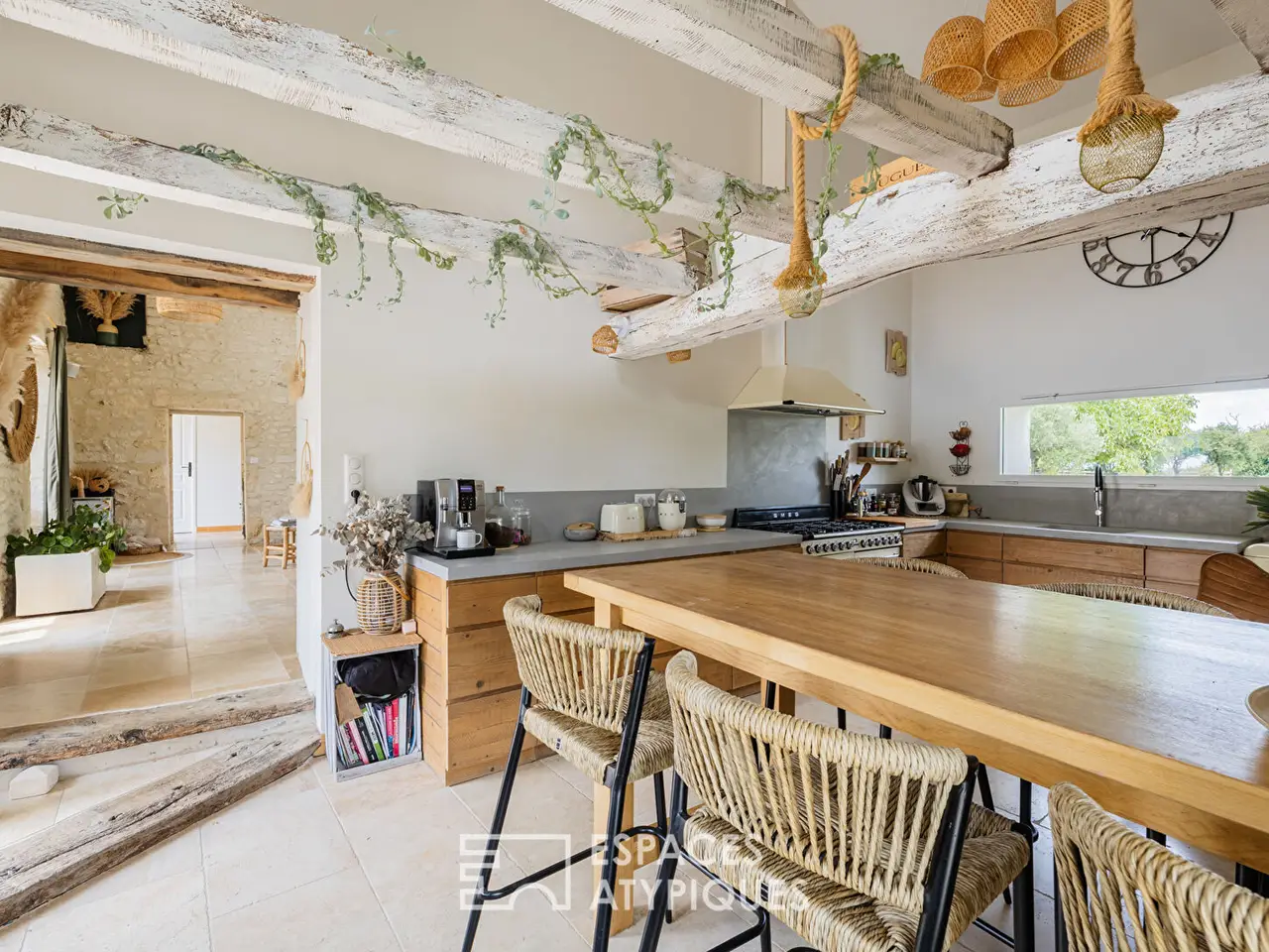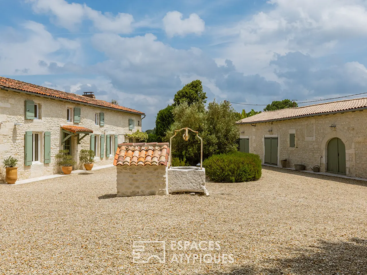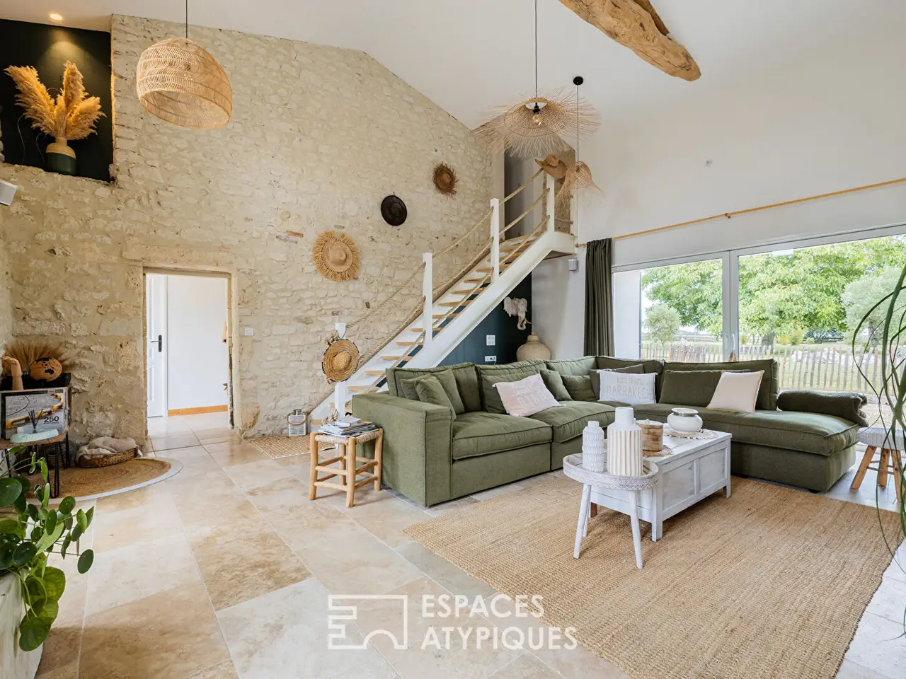 Located a stone's throw from Cozes, a few kilometers from the beaches of the Royan coast, this characterful early 14th-century property offers a unique living environment in an exceptional atmosphere combining calm and tranquility. Benefiting from a renovation made with high-end materials, the property develops a generous living space spread across three distinct spaces on nearly one hectare of landscaped grounds. The main house, the true heart of the estate, seduces with its warm atmosphere and its brightness. The cathedral living room, enhanced by its raw wooden beams, stone walls, and travertine floor, unfolds into a living room where authenticity and contemporary comfort elegantly combine. Three bedrooms complete this main living space, including a single-story suite with a large dressing room and a private bathroom. In addition, there are two other independent entities: a premium gite with four bedrooms, refined decoration and unusual amenities, and a third part converted into a convivial space with a living room, kitchen and an additional bedroom. A large stone wine storehouse offers additional space that remains to be developed according to the projects: reception room, artist's studio, storage space or garage. Outside, the swimming pool blends perfectly into a carefully maintained landscaped environment. It is surrounded by a bar area and rest areas conducive to relaxation near the petanque court. The garden, tastefully planted with trees, also includes a vegetable garden, Mediterranean species and a large parking lot that can accommodate several vehicles and allows independent access to the different occupants of the living quarters. Calm and serenity reign supreme, while remaining in close proximity to the amenities, schools and shops of the village of Cozes. This property harmoniously combines the character of the old, the functionality of the spaces and the quality of the services. Atypical and flexible, it offers strong rental income potential while ensuring a high quality of life. A rare and functional property, ideal for a large family or a luxury tourist accommodation project with no work required. ENERGY CLASS: B / CLIMATE CLASS: A. Estimated average annual energy expenditure for standard use, based on average energy prices for 2021: between EUR1,230 and EUR1,720. REF. EALR2133 Additional information * 13 rooms * 8 bedrooms * 2 bathrooms * 4 shower rooms * Outdoor space : 9995 SQM * Property tax : 1 229 € Energy Performance Certificate Primary energy consumption b : 109 kWh/m2.year High performance housing