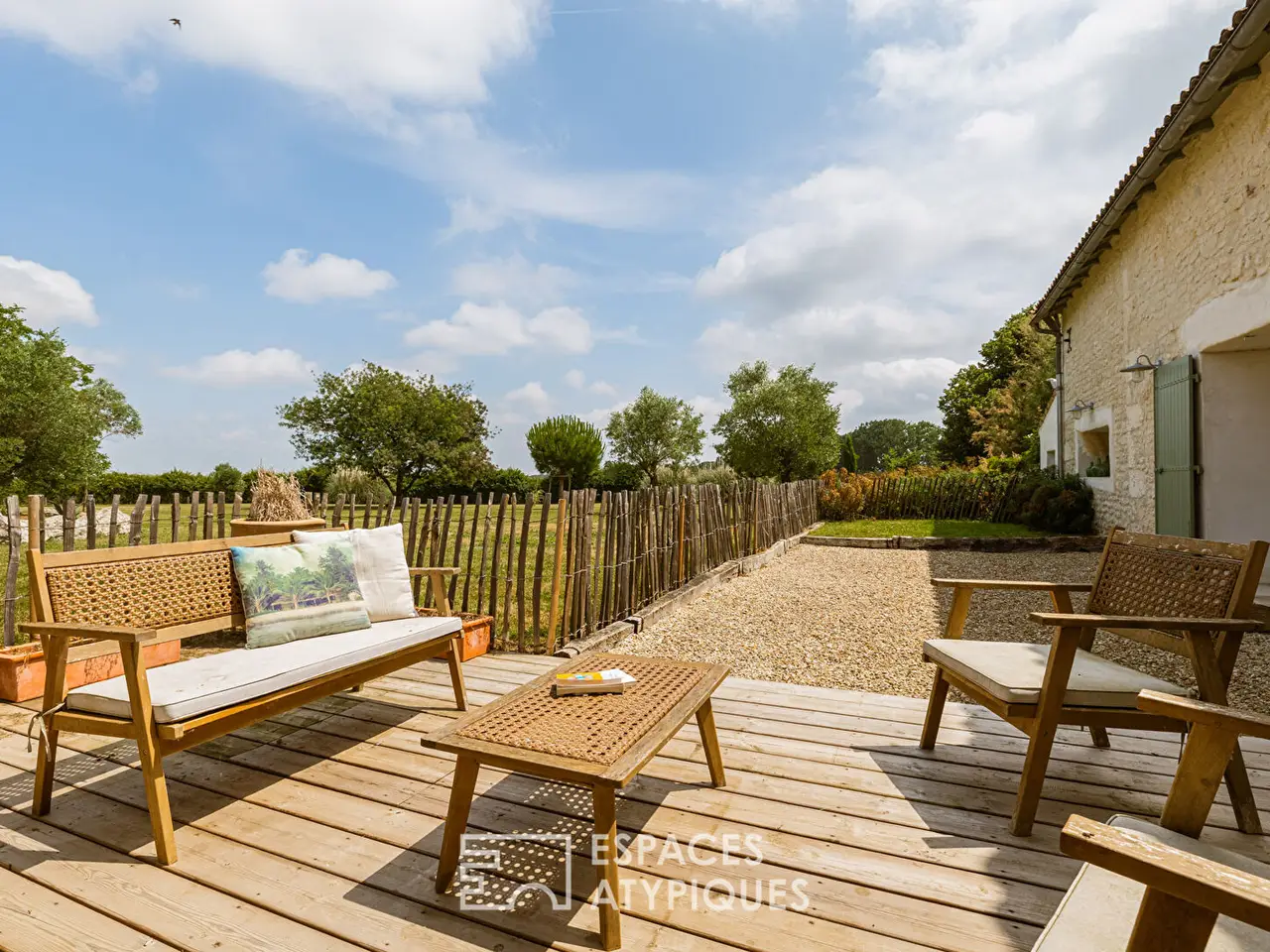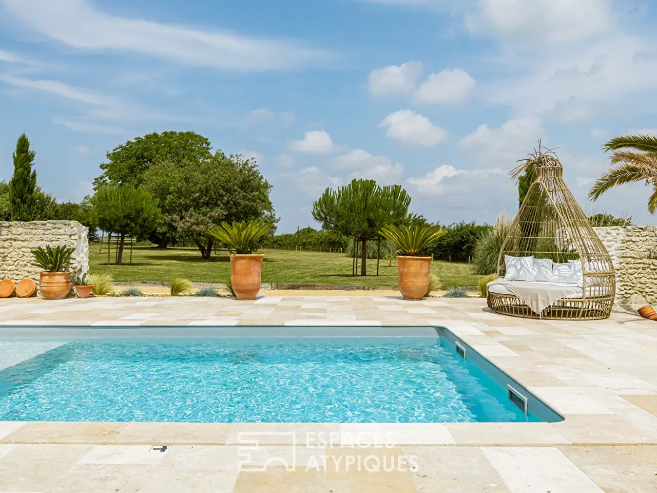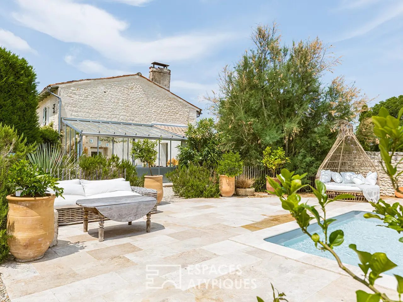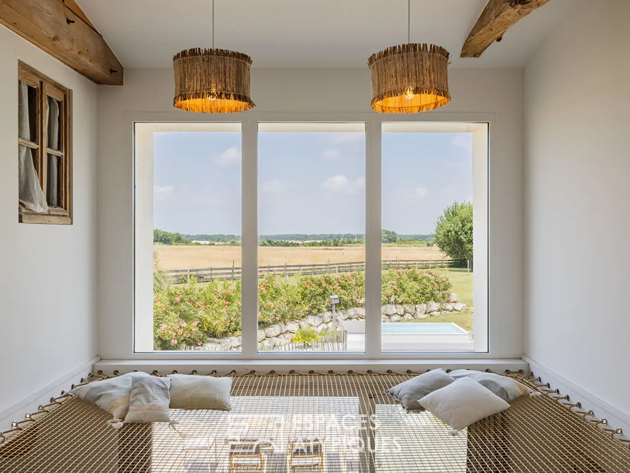 Located a stone's throw from Cozes, a few kilometers from the beaches of the Royan coast, this characterful early 14th-century property offers a unique living environment in an exceptional atmosphere combining calm and tranquility. Benefiting from a renovation made with high-end materials, the property develops a generous living space spread across three distinct spaces on nearly one hectare of landscaped grounds. The main house, the true heart of the estate, seduces with its warm atmosphere and its brightness. The cathedral living room, enhanced by its raw wooden beams, stone walls, and travertine floor, unfolds into a living room where authenticity and contemporary comfort elegantly combine. Three bedrooms complete this main living space, including a single-story suite with a large dressing room and a private bathroom. In addition, there are two other independent entities: a premium gite with four bedrooms, refined decoration and unusual amenities, and a third part converted into a convivial space with a living room, kitchen and an additional bedroom. A large stone wine storehouse offers additional space that remains to be developed according to the projects: reception room, artist's studio, storage space or garage. Outside, the swimming pool blends perfectly into a carefully maintained landscaped environment. It is surrounded by a bar area and rest areas conducive to relaxation near the petanque court. The garden, tastefully planted with trees, also includes a vegetable garden, Mediterranean species and a large parking lot that can accommodate several vehicles and allows independent access to the different occupants of the living quarters. Calm and serenity reign supreme, while remaining in close proximity to the amenities, schools and shops of the village of Cozes. This property harmoniously combines the character of the old, the functionality of the spaces and the quality of the services. Atypical and flexible, it offers strong rental income potential while ensuring a high quality of life. A rare and functional property, ideal for a large family or a luxury tourist accommodation project with no work required. ENERGY CLASS: B / CLIMATE CLASS: A. Estimated average annual energy expenditure for standard use, based on average energy prices for 2021: between EUR1,230 and EUR1,720. REF. EALR2133 Additional information * 13 rooms * 8 bedrooms * 2 bathrooms * 4 shower rooms * Outdoor space : 9995 SQM * Property tax : 1 229 € Energy Performance Certificate Primary energy consumption b : 109 kWh/m2.year High performance housing