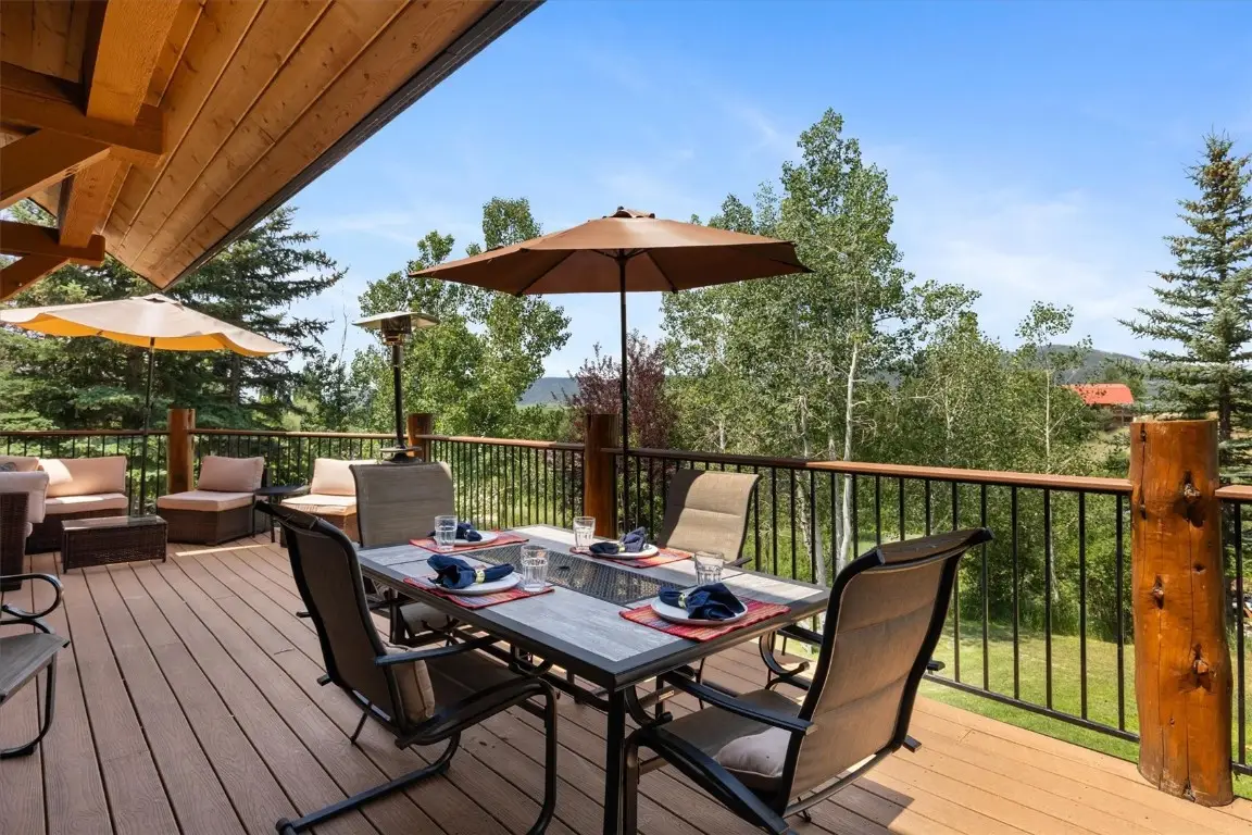 Tucked into one of Steamboat Springs’ most peaceful neighborhoods, this four bedroom plus den, 4.5-bathroom, post-and-beam home offers timeless mountain charm, functionality, and a rare opportunity in the highly sought-after Running Bear subdivision — where homes rarely change hands and lot sizes ensure privacy and space between neighbors. Situated on a .73-acre lot with sweeping views of Emerald Mountain and the South Valley, the home is designed for both everyday living and entertaining - with plenty of room to expand. Vaulted ceilings, hand-peeled log accents, and post-and-beam architecture lend rustic elegance, while natural light floods through large windows, highlighting oak hardwood floors and a stunning stone fireplace. The spacious kitchen offers solid granite counters, custom cabinetry, built-ins, and flows seamlessly into an extended dining area that opens to a newer low-maintenance deck — perfect for soaking in the views. Ideal for guests, long-term tenants, or a live-in caretaker, this property boasts a legal full apartment (ADU) with a private entrance. Perched above the spacious three-car garage, this self-contained suite features an additional separate bedroom, a full bath, a full kitchen, a living area with a fireplace, and a separate entrance. A mudroom/laundry area connects the oversized garage directly to the kitchen — an ideal setup for Steamboat’s active lifestyle and allows quick access to unload groceries. Upstairs, you’ll find a generous primary suite with a 5-piece bath, plus two additional ensuite bedrooms, including one with a bonus flex space, perfect for a playroom, home office, or media room. The lower level features a large, second family room with wet bar, an additional guest bedroom, a full bathroom, space for a home gym or workout space, and walk-out access to a beautifully landscaped yard and stone patio. New carpeting throughout enhances this space.