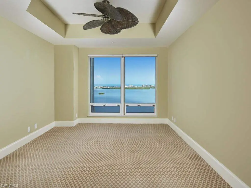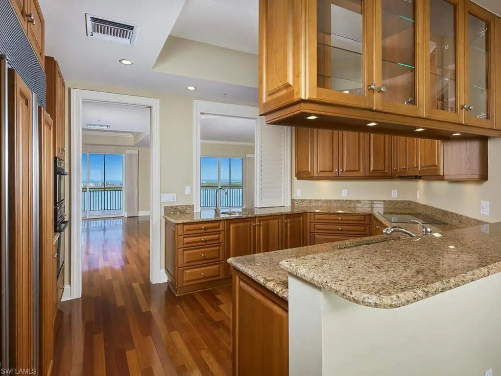This 17th-floor Horizons residence offers panoramic views of the west and east, featuring three bedrooms, a den, and four full baths. It also includes three deeded parking spaces, a rare luxury in high-rise living, each conveniently located near the elevator lobby. Throughout the residence, timeless luxuries are incorporated, such as elegant wood floors, ten-foot ceilings, and a gourmet kitchen with a Sub-Zero refrigerator, all open to the living spaces. Enjoy the recently updated amenities of Horizons, including a club room, fitness room, pool, spa, stunning lobby designs, on-site management offices, and more. Experience all that Bonita Bay has to offer, including access to a private marina, a community beach facility, and the finest club lifestyle available with the Bonita Bay Club's dining, golf, and tennis facilities.