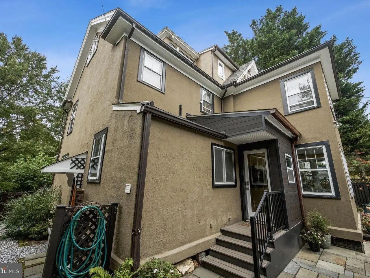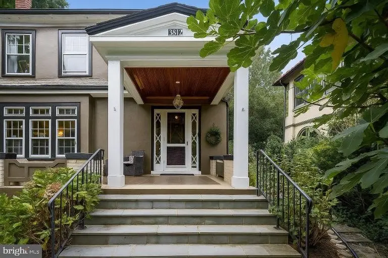 3812 Military Road NW - Grand Stucco Home with Wrap-Around Porch Perched above the street on an elevated lot, this gracious stucco residence pairs classic charm with modern comfort. A stately wrap-around front porch welcomes you to spacious, light-filled rooms with high ceilings and timeless details. On the main level, a renovated chef's kitchen-complete with ample cabinetry, a wet bar and a large island with seating-opens directly to the family room and mudroom for effortless everyday living and entertaining. A generous living room with custom built-ins and a wood-burning fireplace offers the perfect spot to unwind, while a formal dining room and convenient powder room complete the floor. Upstairs features four generous bedrooms and two beautifully renovated full baths. The finished attic level serves as a flexible 5th bedroom/primary suite with its own spa like 3rd full bath and abundant closet space. The lower level adds a recreation room, dedicated laundry, and a 4th full bath-ideal for play, fitness, movie time or visitors. Outdoors, enjoy 2 private patios, plus off-street parking and a garage. With easy access to public transit and moments to neighborhood restaurants and shops, this home delivers both ease and elegance in a prime, walkable location.