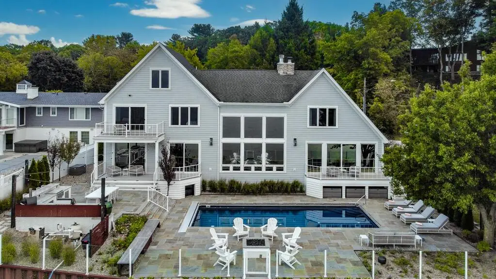 Beautiful 4BR/3.5BA lakefront home in Grand Beach with waterfront pool and new double seawall! This one-owner property has been meticulously maintained and is move-in ready. The open main level features a 2-story great room with floor-to-ceiling windows and a striking stone fireplace. Enjoy incredible lake views from the spacious kitchen with granite counters, stainless appliances, and large island. Step out to the expansive lakefront deck and pool area, ideal for relaxing or entertaining. The large primary suite includes a private balcony overlooking the pool and lake. Located in a golf cart-friendly community with a 9-hole golf course, tennis courts, and playground. Just minutes to downtown New Buffalo and about an hour from Chicago, this is your ideal lakefront escape-perfect as a full-time home or weekend getaway.