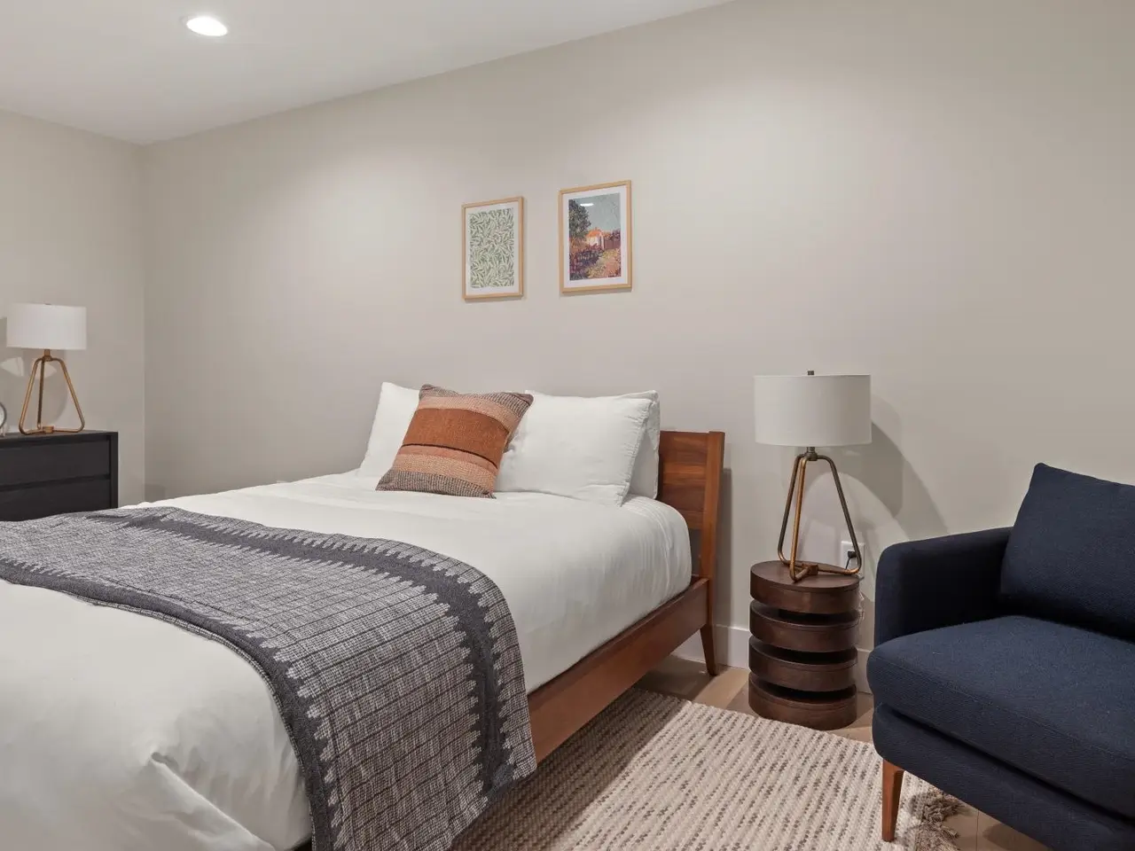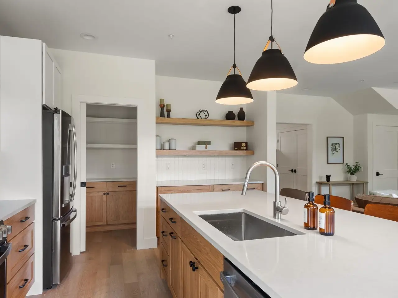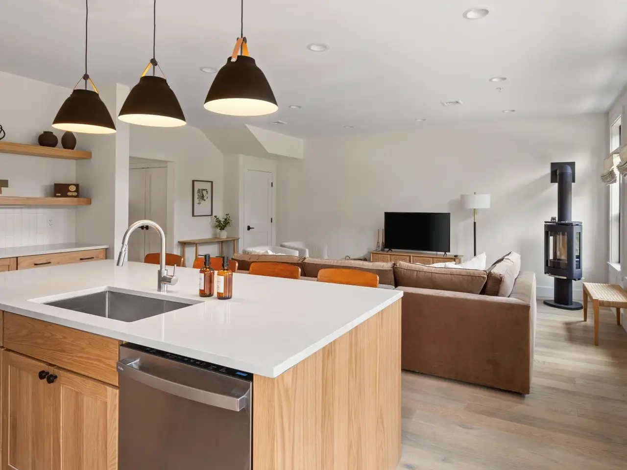 4 Bedrooms 3 ½ baths, 3,390 sq. ft., including a 1-car garage and additional ski sharpening/storage room. Fully furnished for own use or short term rentals. Middle unit looks west over the West Branch and Rec Path to Trapp Hill ridgeline and up the Mountain Road to the slopes at Stowe Mountain Resort. Features include high ceilings throughout, central AC, heat pump with propane back up. The open kitchen-dining creates a great entertaining space with seating for 12. Walk-in pantry. Living room has Jotul gas fireplace. The primary suite features 10’ cathedral ceilings a soaking tub and shower. Lower level features high ceilings, 3/4 bath, 4th bedroom and large family room. Vermont Vernacular design of The Landing, by renown architect Sam Scofield, is in keeping with the original Stowe-A- Way antique farm house dating back to the 1800’s. Stowe Mountain Resort 4.4 miles, Stowe Village 3.2 miles, BOS 3:15, BTV 45 minutes. On Mountain Shuttle bus route for easy access to Stowe Mountain Resort and Stowe Village. The Recreation Path is across the street. The Landing sits on 2.5 acres with over an acre of Common Area for homeowners, their families and guests to use for recreation, picnics, dog walking, snow shoeing and for children to play and build snow-forts. Rental history since December 2024. Appraisal projects a 10% CAP Rate for short term rentals at The Landing. The furnishings pictured may vary slightly. A complete inventory will be provided.