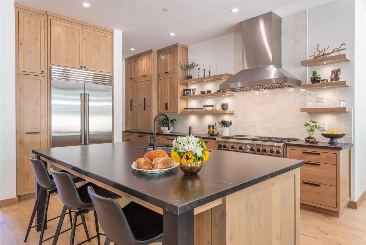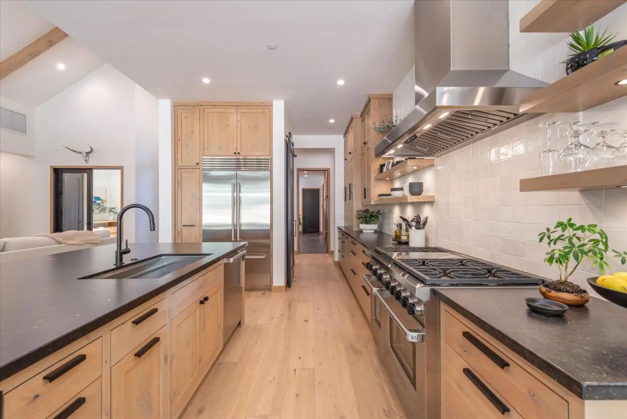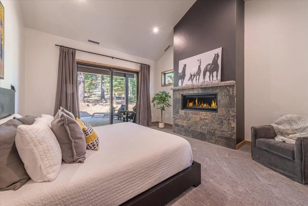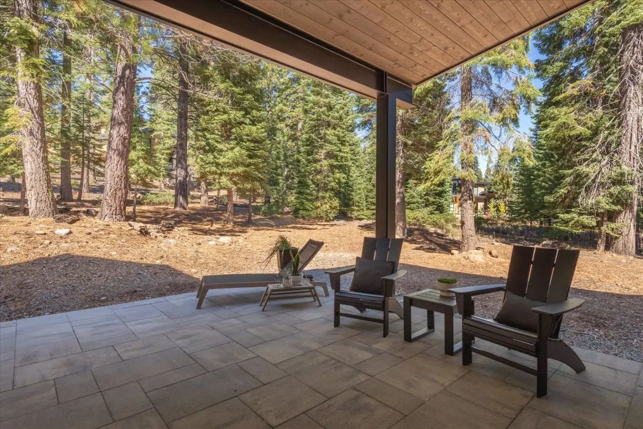 Nestled within the coveted Schaffer's Mill luxury community, 9087 Horned Lark Court blends custom craftsmanship with timeless architectural appeal. This RARE, single-level retreat blends mountain modern design with thoughtful livability, creating an inviting sanctuary amidst a private forest setting. The stunning great room showcases soaring ceilings, exposed beams and floor-to-ceiling windows that frame tranquil wooded views. Anchored by a contemporary gas fireplace, this spacious gathering area exudes warmth and mountain sophistication. The chef's kitchen complements the space beautifully, featuring a farmhouse-inspired design with a large center island, high-end appliances, open shelving, abundant cabinetry, and a walk-in pantry. The adjacent dining area is bathed in natural light - ideal for intimate meals with nature as your backdrop. During the summer months, dine al fresco beneath the expansive covered patio, then gather as alpenglow fades into starlight. An executive office, located off the great room, offers both function and style, highlighted by built-in cabinetry and serene front-yard views - perfect for remote workdays in the mountains. Movie or game nights come alive in the comfortable family room, complete with an adjacent and custom designed wet bar, mudroom and laundry area for everyday ease. Privately situated in its own wing, the primary suite is a peaceful retreat with patio access, a cozy gas fireplace, and a spa-inspired ensuite featuring a soaking tub, spacious shower, dual vanities, custom walk-in closet plus a makeup vanity. On the opposite side, two ensuite guest bedrooms offer comfort and privacy for family and friends. A true rarity, the 1,350+ sq. ft. garage delivers incredible functionality with epoxy flooring, built-in storage, and room for cars, sleds, an RV, boat, skis, bikes, and more - perfect for your Tahoe adventures! With distinctive curb appeal, abundant outdoor living and exceptional design quality, this home captures the essence of luxury mountain living in Truckee's coveted Martis Valley. Experience the vibrant, welcoming spirit of Schaffer's Mill - a place where refined style meets relaxed mountain life. Welcome home!