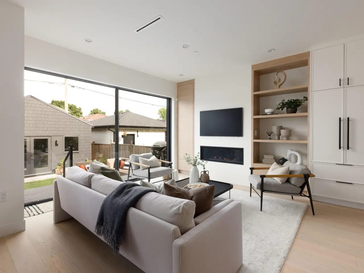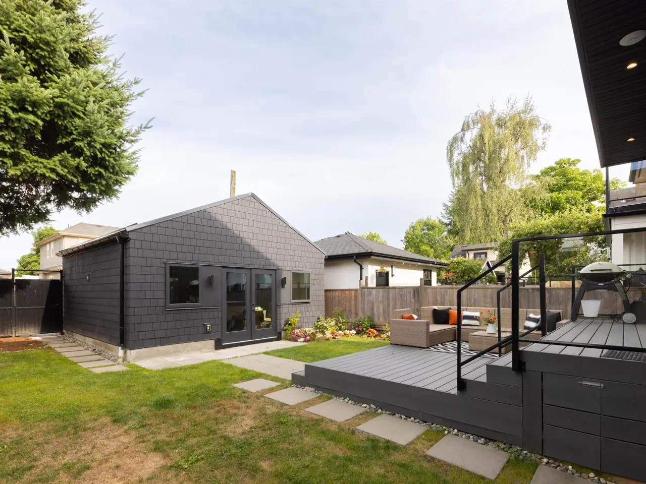 A refined family residence on one of Fraserhood’s most coveted tree-lined streets. Designed by Architrix & Enviable Designs, this modern Scandinavian home balances elegance with intention. Soaring overheight ceilings, walls of glass, and a 9x4 kitchen island anchor the open-concept main floor complete with integrated Fisher & Paykel appliances and tailored storage. Stunning and generously-sized office with custom millwork & large windows. Oversized lift-slide doors open to a lush private yard. Upstairs: 3 vaulted bedrooms, including a dreamy primary with spa ensuite and walk-in. Downstairs offers a rec room + wet bar and a flexible legal 2-bed suite. Steps to Grays Park. In McBride & Tupper catchments.