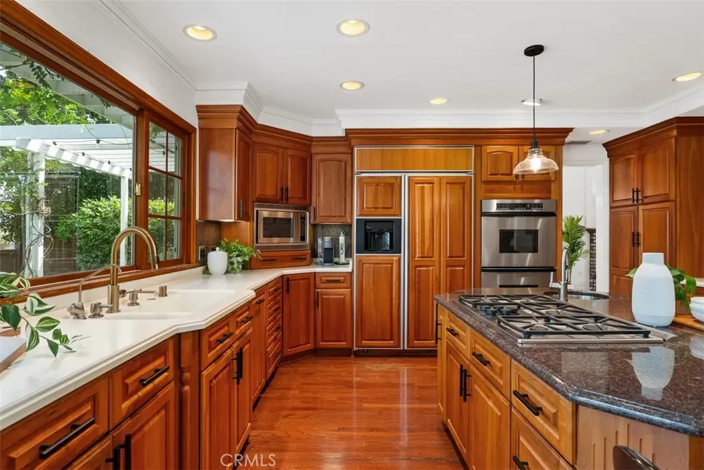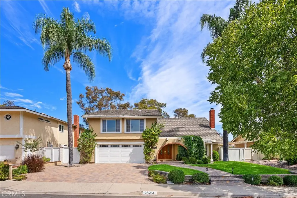 Welcome to this beautifully maintained home in the highly desirable La Paz community of Mission Viejo! From the moment you arrive, you'll be impressed by the paver driveway and charming front courtyard that lead to a dramatic double-door entry. Inside, the spacious foyer, soaring ceilings, and elegant staircase set the tone for this light-filled and thoughtfully designed home. To the right, the formal living room features vaulted ceilings and a cozy fireplace, seamlessly flowing into the dining area with French doors that open to your private entertainer's backyard. The heart of the home is the chef's kitchen, an absolute dream with Omega custom cabinetry, a large island with prep sink, built-in gas cooktop, warming drawer, double ovens, built-in refrigerator, microwave, and dishwasher. A wall of cabinetry, small desk area, and attached breakfast nook/table provide abundant functionality. The kitchen overlooks the serene backyard and opens to the inviting family room with fireplace and additional French doors for indoor-outdoor living. Downstairs also includes a powder room and an incredible bonus storage room with more cabinet space and a large wine refrigerator, perfect for your bulk Costco storage. Upstairs, the expansive primary suite offers sweeping views of trees and mountains. The luxurious ensuite bath features a soaking tub, walk-in shower, private water closet, dual sink vanity, and a massive walk-in closet. Also upstairs, you'll find a beautifully designed laundry room with sink and ample cabinetry, making laundry tasks both convenient and organized. Three additional upstairs bedrooms include a Jack & Jill bedroom setup with a shared bathroom featuring a tub/shower combo and dual sink vanity, and a fourth bedroom with its own private ensuite bath with walk-in shower. Step outside to a peaceful backyard retreat with lush lawn, spacious patio with multiple seating areas, and beautiful views--ideal for entertaining or unwinding. Just a short walk to award-winning elementary, middle, and high schools, Montanoso Rec Center, Oso Creek Trail, Mission Viejo Library, Saddleback Lanes, Mission Viejo Farmer's Market, Trader Joe's, Yoga, Pilates, endless shopping, dining, and more! Enjoy the OPTION to join Lake Mission Viejo with boating, swimming, fishing, concerts & events. This impeccably maintained home offers the perfect blend of comfort, convenience, and California lifestyle. Welcome Home!