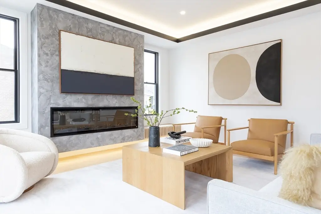 LAST UNIT LEFT! This new construction townhome over 4K square feet of thoughtfully designed space. Living like a single family home with windows on all 4 walls, it features a 1-car private garage and an oversized exclusive backyard. The open concept main level showcases stunning features including a chef's kitchen with high-end appliances, gorgeous cabinetry, a sophisticated Venetian plaster linear fireplace, and a generous mudroom. A flexible en-suite bedroom/office completes the first floor. The second level houses three en-suite bedrooms, including a primary retreat with its large walk-in closet and a gorgeous spa-inspired bathroom with soaking tub. A convenient laundry room with cabinetry, sink, and folding station. The fully finished third floor provides bonus space with endless possibilities, while the lower level offers endless possibilities plus a private bedroom with full bathroom ideal for guests. Located steps from Newtonville Village Center.