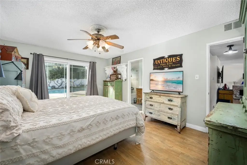 Downstairs primary bedroom with remodeled bath