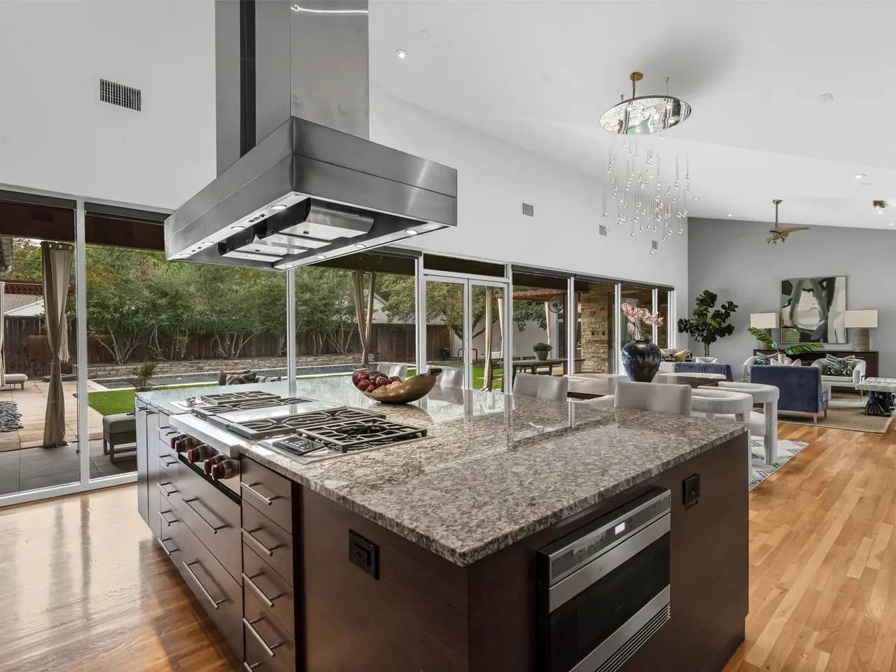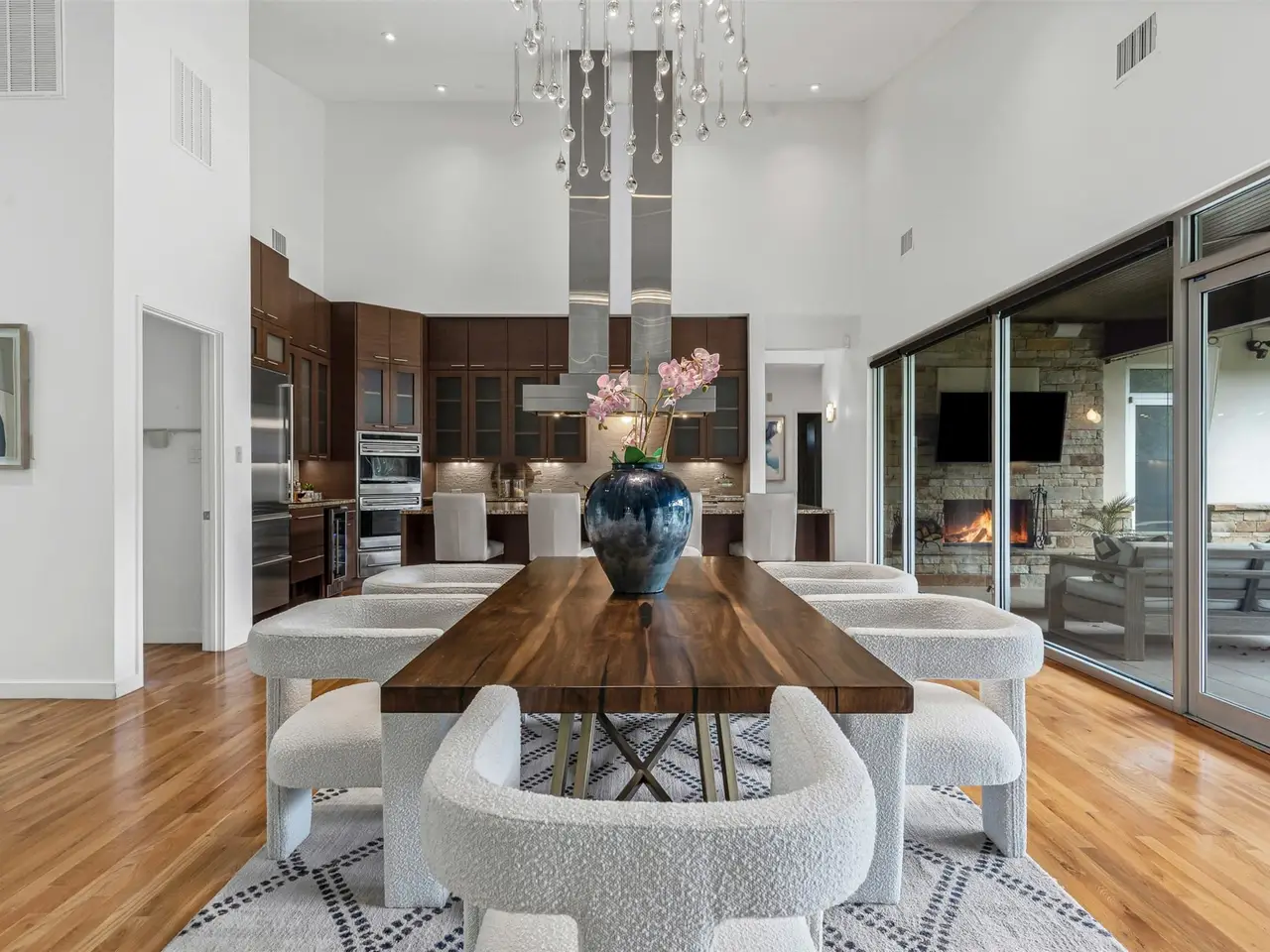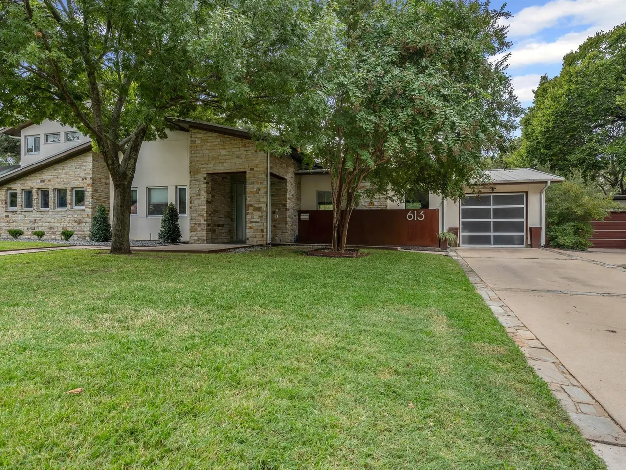 A must see. This beautiful contemporary home is just off the Trinity Trails in Crestwood! Exceptional custom built for todays lifestyle; this home has it all. Quality, great floor plan, perfect prestigious location and designed to impress. A wow entry leads into a great open living area, with soaring ceilings and a wall of glass showcasing the lovely backyard oasis. Chefs dream kitchen with commercial grade Wolfe appliances, built in fridge, indoor grill, pasta burner and more. An exposed 250 bottle wine closet has conditioned air and creates a beautiful wall of color. The generous primary ensuite has private access to the pool, tall ceilings, customized walk-in closet and a cedar closet. This beautiful primary bath has been reworked to include double shower with steam and top-of-the-line Calacatta marble. There are separate vanities, a soaking tub, great natural light with pool view. Two additional ensuite bedrooms plus a great flex room for second living space complete the first level. Bedrooms 4 and 5 are on the second level, with an additional jack and jill bath and an open study area with built-in cabinets and desks. Great personal space throughout this home. Designed for true outdoor living, the resort style backyard boasts a covered patio with fireplace, separate outdoor kitchen area, private lounging cabana just off the gorgeous pool and spa; bordered by artificial turf. The wood floors on level one are timeless. There are electric shades, exterior doors are commercial grade and style, tankless water heaters, smart home features, standing seam metal roof and foam encapsulation for efficiency. There is an additional 2 car garage and extended driveway for additional parking. All 3 garage floors are epoxy finished.