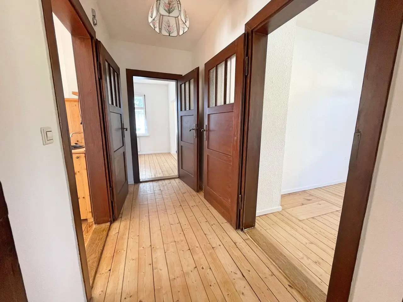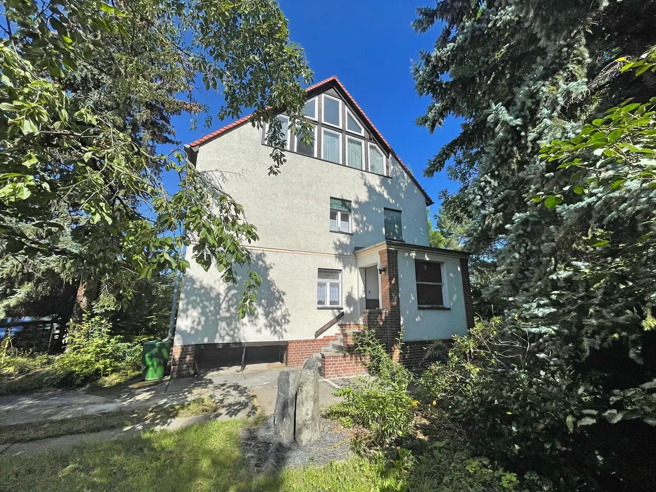 The spacious villa, in the immediate vicinity of Lake Cospuden, with a living space of approx. 208 m² is located on a plot of around 1010 m² and was built in 1935. The house has a total of eight rooms, including four bedrooms and three bathrooms. The property was renovated in 1992 and equipped with central heating. However, renovation to today's standards is necessary. Particularly impressive is the converted attic with a cozy fireplace, which offers additional living space. The wooden floorboards have been refurbished and exude a rustic charm. The villa also has a garage and an outbuilding that houses a solidly built farmhouse parlor or workshop. The property is surrounded by venerable trees, which create a pleasant atmosphere and offer privacy. The location of the property is quiet but still very well connected to the infrastructure. In the area there are shops, schools, daycare centers, doctors, public transport and of course Lake Cospuden. This villa, which is in need of renovation, offers a family or couple plenty of space and potential to create an individual home according to their own wishes and ideas. The versatile room layout and the idyllic location make this property an attractive option for buyers looking for a charming house with history. We are happy to provide you with further information or to arrange a viewing. You too can benefit from this fantastic location! In the established "Zöbigker" residential area with plenty of peace and quiet and just a few minutes' walk from the lake, this residential area is one of the most sought-after in Markkleeberg. Markkleeberg is located in the middle of a picturesque lake landscape. The city borders directly on Lake Cospuden and Lake Markkleeberg, which offers excellent opportunities for water sports and leisure activities. Nature lovers appreciate the green parks such as Agra Park and Kees' Park with its English gardens. The region offers a wide range of leisure activities such as water sports on Lake Markkleeberg with Europe's most modern whitewater facility in the canoe park, hiking and cycling in the area, a 9-hole golf course on Lake Cospuden and cultural institutions such as museums and theaters. The district town of Markkleeberg in the south of Leipzig, with its 25,000 inhabitants, is impressive with its castles, estates and villages, villas and Wilhelminian-era quarters, churches from different styles - embedded in the green of the parks, forests and meadows. In addition, you have excellent transport links. There are long-distance connections in all directions via the A 38. The city center of Leipzig can be reached in around 15 minutes by car (8 km) via the B2. A perfect place to live for young and old!