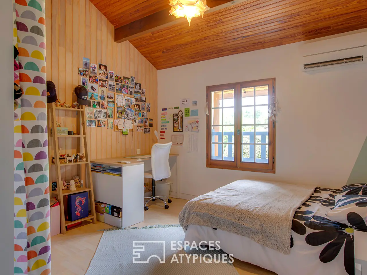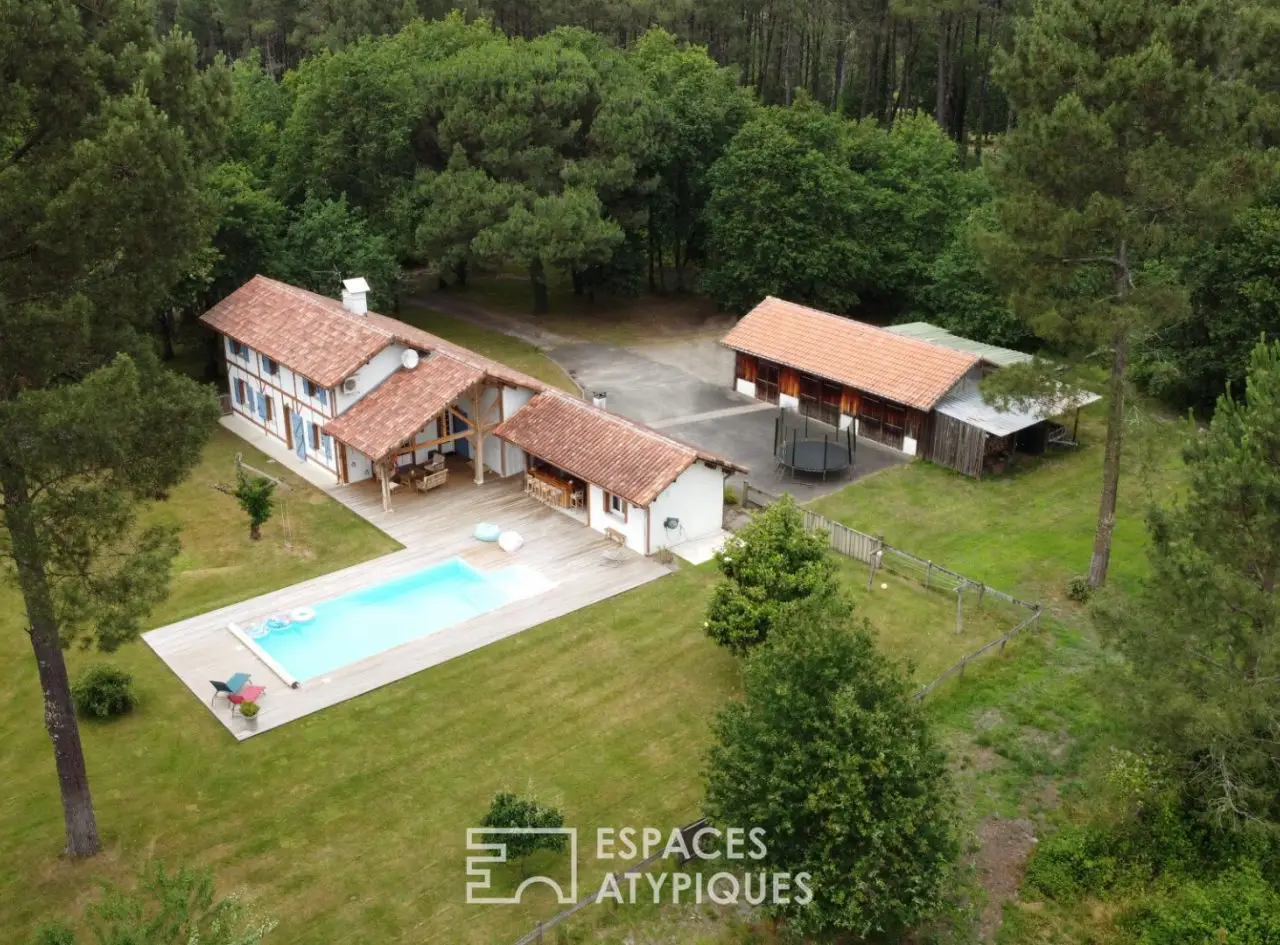Nestled in a green setting, sheltered from view, this property located in Castets offers a peaceful and confidential living environment, combining nature and comfort. The complex consists of a main house and a separate gite, set on a wooded plot of over 4,700 sqm with a swimming pool and large garage. Upon entering, the generous volumes and exposed timbers create a warm and authentic atmosphere. The light-filled living room opens onto a vast terrace with unobstructed views of the garden. The open-plan kitchen, dining area, and six bedrooms spread between the two dwellings offer ideal flexibility for welcoming family and friends, or developing a seasonal rental business. The fully equipped gite benefits from independent access and excellent privacy, while the exteriors are designed for relaxation: a sunny swimming pool, shaded terrace, landscaped areas, and more. A living space in harmony with nature, ideal for convivial moments. This rare property seduces with its layout, its preserved environment, and its diverse potential. A unique address, ideal for those seeking an art of living combining authenticity and comfort, in a privileged setting in the Landes. ENERGY CLASS: C / CLIMATE CLASS: A Estimated average amount of annual energy expenditure for standard use, established from 2015 energy prices: 839 euros/year. Contact: Stephan DE VALK at 06 33 03 98 65 RSAC: 533 152 955 Dax REF. 11481EALD Additional information * 9 rooms * 6 bedrooms * 2 shower rooms * Outdoor space : 4759 SQM * Property tax : 1 832 € Energy Performance Certificate Primary energy consumption c : 101 kWh/m2.year High performance housing