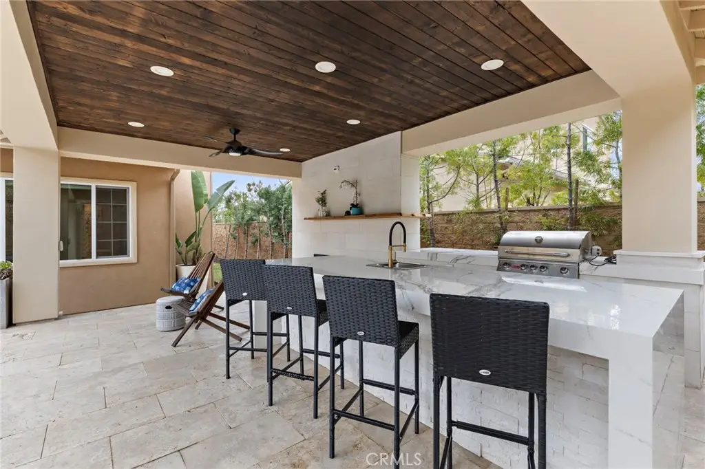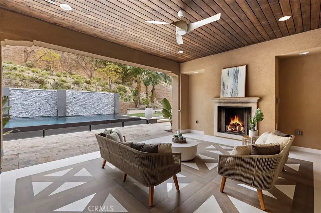 Nestled within an exclusive gated enclave of just 15 estates built in 2018 by Brandywine Homes--renowned for quality craftsmanship, lavish design & energy efficiency--this 4,676 SF Craftsman-style pool home has been exquisitely upgraded with meticulous attention to detail. Designed for the discerning buyer, the open-concept floorplan boasts soaring ceilings & expansive windows that bathe the interior in natural light, accentuating its exceptional finishes. The home features a butler's pantry, walk-in pantry, wine wet bar, upstairs laundry room & an epoxy-finished 4-car garage. A seamless blend of indoor-outdoor living is achieved with a California Room featuring a fireplace and a breathtaking $300K resort-style backyard oasis, complete with an infinity pool, spa, travertine decking, outdoor shower, cabana with built-in BBQ, granite gathering island & fireplace--perfect for entertaining & serene relaxation. It features 5 spacious bedrooms, each with its own en-suite bath, with 2 bedrooms (including the luxurious primary suite) conveniently located downstairs & 3 additional bedrooms, plus a large bonus room & homework/tech room upstairs, making it ideal for multi-generational living. Architectural upgrades abound, including extensive crown molding, custom wainscoting in the banquet-sized formal dining room, a granite fireplace w/handcrafted built-ins in the sunlit family room, plantation shutters, auto shades, 10' interior doors, closet organizers, & wood-grain porcelain tile flooring throughout lower level, while the primary suite showcases elegant hardwood flooring & wainscoted wall. At the heart of the home, the chef's dream kitchen is adorned w/leather-finished granite countertops, a waterfall island with wrap-around seating, white shaker cabinetry w/brushed nickel hardware, full backsplash & stainless KitchenAid appliances, including 6-burner + griddle gas cooktop, canopy hood, double ovens, microwave & Sub-Zero refrigerator. Situated on a giant 17,523 SF lot, this remarkable residence boasts stunning curb appeal w/custom hardscape, natural stone siding & manicured landscaping. The lavish primary suite boasts an expansive shower, freestanding bathtub, dual sinks & huge walk-in closet. Additional features include: dual zone A/C, dual tankless water heaters, solar, & backup power bank. Located just minutes from the Nixon Library, premier shopping, dining, entertainment, & award-winning schools, this extraordinary home offers an unparalleled lifestyle.