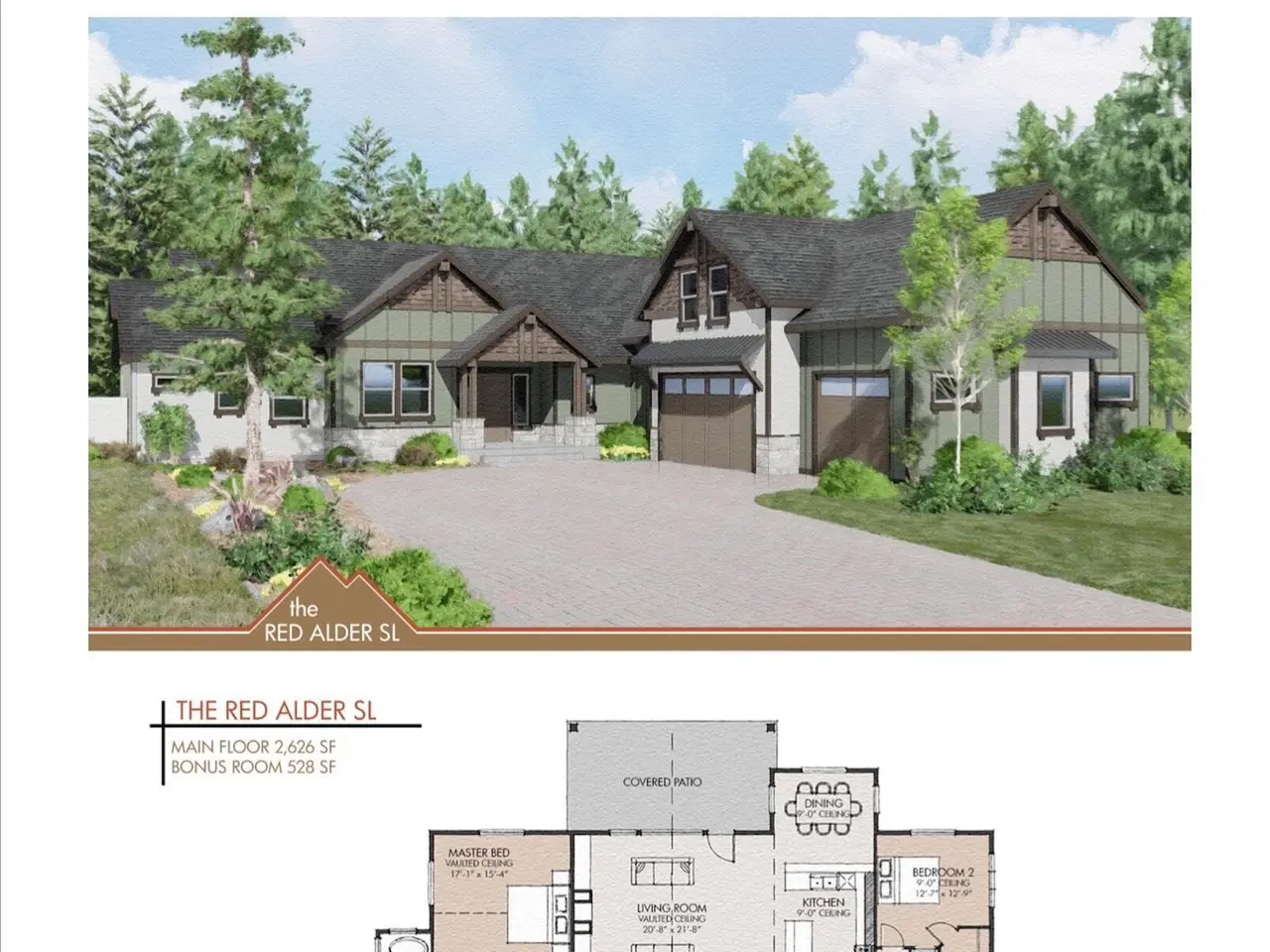 Welcome to Lost Creek! ''The Red Alder'' is a Mountain Modern style home, built by award winning builder 3 Bed + (2) 1/2 Bath 3154 SQ FT luxury home with light & bright interior features main level living w/ bonus room. Special features include: double layer cedar facia, beam and shingle accents, masonry exterior finishes, covered front entry, solid core wood entry door, large kitchen, island, quartz countertops with full tile backsplash, walk-in pantry, professional style stainless steel appliances, Large open dining area, den, floor to ceiling masonry gas fireplace, hardwood floors with tile accents, spacious master w/ mud set tile shower & soaking tub in master bath, solid core doors, large laundry/mud room, covered patio, paved driveway, landscaping, sprinklers and much more! Additional floorplans and lots available with different pricing. Lost Creek Estates is a wooded Northwest style country neighborhood with a rare, untouched beauty. 3.5 miles of Nature trails & over 160 acres of open space offer unparalleled beauty.