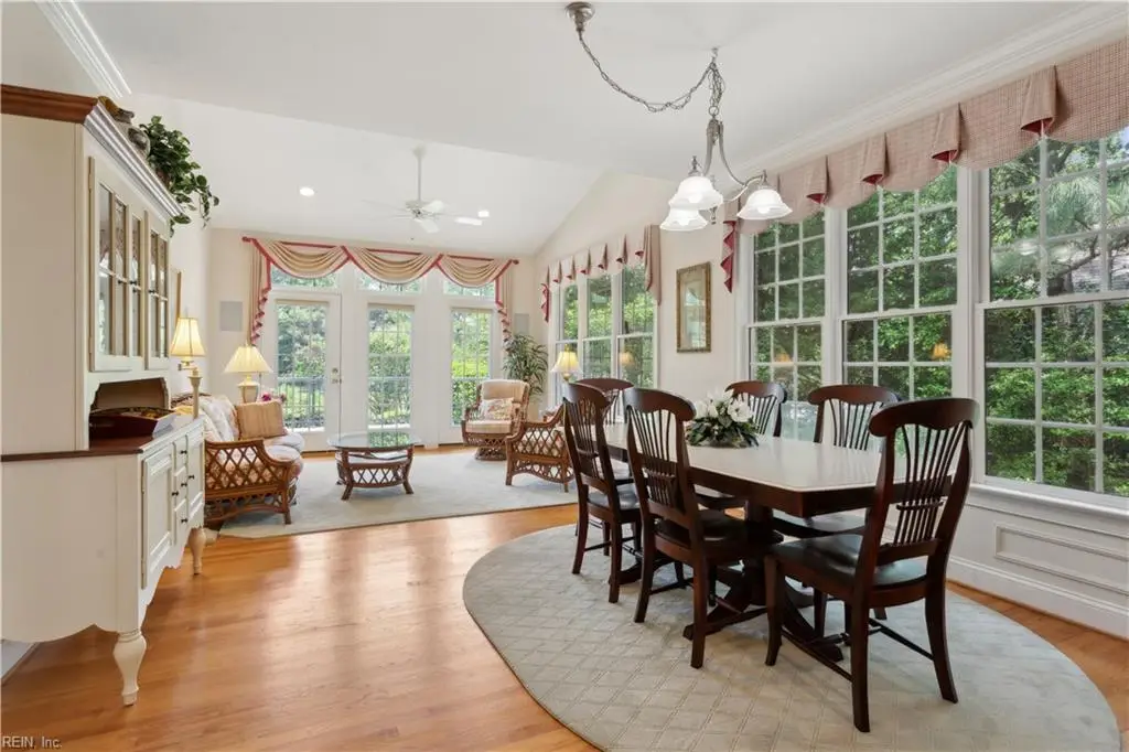 WOW! Exceptional waterfront living in this impeccably maintained all-brick home in Governor's Land. Enjoy serene pond views from nearly every room. The light-filled great room features a soaring cathedral ceiling, fireplace, built-ins, and a wall of windows framing tranquil water vistas. A gracious two-story foyer is flanked by a study with built-ins and a formal dining room with detailed millwork and butler's pantry. The renovated kitchen (2021) offers quartz countertops, tiled backsplash, and a large pantry opening to the breakfast area and sunroom with deck access. The first-floor primary suite offers water views, a beautifully updated en suite bath, and a generous walk-in closet. Upstairs, bedrooms 2 and 3 share a Jack and Jill bath, while bedroom 4 features a private en suite. A spacious bonus room is accessed by a back staircase. Outdoor living is easy with a large deck overlooking the private backyard and pond.