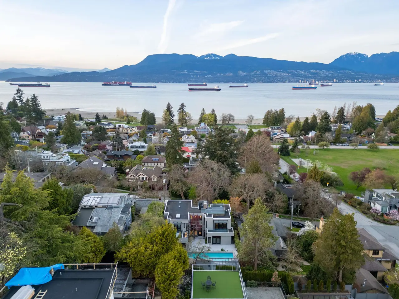 Stunning panoramic ocean and mountain views! Better than new and just steps from the beach in prestigious Point Grey! Sitting on a 66x110 (7260 sf) south-facing lot, this stunning 4509 sf custom home was designed by Allan Diamond Architects and landscaped by William Reed. Fully renovated in 2016 with city permits, it features an open-concept layout, radiant in-floor heating, gourmet kitchens with top-tier appliances, a wine cellar, home theater, and gym. Enjoy the beautifully landscaped backyard with a swimming pool and hot tub. Walking distance to Jericho and Kits beaches, UBC, shops, restaurants, and top schools: Queen Mary Elementary & Lord Byng Secondary.