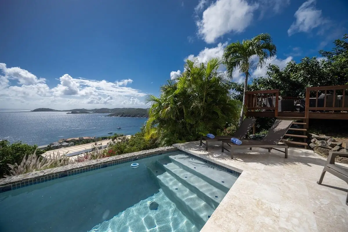 SPECTACULAR VIEW, AMAZING LOCATION! Welcome to your stunning slice of paradise in St. Thomas, where luxury meets island living. Nestled atop a lush hillside, this exquisite 4-bedroom, 3.5-bath residence offers breathtaking panoramic views of the crystal-clear Caribbean Sea. Enjoy dinner and drinks from your covered deck or relax by the pool. This home offers it all. The home also has the option to have one of the bedrooms as a separate apartment/caretaker unit/nanny quarters. Villa Solaris was remodeled in 2020 with gorgeous finishes including a new gourmet kitchen boasting top-of-the-line Thermidor appliances, sleek marble countertops, and custom cabinetry. Conveniently located near the newly opened the Westin Resort, pristine beaches, and the cruise ship dock.