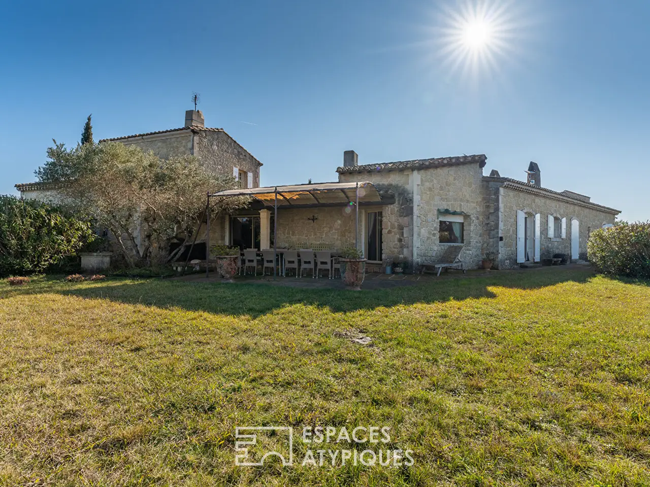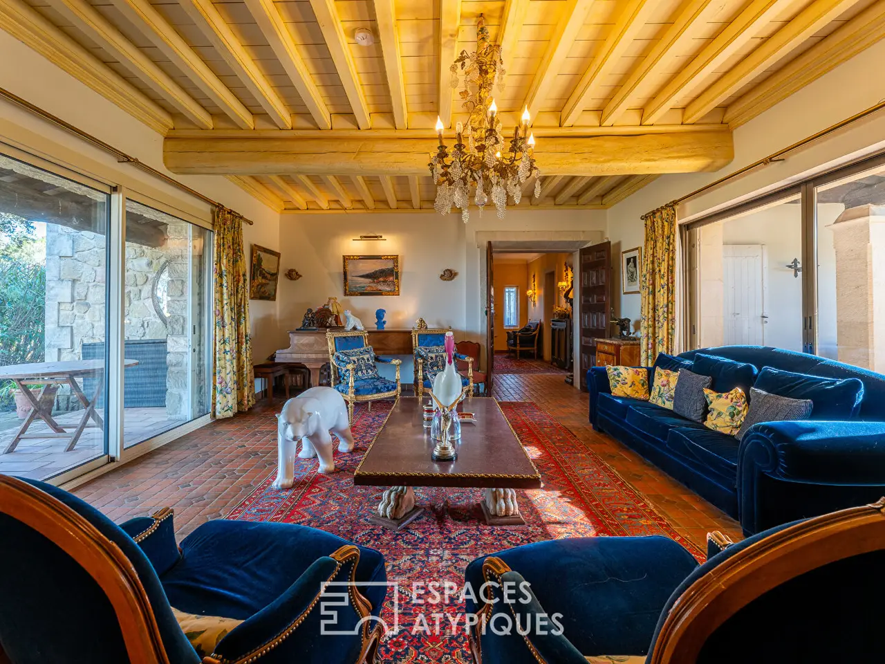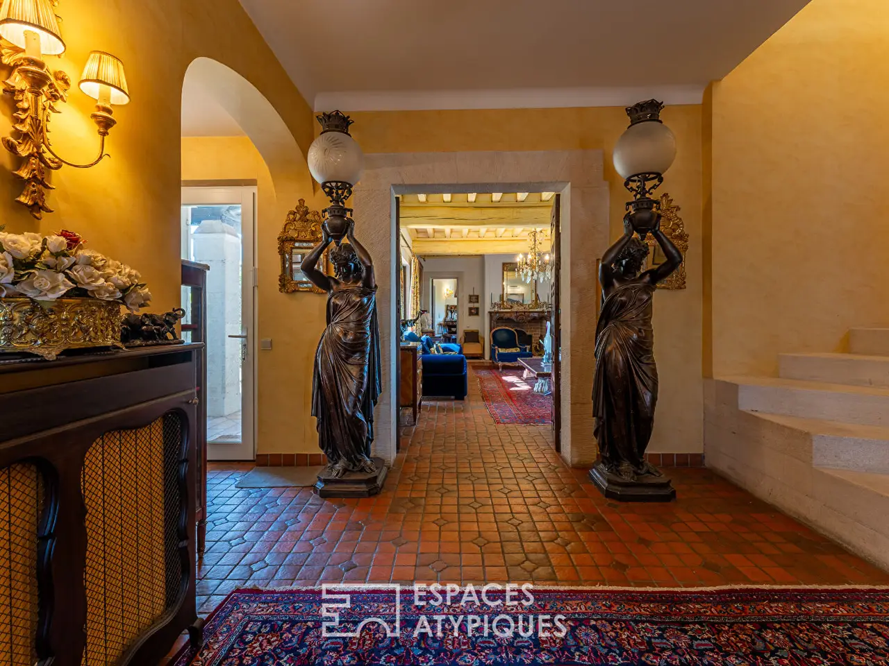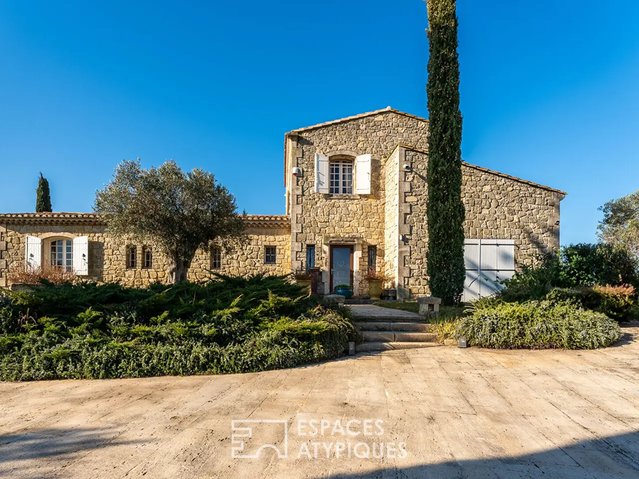 Exceptional property with panoramic views At the gateway to the Alpilles, this exceptional property nestles discreetly on a hill in the heights of Barbegal, just 10 minutes from the historic center of Arles. The complex covers 611 sqm, divided between a 277 sqm main house, a 222 sqm secondary house with a swimming pool, a separate 112 sqm caretaker's apartment, and several garages. The 3.5-hectare park, planted with Mediterranean trees, enjoys a remarkable, dominant position and offers panoramic views of the magnificent natural landscapes. The buildings assert their architectural character with their stone facades and draw their sculptural silhouettes in perfect balance with the environment. The main house offers a fluid organization of spaces around a vast living room with a Louis XV fireplace, which opens onto a dining room whose windows extend the views to the outside like a living painting. On either side, two independent suites ensure comfort and privacy. Upstairs, a third suite offers spectacular views of the surrounding nature. This secondary home is distinguished by its spaciousness and high-end amenities. Upon entering, a living room with marble floors establishes itself as the heart of the house, opening onto the garden and pool. An adjoining functional kitchen provides access to a bright dining room. The master suite, located on the ground floor, captivates with its molded ceilings and its bathroom whose bay windows reinforce the dialogue with the outdoors. Upstairs, a landing leads to an office space, a comfortable suite, and a separate bedroom accessible via a walkway. The landscaped garden features a monumental swimming pool, harmoniously integrated, and complemented by a summer kitchen. Below the property, a caretaker's apartment and several garages complete the amenities of this rare property. Close to shops, transport, and schools. ENERGY CLASS: D / CLIMATE CLASS: D Estimated average annual energy expenditure for standard use, based on 2021 energy prices: between EUR3,460 and EUR4,740. REF. 9542 Additional information * 17 rooms * 8 bedrooms * Outdoor space : 35000 SQM * Property tax : 15 450 € Energy Performance Certificate Primary energy consumption d : 165 kWh/m2.year High performance housing