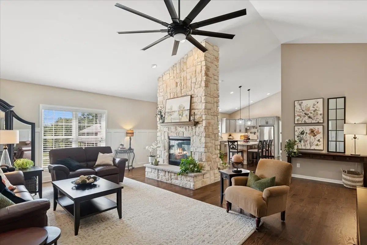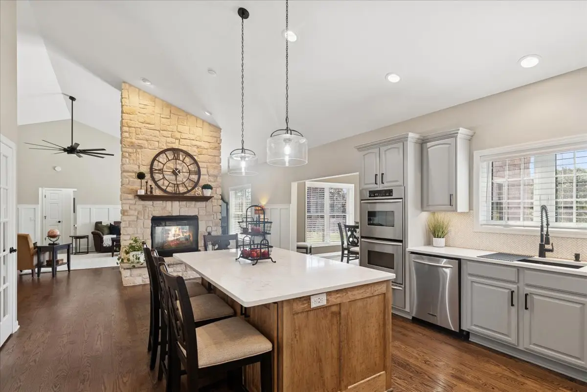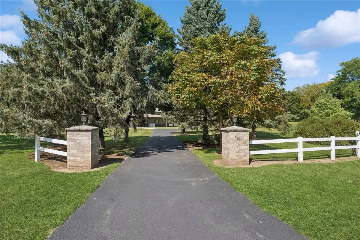 Absolutely stunning custom all brick ranch home with finished walk-out basement on 3.06 lush professionally landscaped grounds with native plantings. Home was completely remodeled in 2021 and initially inhabited 12/2021. An amazing 42x60 heated pole barn with concrete floor, 14' overhead door, mezzanine, and bath. 10 zone irrigation system, new composite deck 2022, new roof 2022, 4 season room, and stamped concrete screened in patio. Enter into the spacious foyer with custom cabinetry and porcelain flooring, professionally refinished chefs kitchen cabinets with custom maple island w/seating and quartz countertops. Shared floor 2 ceiling stone 2 sided gas fireplace between living room and kitchen. Vaulted or 9' ceilings thru out, custom mill work in family room, office, and primary bedroom, all new refinished or new hardwood flooring thru out. Open concept living with an abundance of natural light. Finished walkout basement offers a gaming area with wet bar, family room, exercise area, full bath and 3-4 person sauna, along with 2 additional bedrooms and 4 season sunroom with access to the screen patio. in 2022 a whole house back-up generator was added. A total of 5 bedrooms, 3 1/2 baths and 5744 finished sq ft of living space. 4 brick solar lighted pillars guide you through the 2 entrances and circular driveway. A truly amazing, move in ready home.