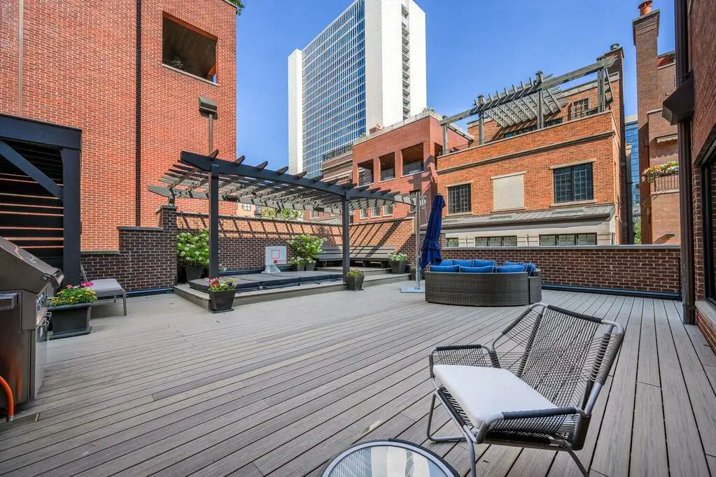 Spanning 68' in coveted Kingsbury Estates, this home is truly one of a kind! Offering over 10,300 square feet, plus an additional 4200 square feet of the absolute best outdoor space, this home offers a suburban lifestyle right in the heart of the city. The entry is a great spot to host parties or events in the lounge & wine room. This entertaining space connects to a secondary living space featuring a professional home gym with a resistance pool. There is also a bedroom, kitchenette/family room, and an entire lower level. Back in the main part of the home, you will love the paneled library, full bath, powder room, and the most gracious foyer which takes you to the second floor, allowing for amazing light and privacy. The extra-large chef's kitchen/great room features a 60" Wolf range plus cooktop, three Wolf ovens, double Miele dishwashers, built-in espresso machine, plus a steam oven. This is all open to fantastic space for informal gathering plus a super sunny breakfast nook, both of which open onto one of the massive terraces. This terrace features multiple spaces for sitting and dining, a large resistance swimming pool, and an outdoor fireplace. The third level of the home is devoted to the primary suite, allowing for a spacious bedroom with a terrace, sensational closet space, dual luxurious baths, and a coffee bar. There is an additional sitting room that could double as an office or perfect nursery space. Bedroom level laundry can also be found, conveniently located off the primary bath. The top level of the home has 2 more ensuite bedrooms, plus an additional lounge or bedroom with a kitchenette and terrace as well as an additional laundry area. An interior staircase leads to the enormous rooftop terrace with a second outdoor fireplace, multiple levels for entertainment, and the best city views. Allowing for even more entertaining space, the lower level has a true theater room. An additional bedroom, bath, sitting/playroom complete the lower level. An elevator to all levels makes for easy living! Perfect for car enthusiasts, this home has an attached garage with parking for six cars! Located within a gated community with parks, fabulous dining, and the riverwalk steps from your front door, this home is true gem and a rare find in the city!