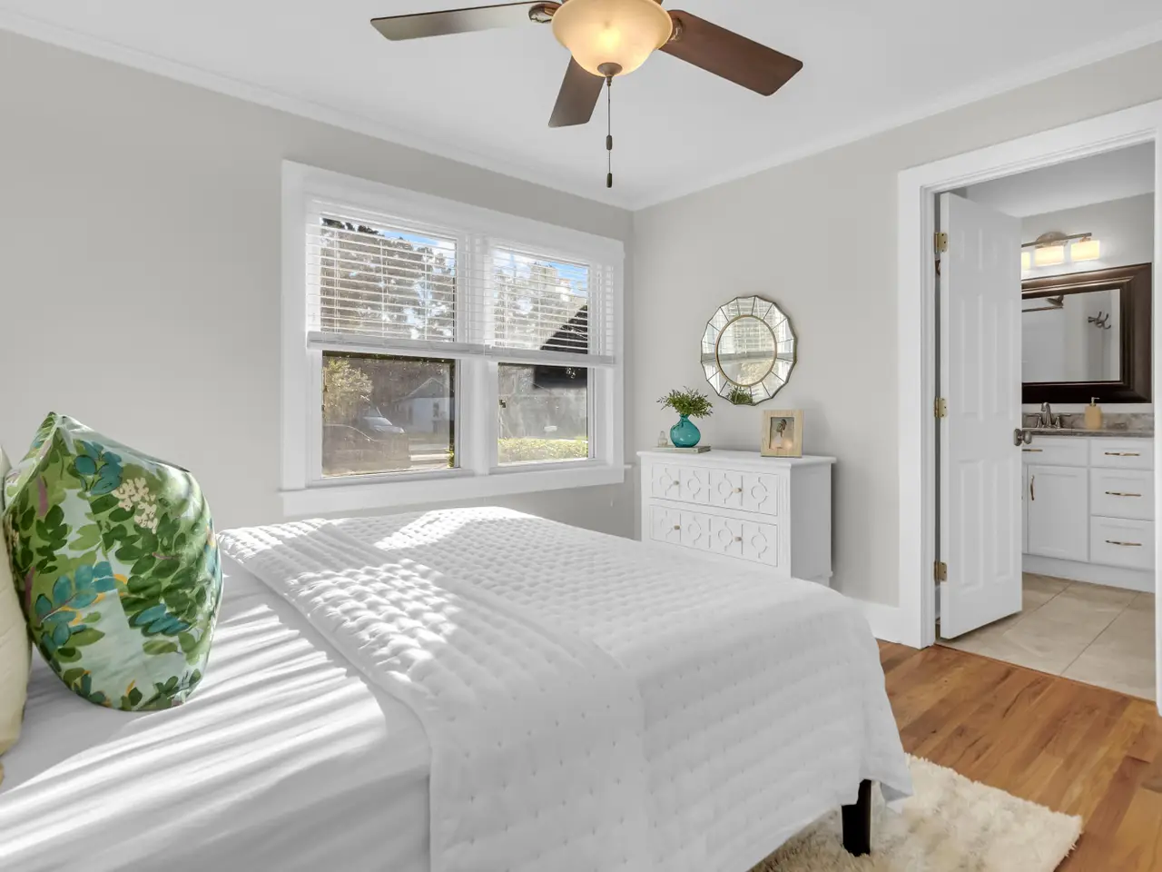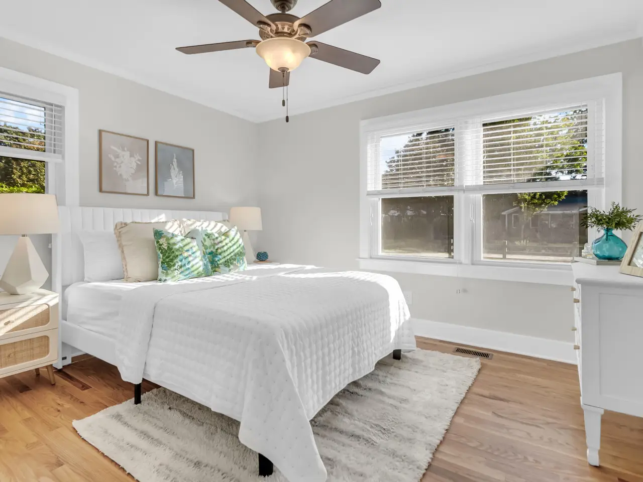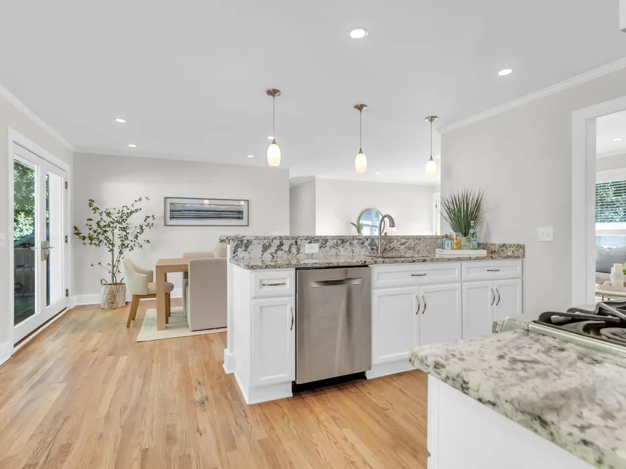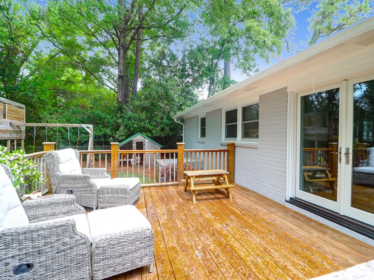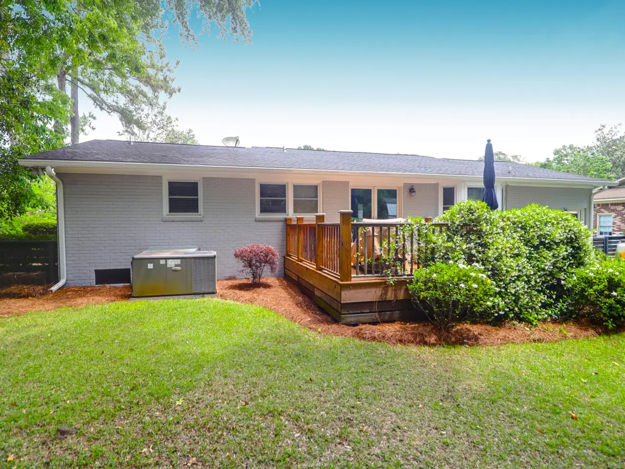 Welcome to this classic Brick Ranch with curb appeal and located in the highly sought-after area of South Mt. Pleasant, SC-just a short drive to Sullivan's Island. This home offers a blend of traditional character with modern touches and an unbeatable location. The welcoming front porch invites you into the home! As you open the front door, you enter the living room/dining room combo with views out to the deck and backyard- perfect for entertaining or enjoying morning coffee! The open-concept kitchen offers functionality and style, connecting directly to a versatile flex space ideal for a home office, playroom, workout area, craft room, or a den. The kitchen has granite countertops, GE Cafe gas range and stainless steel appliances with white cabinets.The primary bedroom has its own full bath and the other 2 bedrooms share the hall bathroom. Features hardwoods in kitchen, living/dining room, hallway & bedrooms. Wonderful shed in the backyard as well as irrigation from well water! Additionally, there is great attic access storage off the laundry room- extra storage many brick ranches do not offer! This home is just a short golf cart or bike ride to the restaurants and shops along Coleman Boulevard. You'll love being near the Pitt Street shops and the scenic Pitt Street Bridge, with the convenience of Charleston International Airport only 15-20 minutes away.