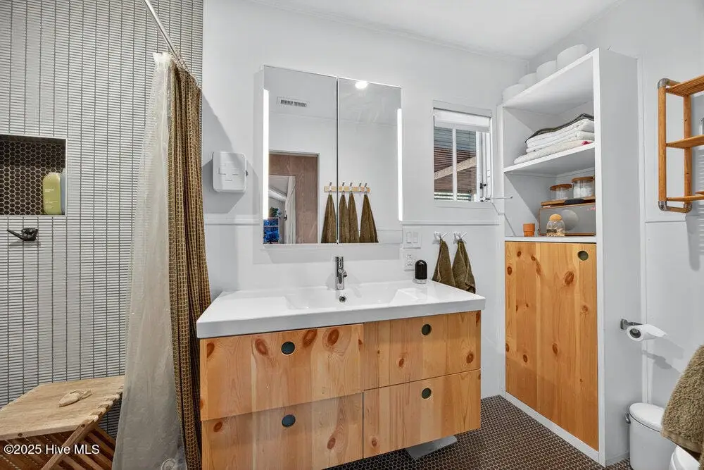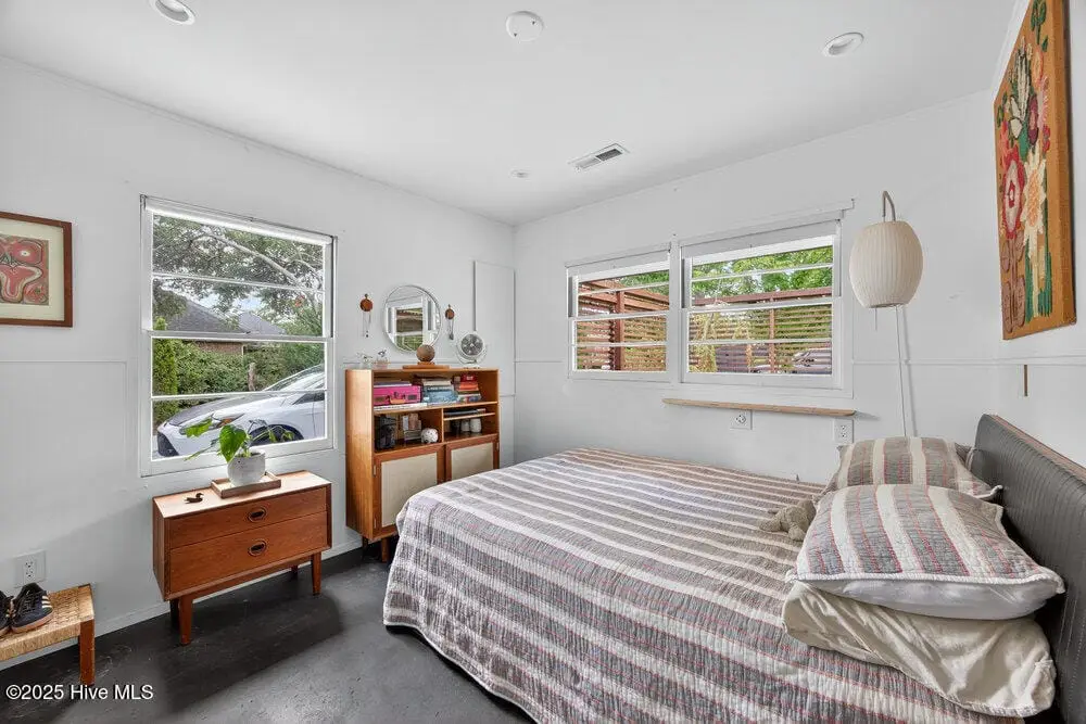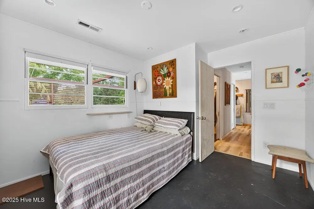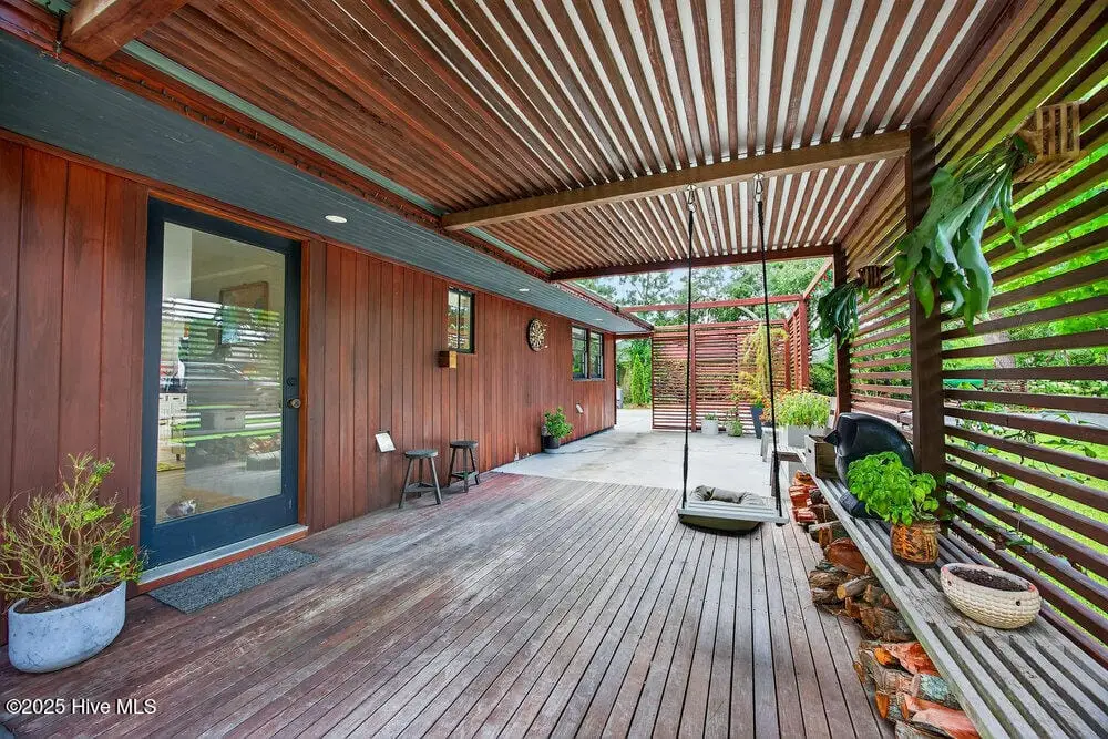 This rare two-acre estate is one of Wilmington's most unique offerings. Located on Hewletts Creek with a high elevation, south-facing peninsula which commands over 700 feet of water frontage. This coastal woodland property is filled with natural beauty: mature trees, abundant wildlife and front row access to fishing and boating. The meticulously restored 1955 mid-century ranch house utilizes organic materials throughout, clad in cypress, blending perfectly into the landscape. Perched well above the flood zone, joining the indoors and out seamlessly, the residence was designed for those who appreciate a true connection to nature. The recently built freeform pool emerges from the rolling terrain, capturing mid-century design at its finest. The site’s perfect solar orientation presents magnificent light throughout the day, awe-inspiring star-gazing in the evenings, creating a nature preserve-like setting with unmatched privacy. A property like this becomes available once in a generation, a true Wilmington icon.