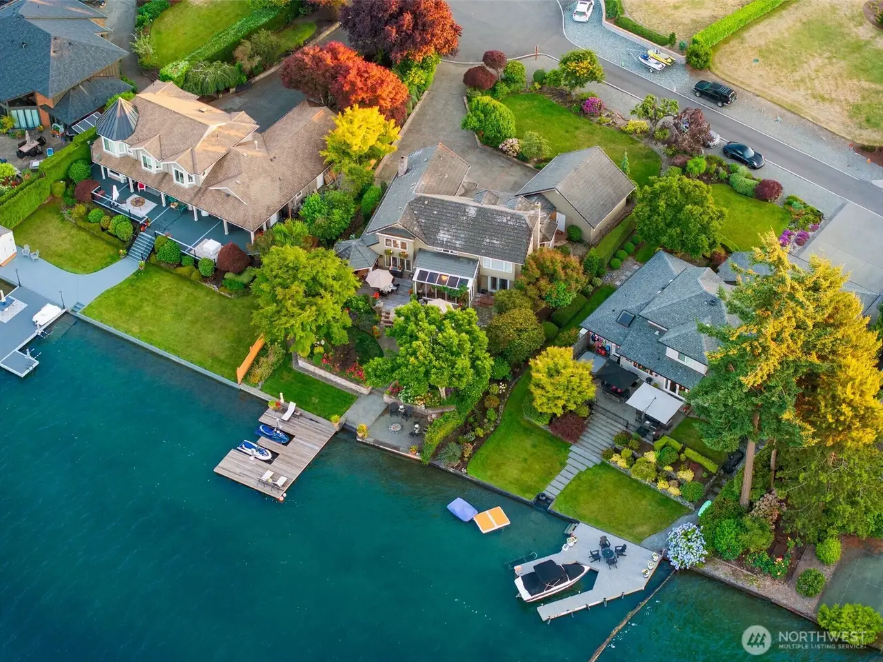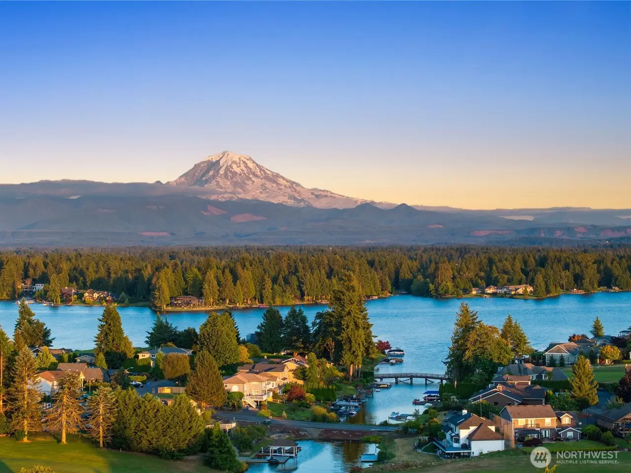 Complete serenity meets timeless resort-style living at Tapps Island. Tree-lined drive w/lush, manicured grounds & seasonally curated gardens lead to a rare first time offering: custom-built residence evokes the charm & tranquility of the South of France. Cobblestone path lead from front flower filled gardens to 70' of Lake Tapps' treasured shoreline. At water's edge: oversized dock, patio, swim area & picturesque Mt Rainier views. Designed w/an emphasis on style & elegance, maximizing effortless living. Unmatched comfort-perfect mix of sophisticated & casual spaces w/lux hand-picked architectural details. French doors open to wraparound porch w/stone pillars, gazebo, spa & private conversational areas--a rare fusion of refinement & harmony.