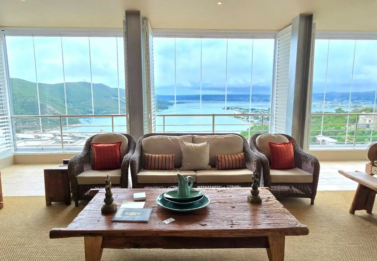 Luxurious Lagoon-Front Living: Elegant Home with Panoramic Views The property features beautifully designed bedrooms, each blending comfort with functionality to ensure a restful environment. On the ground floor, one bedroom benefits from a full en-suite bathroom, perfect for guests or family members preferring easy access. The upper level houses three more bedrooms, enhancing privacy and providing versatile living options. The master suite is particularly impressive, boasting a spacious private veranda, a large dressing room, and a luxurious en-suite bathroom. The second bedroom also features a full en-suite bathroom, while the third bedroom has access to a separate bathroom equipped with a shower. The home is designed with a flowing open-plan layout that maximizes the stunning lagoon views and creates a seamless transition between living spaces. The formal lounge, set against the backdrop of the lagoon, leads into a dining area that connects directly to a well-equipped kitchen featuring both gas and electric hobs, an eye-level oven, and a separate scullery. Adjacent to this space is a cozy TV lounge and a dedicated study, providing ample room for relaxation and work. A double garage with direct access into the house adds convenience and security. This property is not just a house but a blend of luxury, comfort, and stunning views, making it a must-see for those seeking an exceptional home in Knysna. Call today to schedule a viewing and experience the splendor first-hand! This home comes with the option of being Furnished.