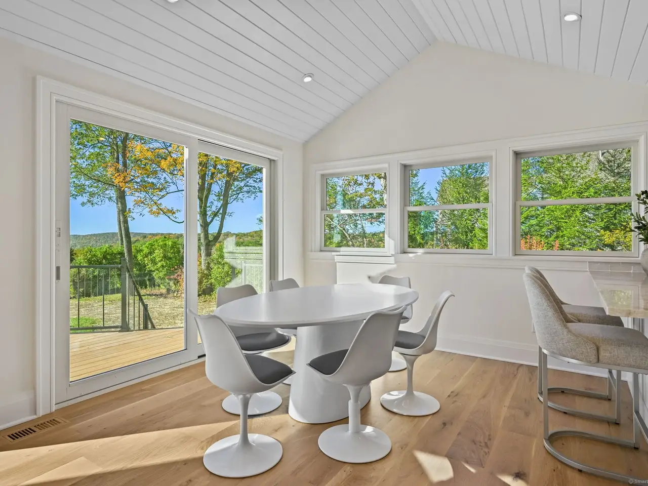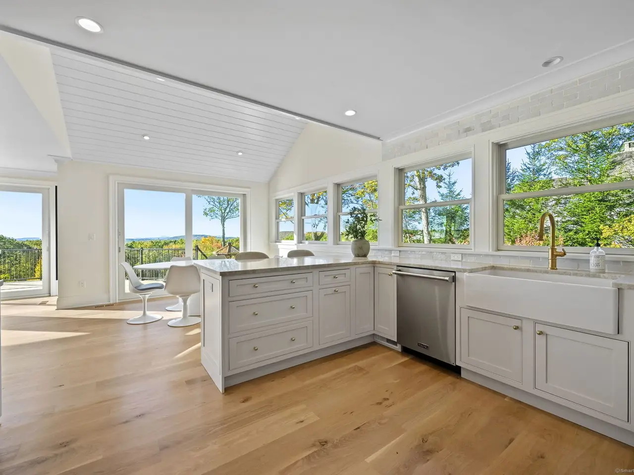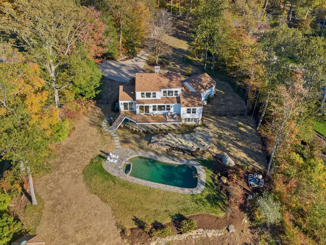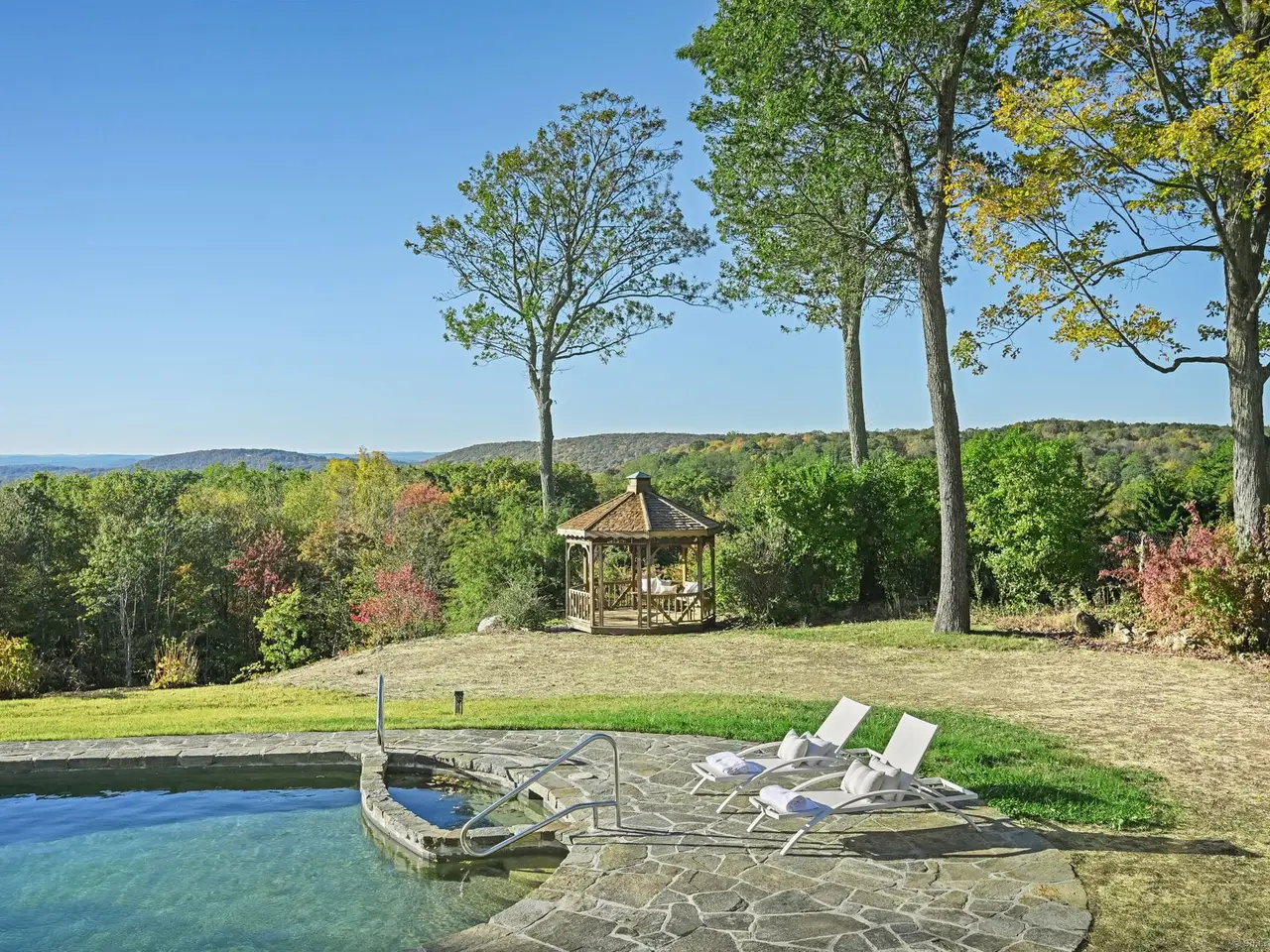 A masterclass in modern luxury, this breathtaking Ridgefield estate has been meticulously reimagined by premier builder Thomas Sturges Construction, achieving a rare balance of architectural brilliance, refined comfort, and energy efficiency, all set against awe-inspiring panoramic 50-mile views of the Hudson River Valley. Completely transformed, the residence unveils a sophisticated open-concept design where wide-plank oak floors, walls of glass and impeccable craftsmanship define every space. The chef's kitchen is a showpiece of form and function with natural stone counters, custom cabinetry and professional-grade Viking appliances seamlessly flowing into a chic dining area and luminous living room anchored by a sleek gas fireplace. The main-level primary suite is a private sanctuary, offering dual walk-in closets and a spa bath worthy of a five-star retreat. Upstairs, two additional ensuite bedrooms showcase exquisite finishes and elevated comfort. The lower level extends the living experience with a full in-law or au pair suite, complete with separate entrance, laundry and a stunning family room framed by stone-accented walls. Outdoor living is redefined with tiered decks, a granite patio, Wagner pool and spa and a romantic gazebo set amid manicured grounds. Great NYC commute. Perfectly sited minutes from Ridgefield's boutique shops, acclaimed dining and cultural attractions. An exceptional residence embodying the pinnacle of modern elegance and timeless craftsmanship!