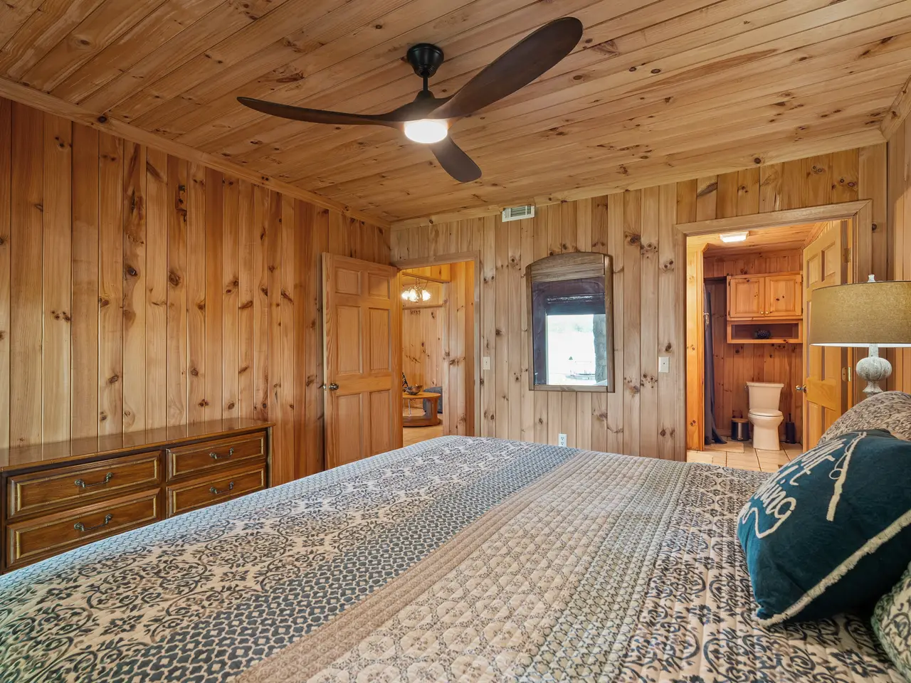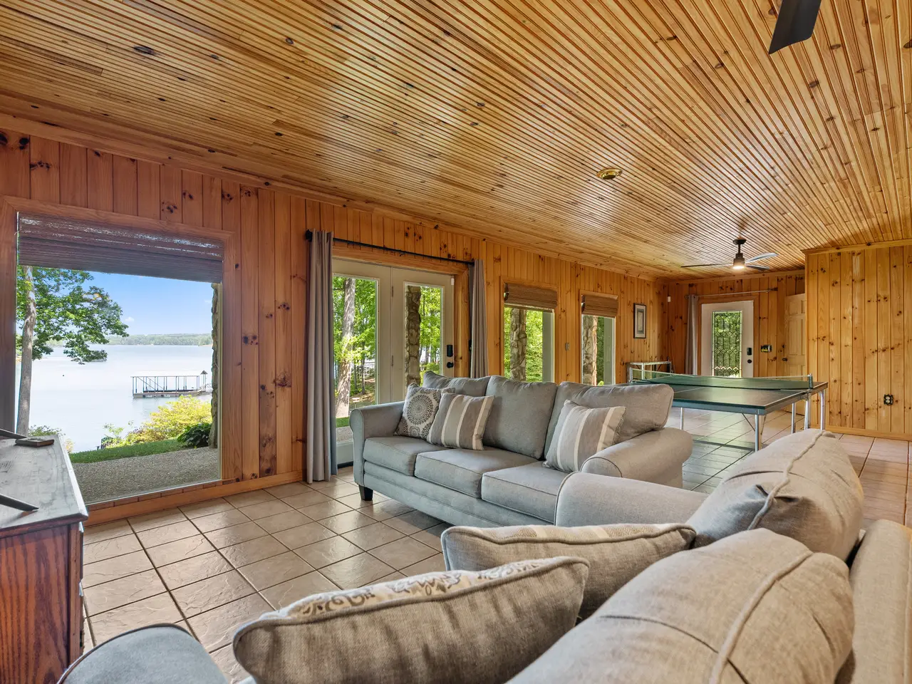 Quintessential mountain lake living on the shores of Lake Keowee. Introducing 295 Sugarhill Road, perfectly positioned with large open water views in a protected deep water bay. Enjoy convenience by both water and land with the Lighthouse Cabana just across the main channel by boat and located within ten minutes of restaurants, shopping, grocers and twenty minutes to Clemson University by car. When looking for the ideal retreat, look no further than an idyllic log cabin. Why have your home away from home feel ordinary. This property has zero homeowners association fees and offers short term rental capability with a history of rental income. The main level features a two-story living room with soaring pine ceilings and sliding glass doors with lake views that extend miles north-facing up the main channel. The recently modernized main kitchen features JennAir stainless appliances accented with new counters and backsplash. There are two bedrooms, two full baths and a laundry room on the main floor. New Andersen windows and glass sliders extend from both main level bedrooms and the main living area onto a covered deck that stretches the entire lakeside of the home. Upstairs, find a loft with two guest rooms that both feature lake views and a third full bath. Tile floors cover the entire terrace level for ease of maintenance when coming in off the lake. There is a second kitchen with a fifth bedroom ensuite and a second full bath off the side entry door. The terrace level offers independent living from the main house should you choose to rent separately or if you're in need of a private guest quarters, in-law apartment or caretaker lodging. The terrace level features a second covered deck that extends the entire lakeside with a gentle sloping concrete cart path extending to the lakeside patio and covered slip dock. Once you experience the large open lake and mountain views, the other views can't compare. The protected deep water bay grants safe swimming and recreation that is great for paddleboarding, kayaking and floating. The roof and HVAC were installed new in 2022 and offer a transferable warranty. Don't let this unique offering pass you by... start enjoying the lake life today!